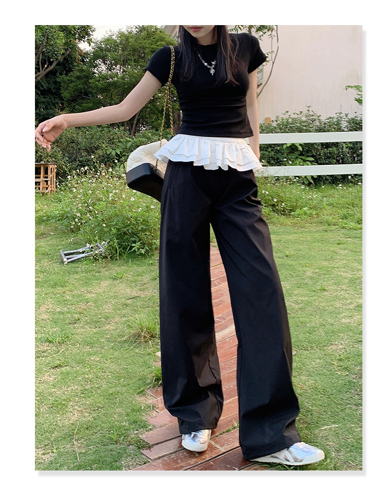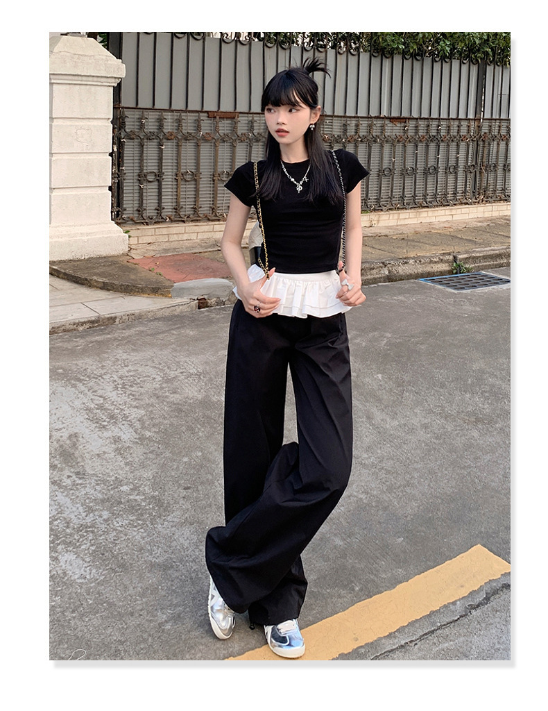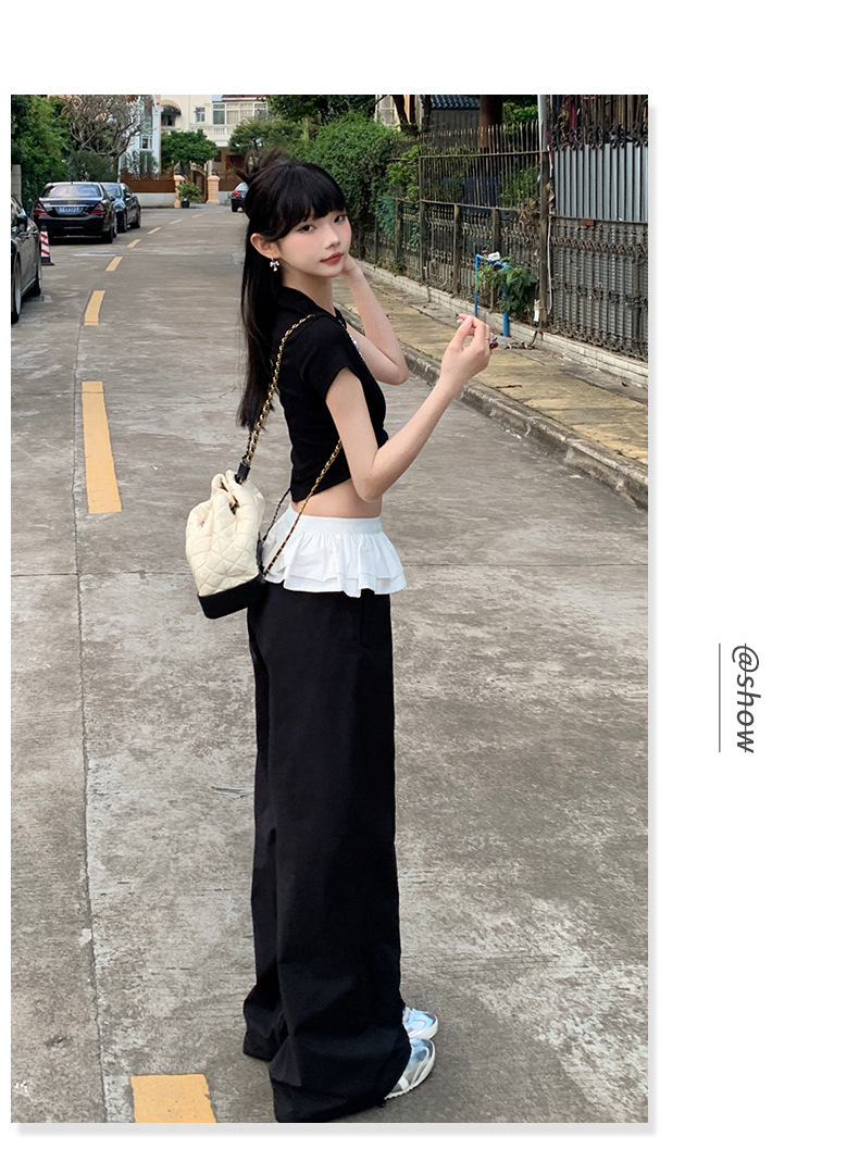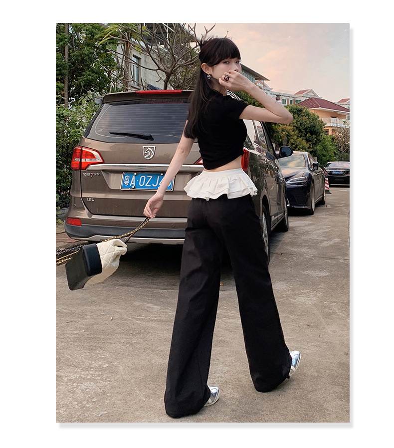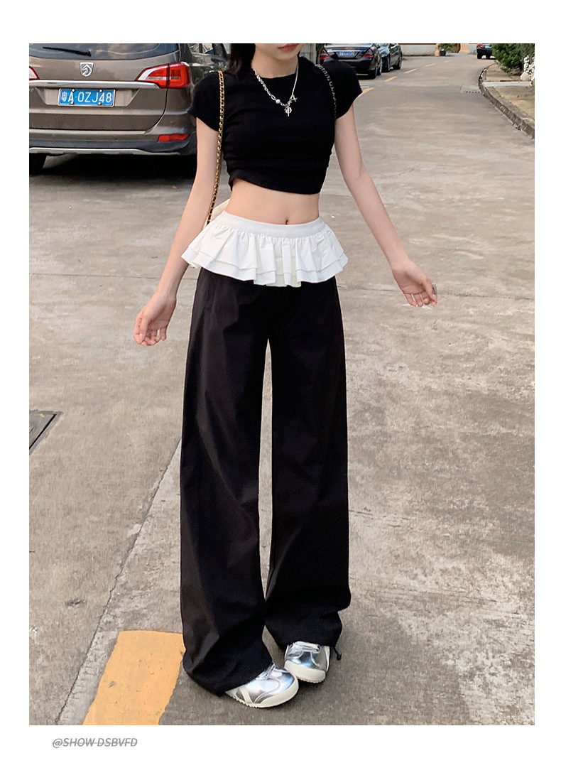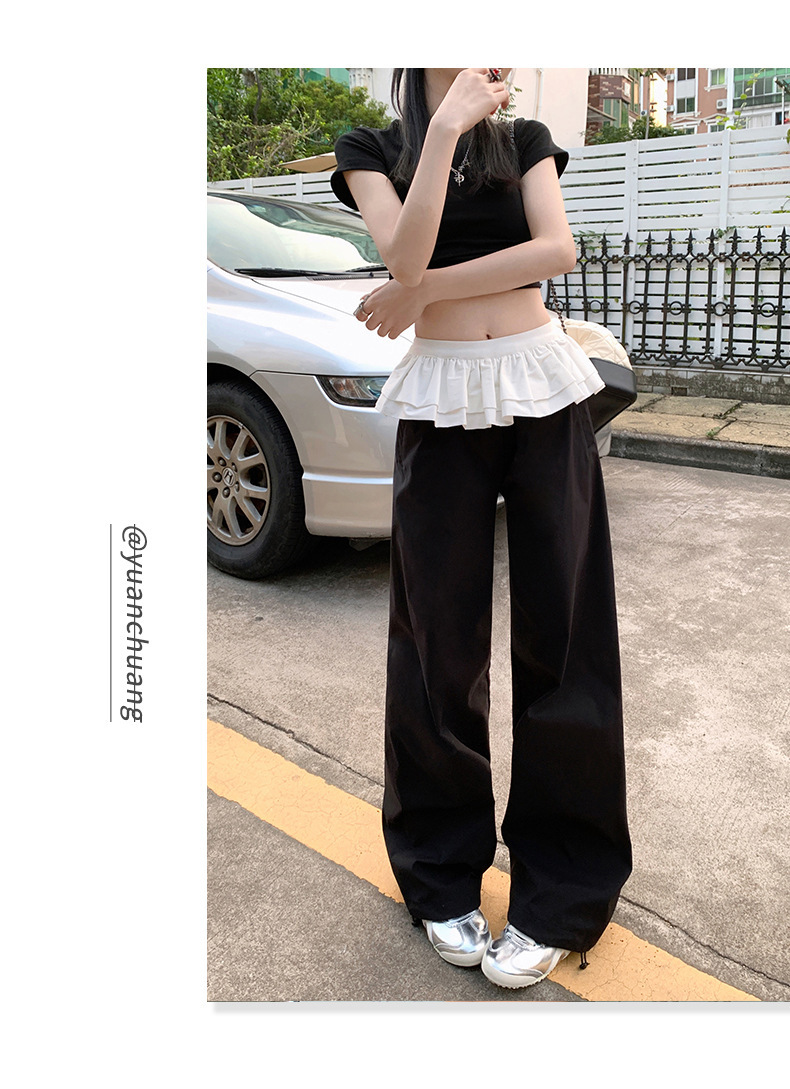 더블 레이어 작은 짧은 허리 스커트 새로운 스티칭 방풍 느슨한 디자인 센스 아트 커튼 이동식 올 매치 핫 걸 펑펑 스커트
