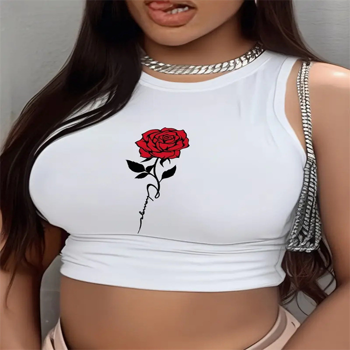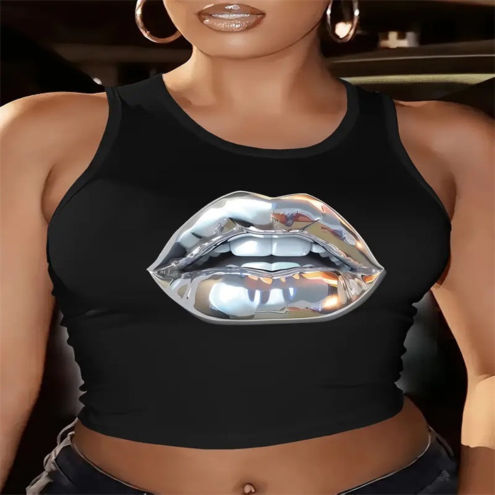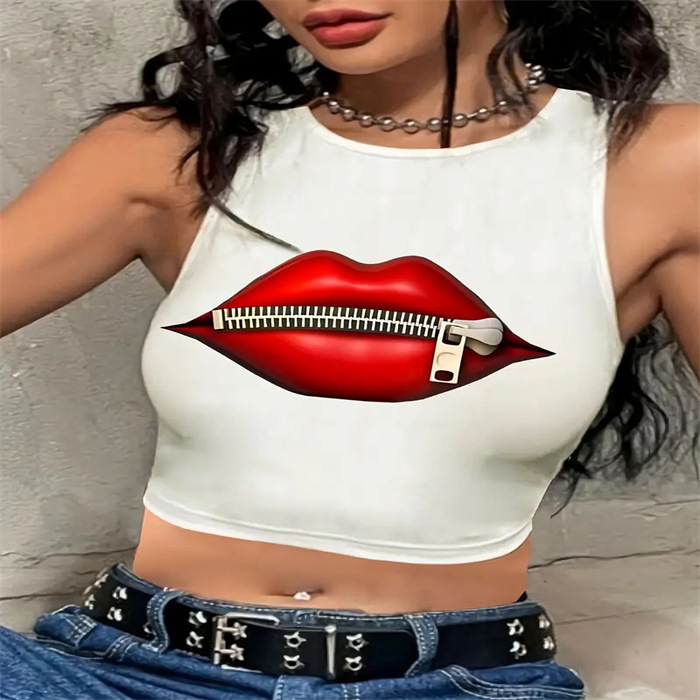 국경 간 새로운 유럽과 미국의 스파이스 걸스 배벨 조끼 미국 섹시한 둥근 목 민소매 편지 인쇄 조끼 탑