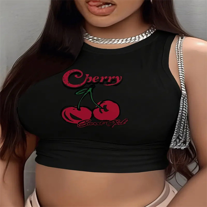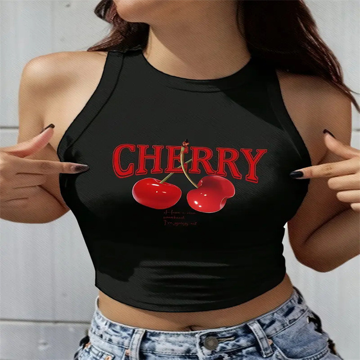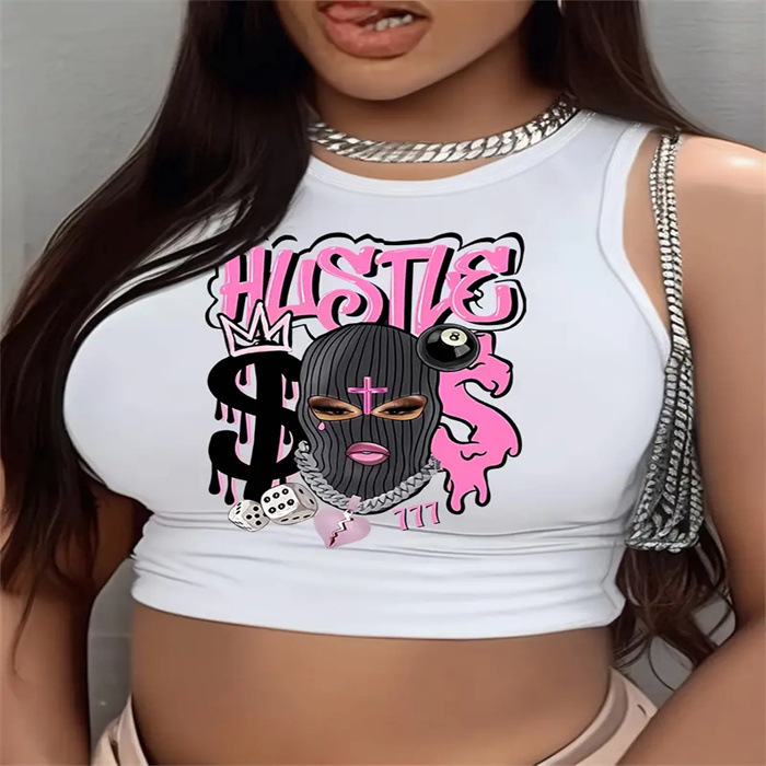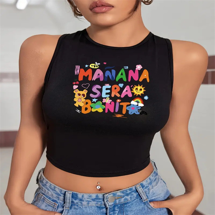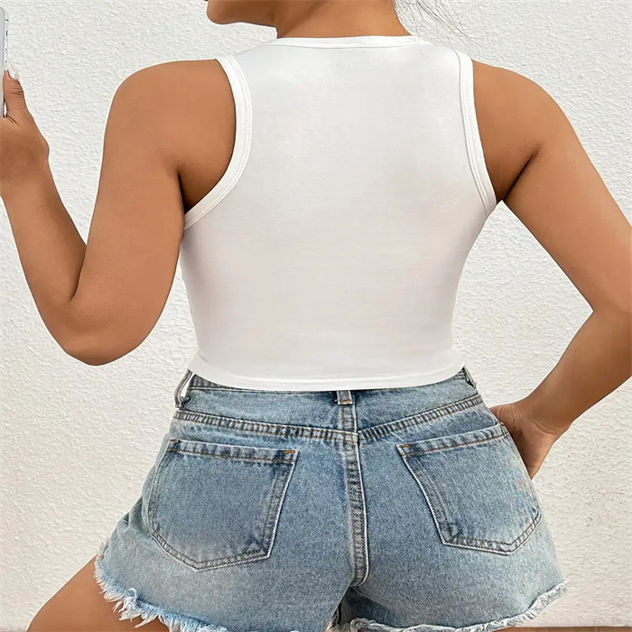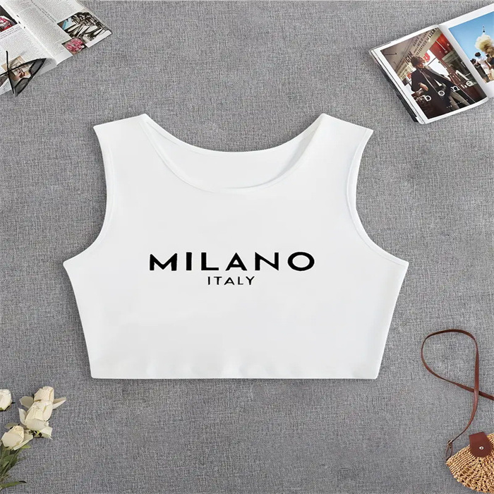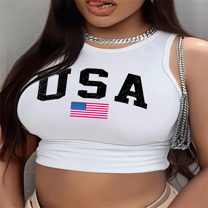 국경 간 새로운 유럽과 미국의 스파이스 걸스 배벨 조끼 미국 섹시한 둥근 목 민소매 편지 인쇄 조끼 탑스토어 가기