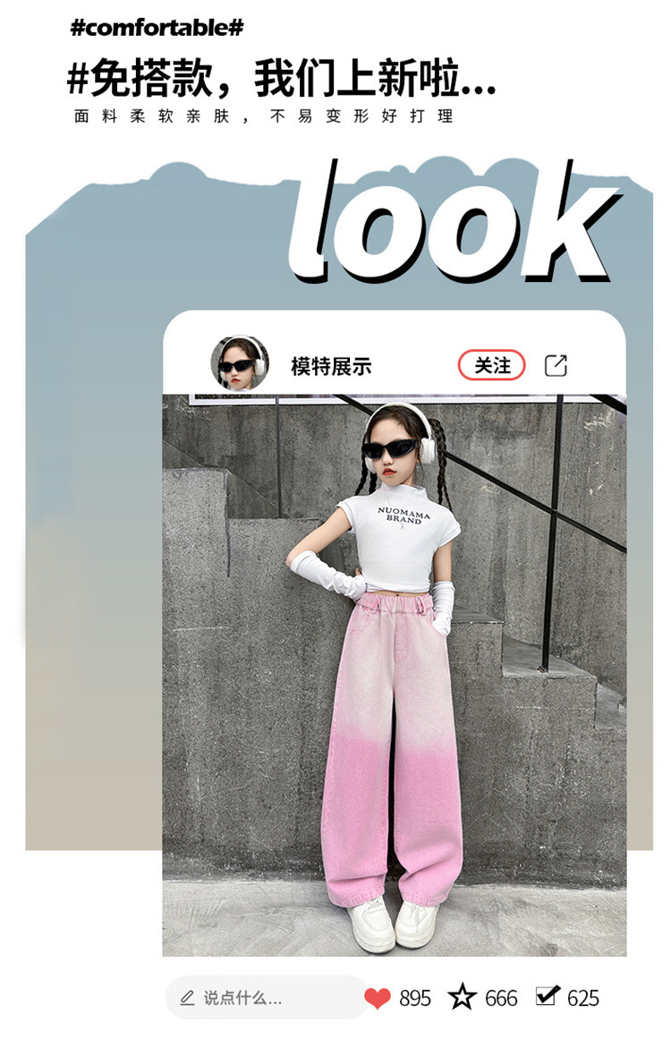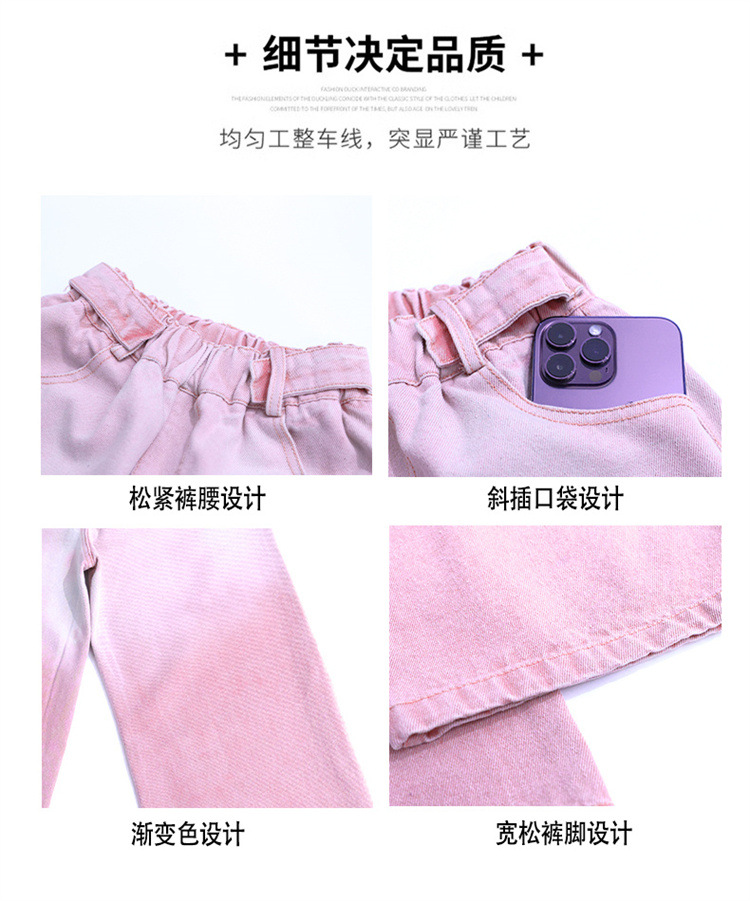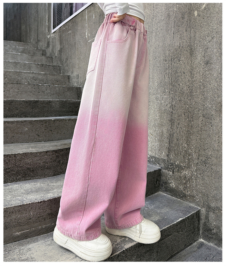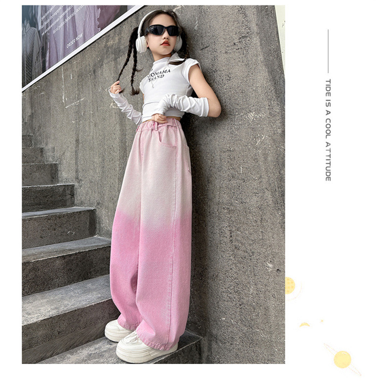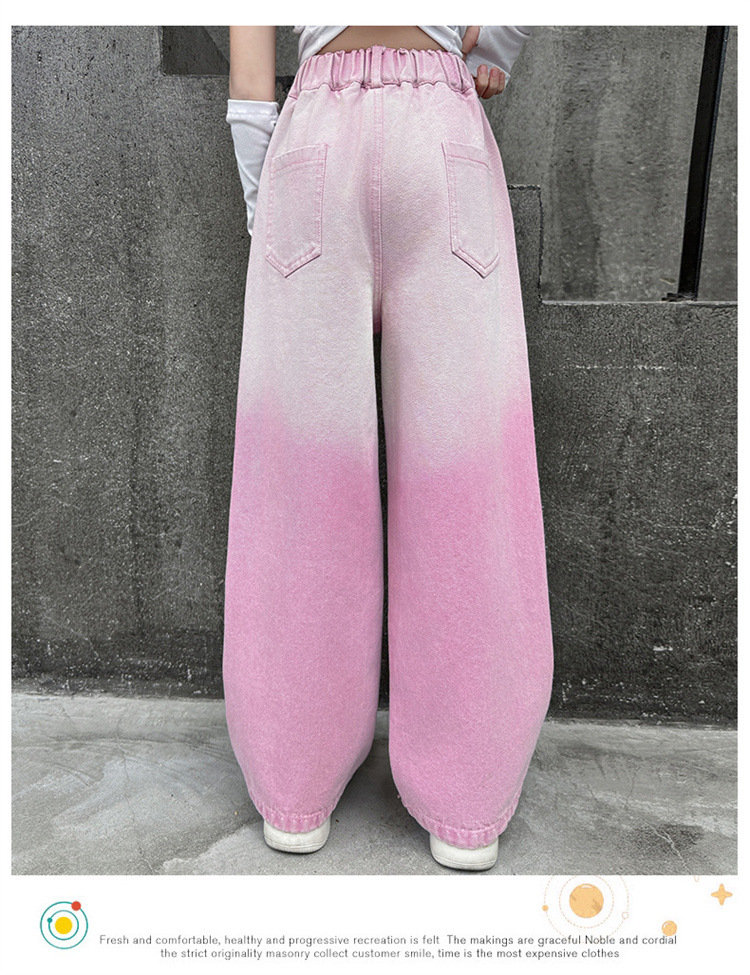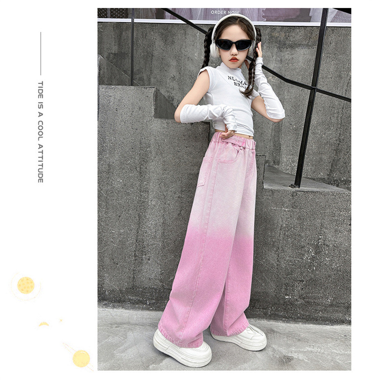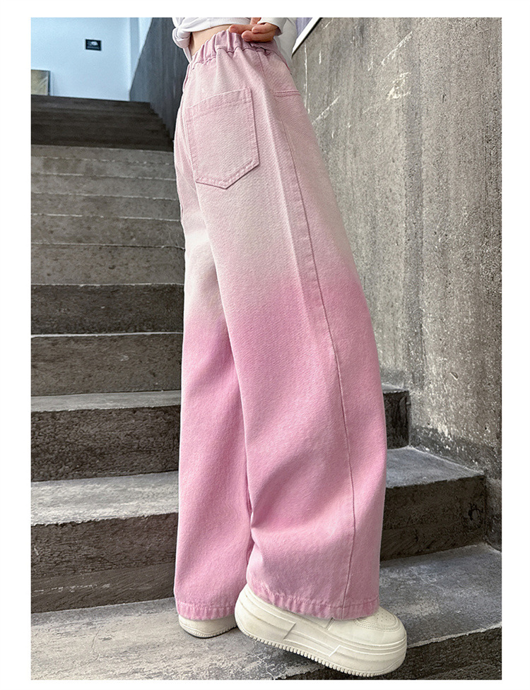 소녀 그라디언트 파우더 청바지 2025 봄 새로운 도착 한국식 느슨한 와이드 레그 바지 어린이 올매치 스트레이트 바지스토어 가기