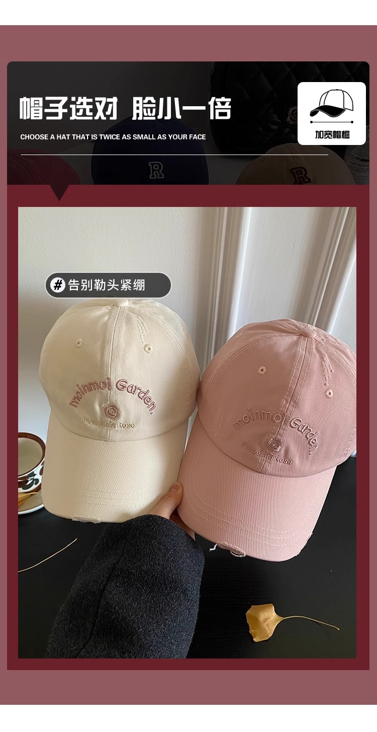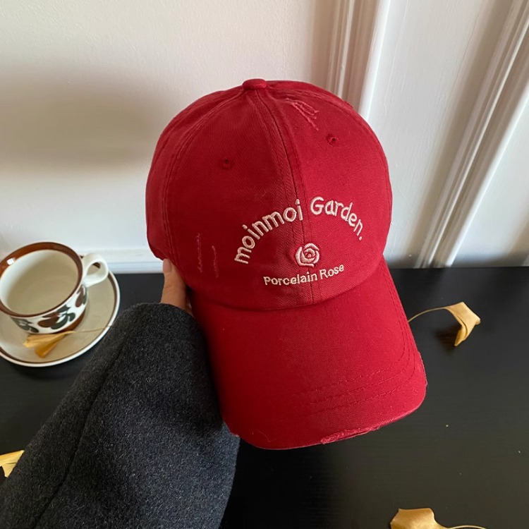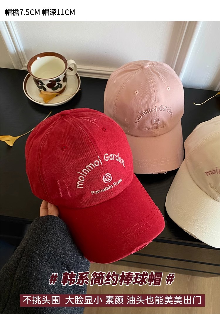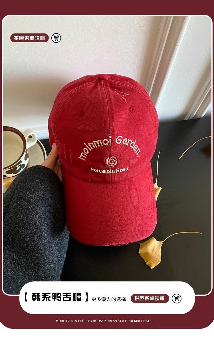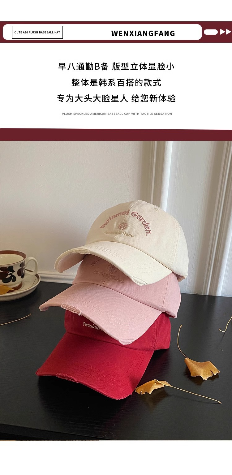 자오 루시 동일 스타일 베리 레드 야구 모자 여자 아메리칸 스타일 올 매치 모자 와이드 브림 큰 얼굴 작은 모자 표시