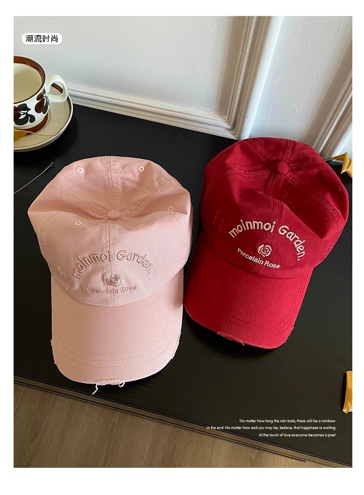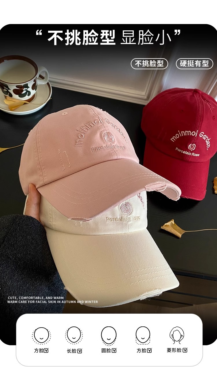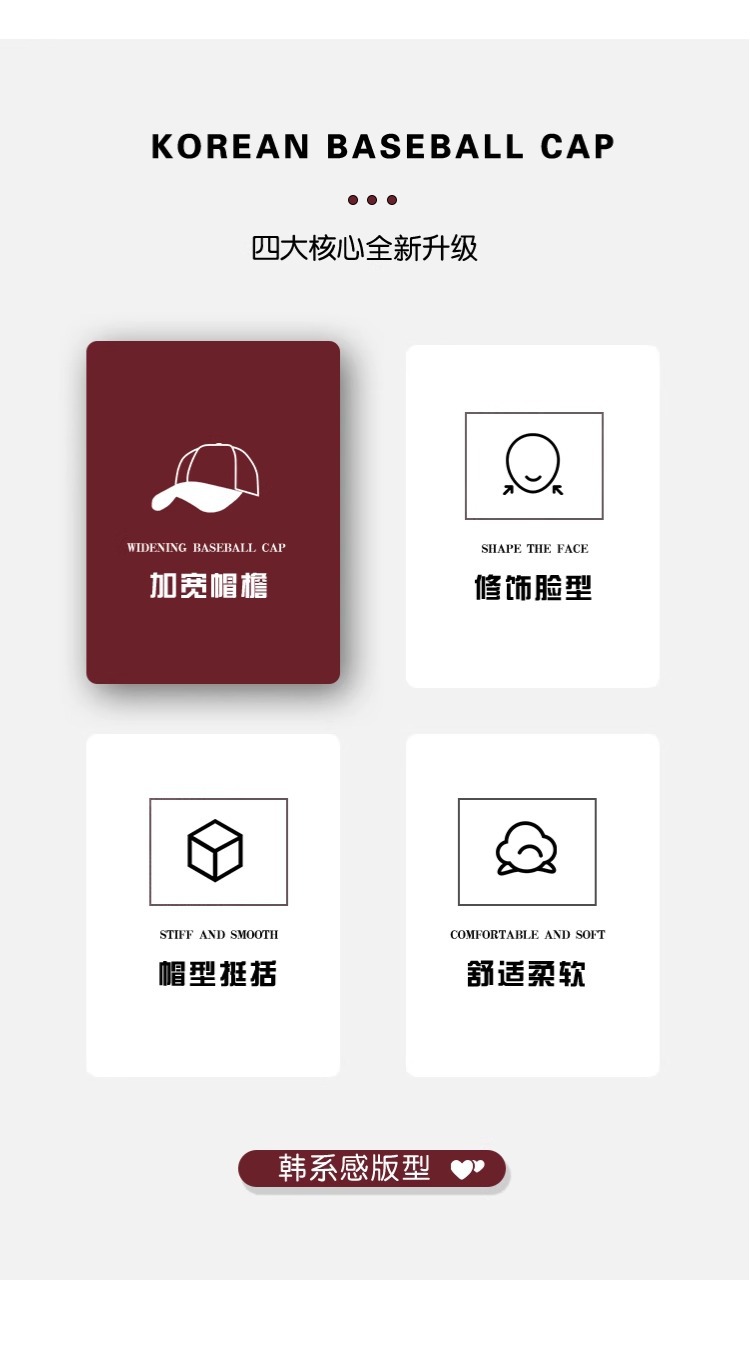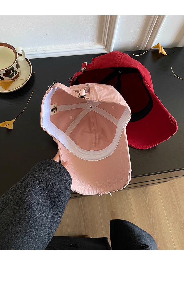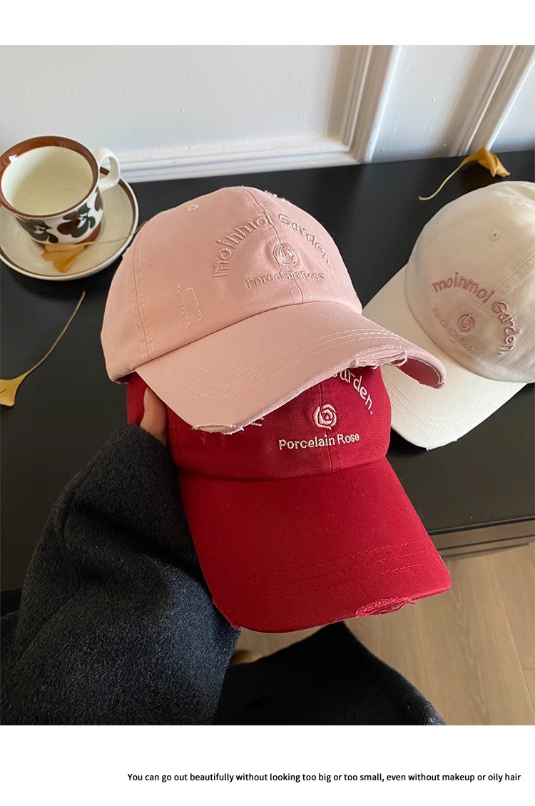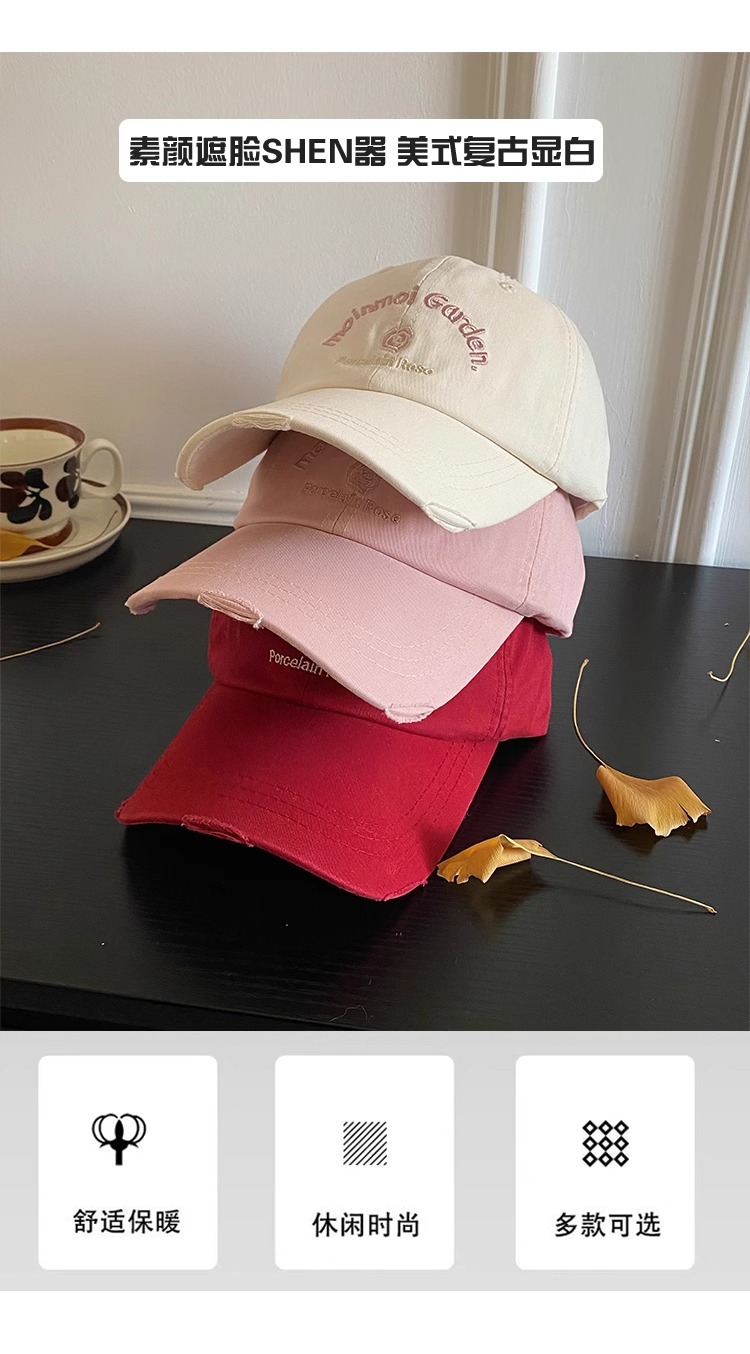자오 루시 동일 스타일 베리 레드 야구 모자 여자 아메리칸 스타일 올 매치 모자 와이드 브림 큰 얼굴 작은 모자 표시