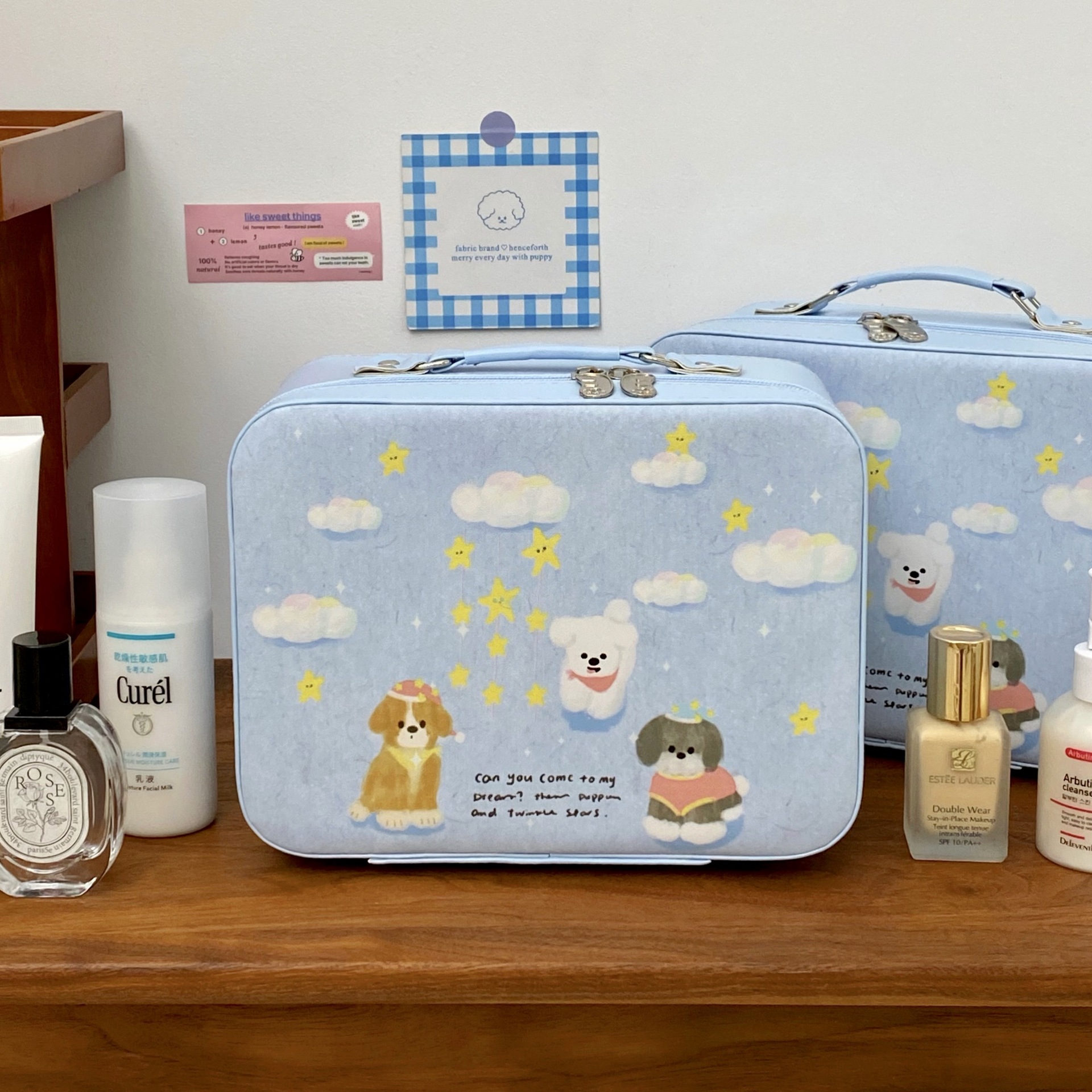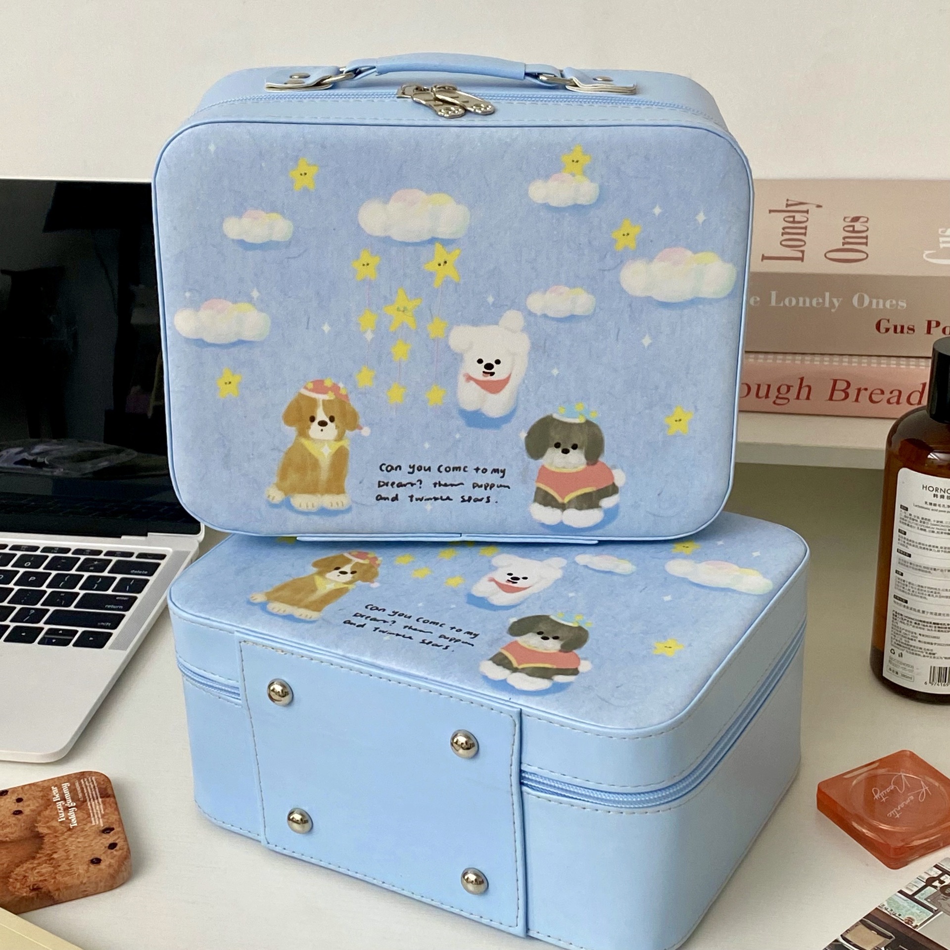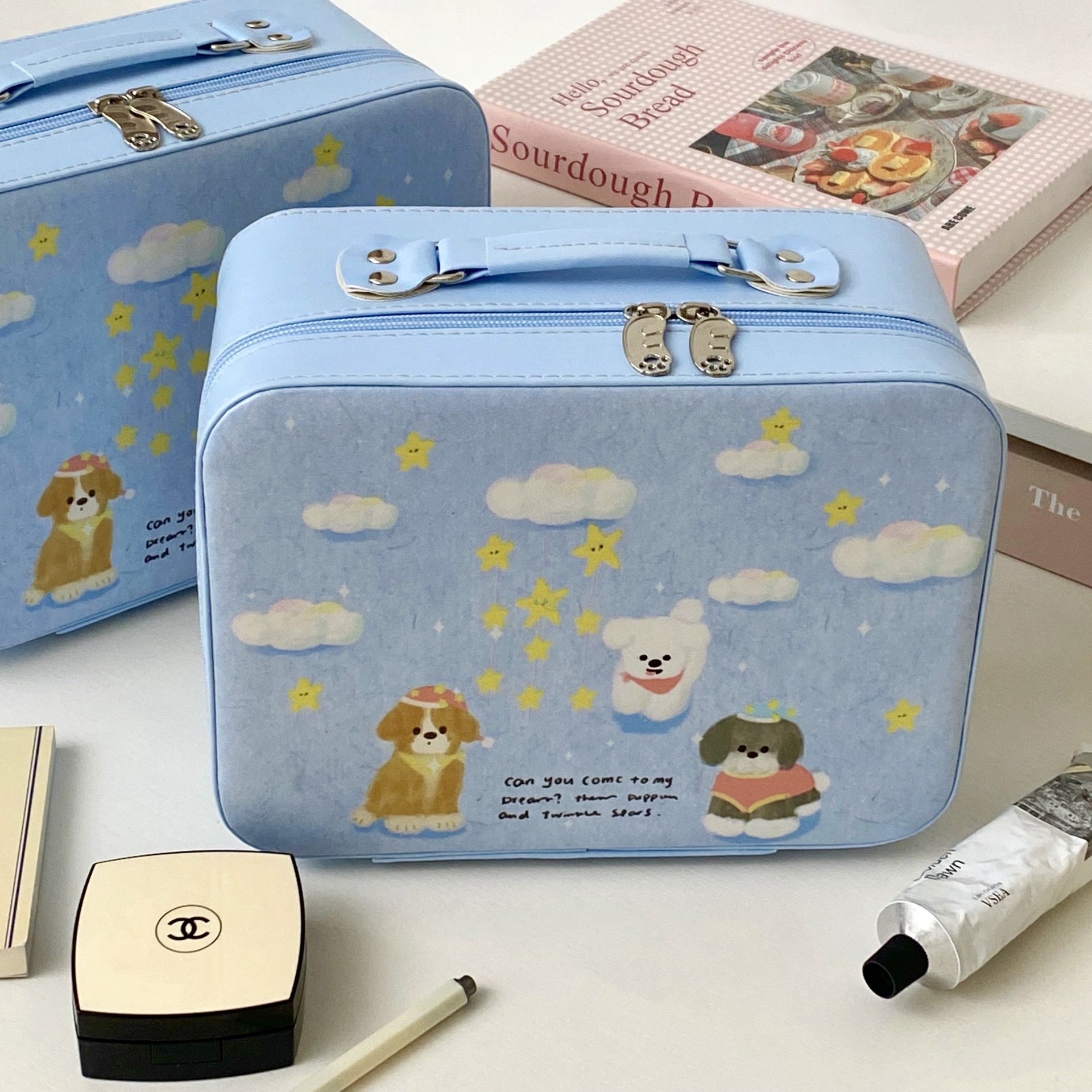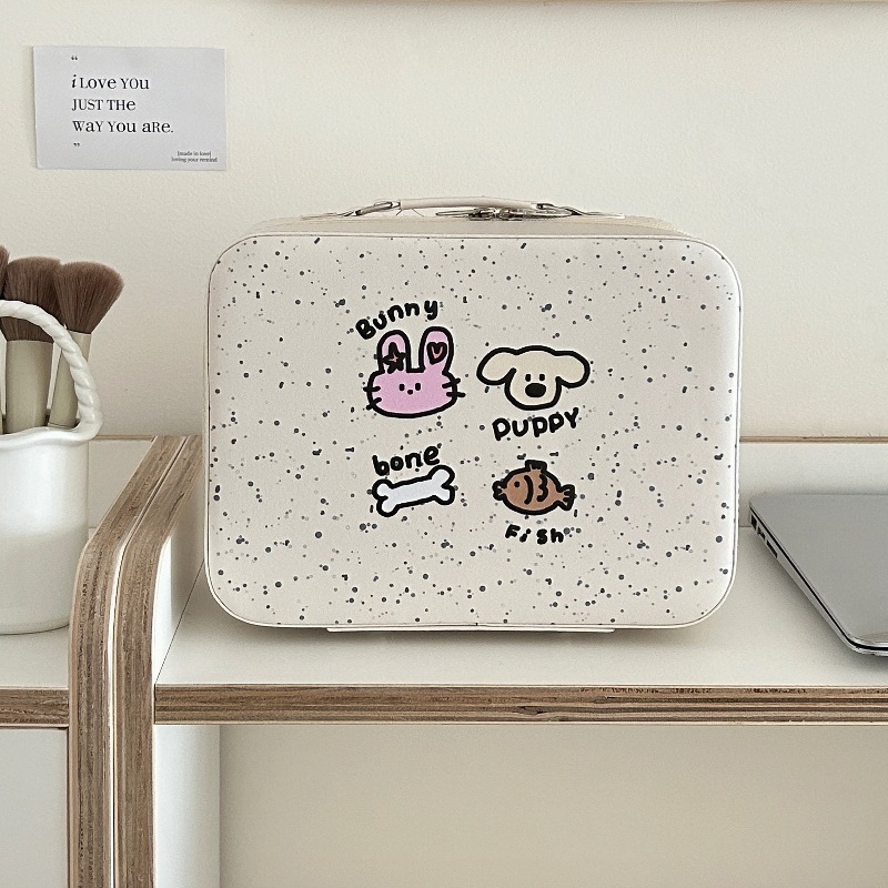 2025 새로운 스타일의 화장품 케이스, 만화 강아지 화장품 가방, 대용량, 고급스러운 스킨케어 제품 보관 휴대용 화장품 케이스스토어 가기