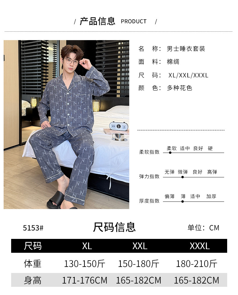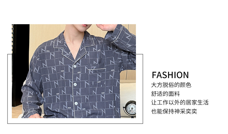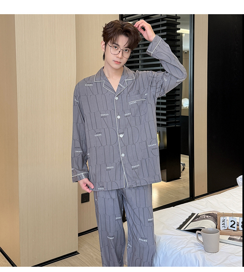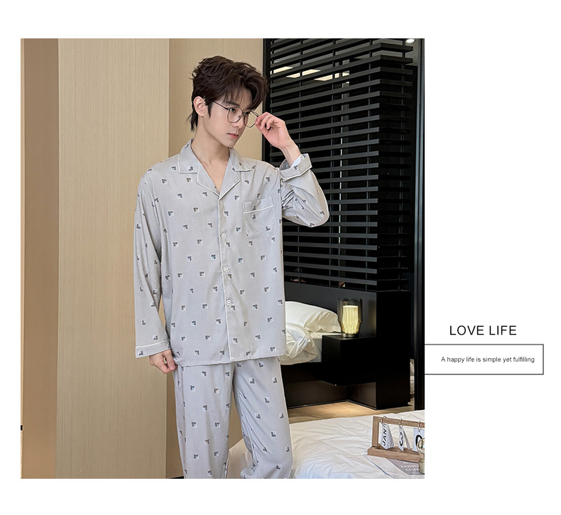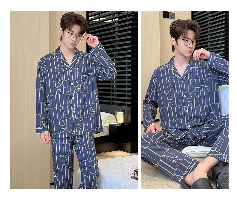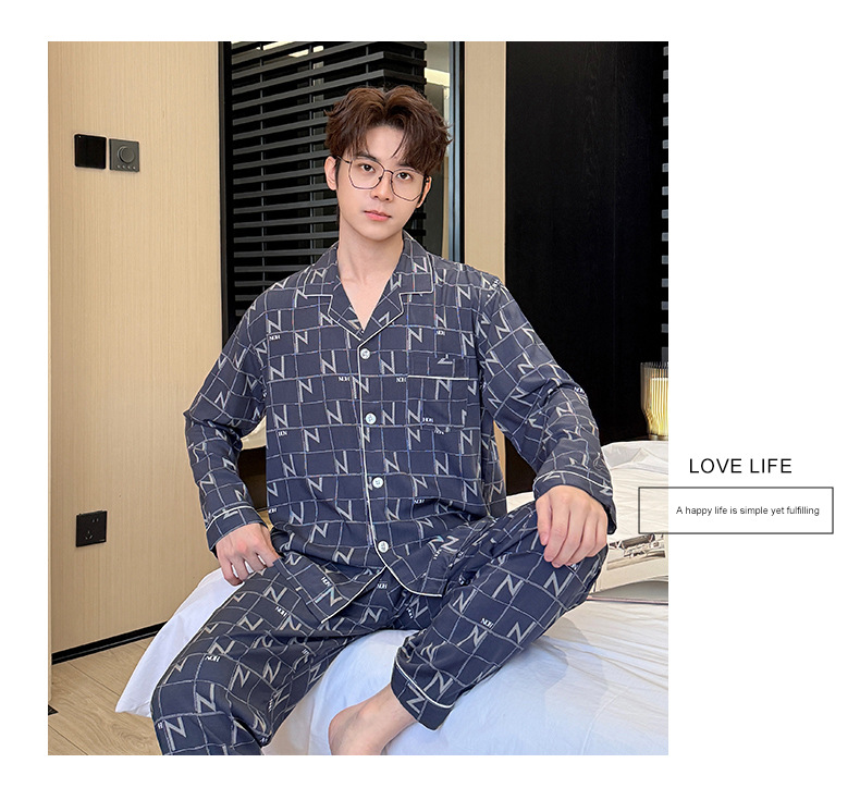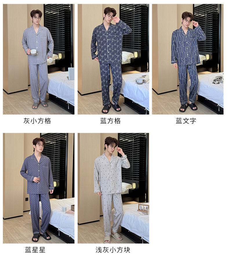 새로운 면 실크 잠옷 남자의 봄과 가을 긴팔 간단한 하이 엔드 얇은 남자의 여름 옷깃 홈 의류 세트스토어 가기