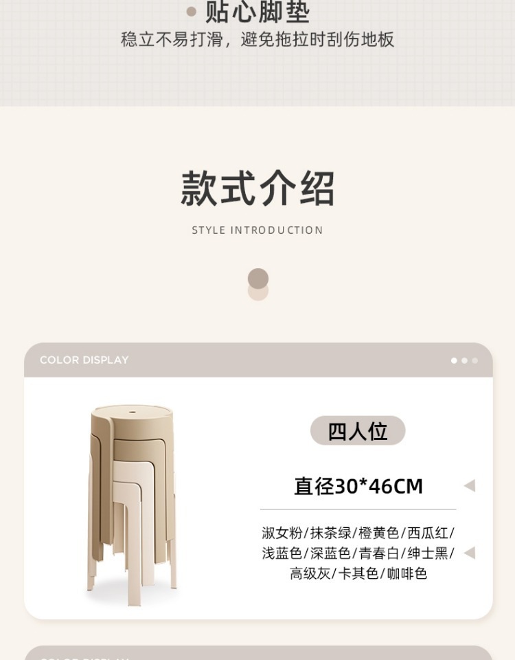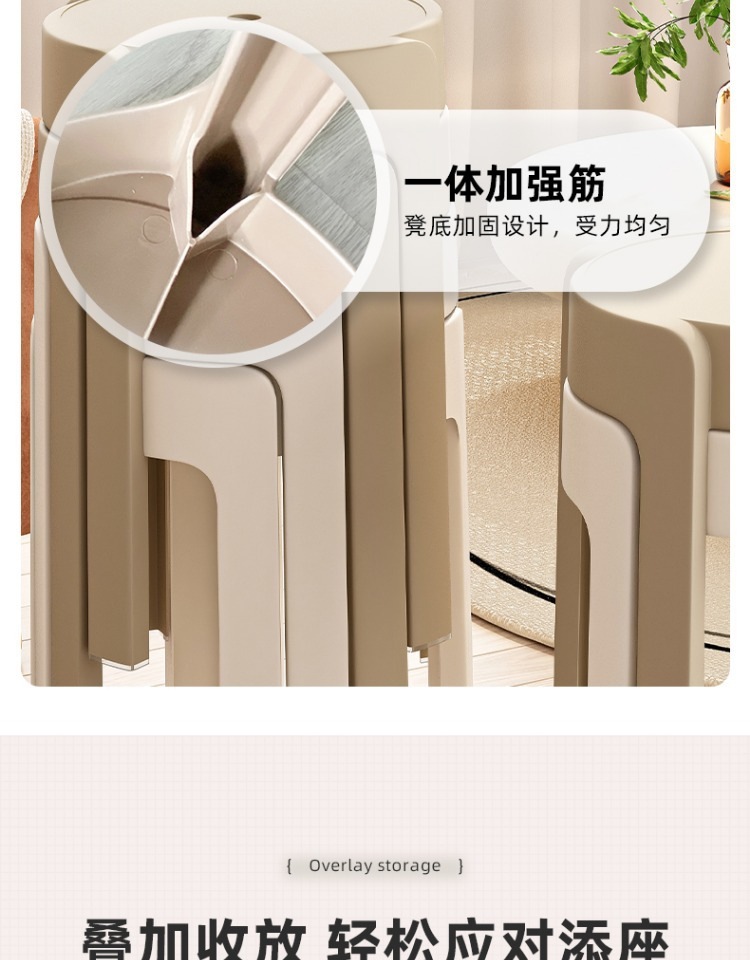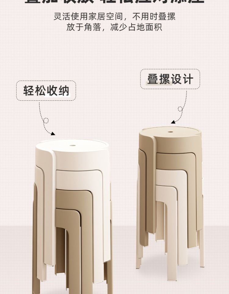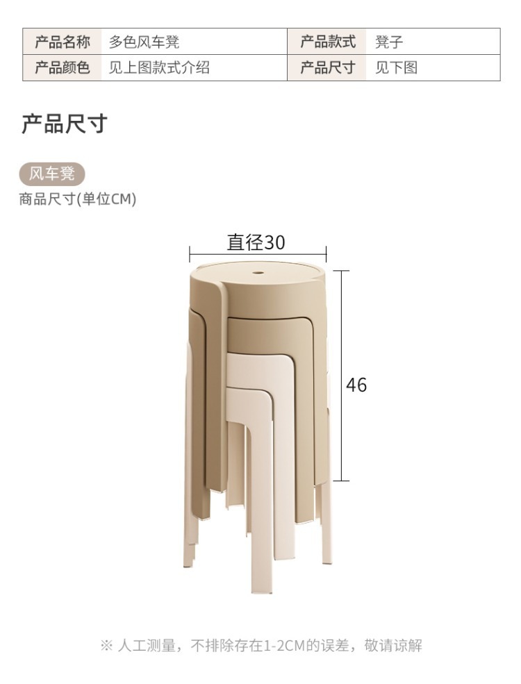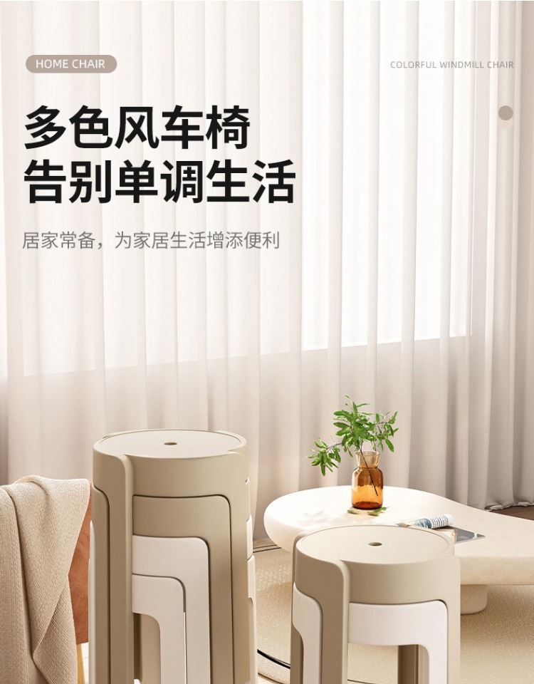 北欧塑料圆凳加厚凳子可叠放板凳客厅家用椅子备用风车凳高凳餐椅