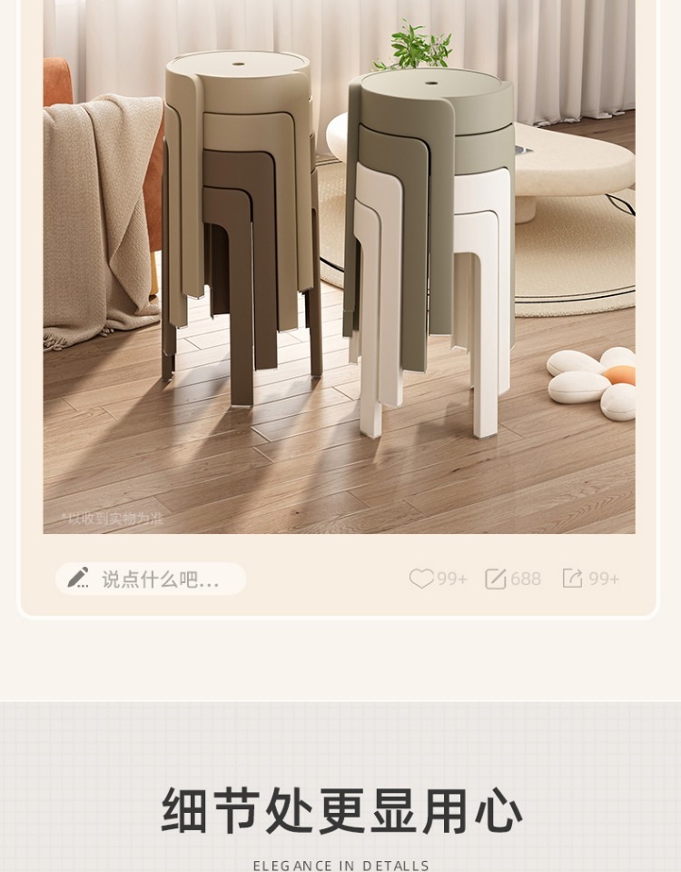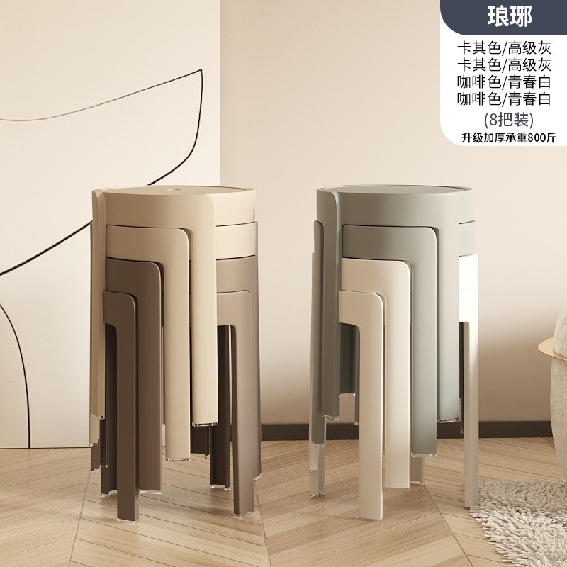 북유럽 플라스틱 둥근 의자 두꺼운 의자 쌓을 수 있는 거실 가구 의자 예비 풍차 의자 높은 의자 식당스토어 가기