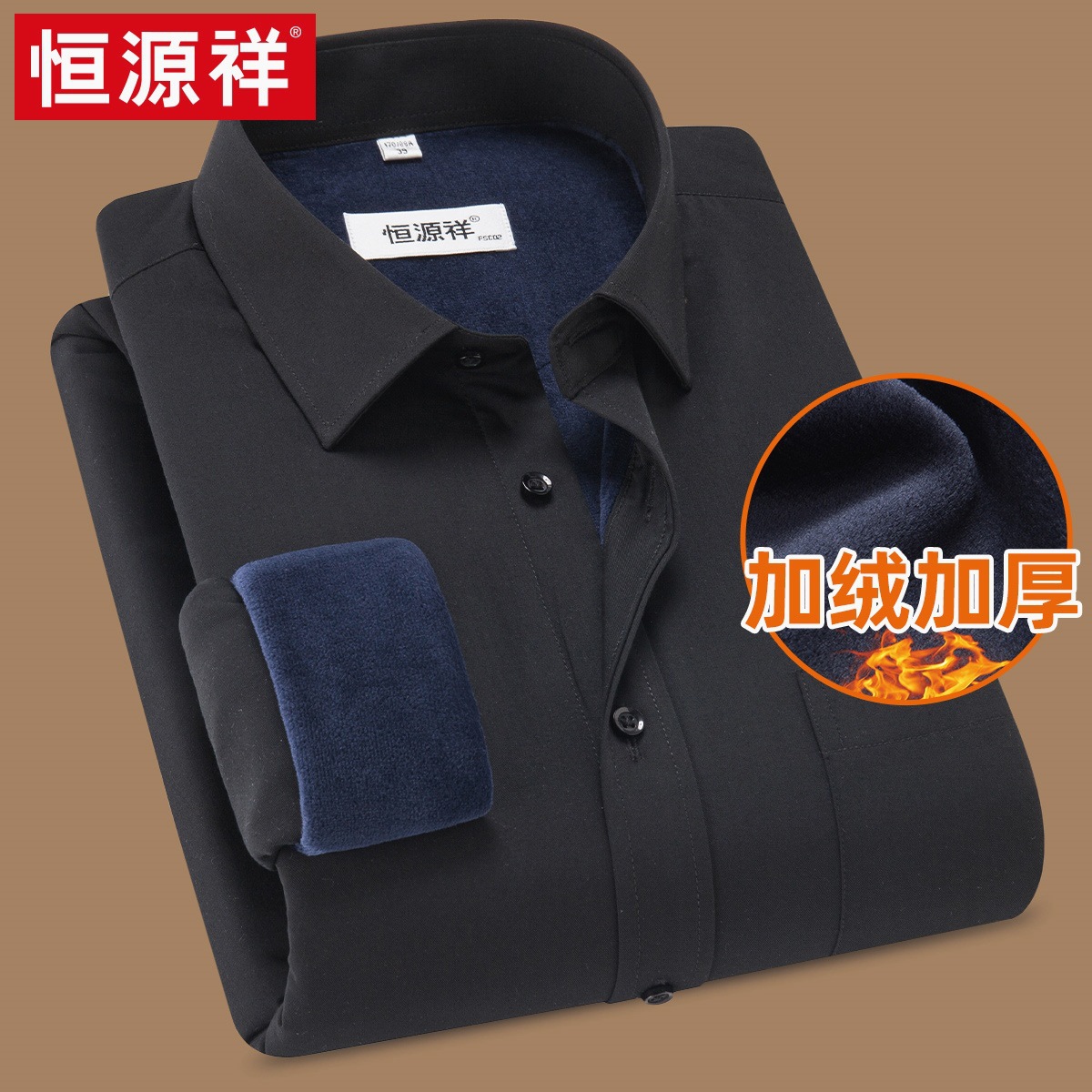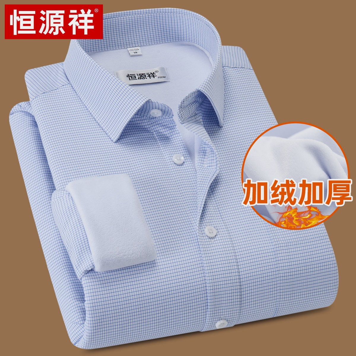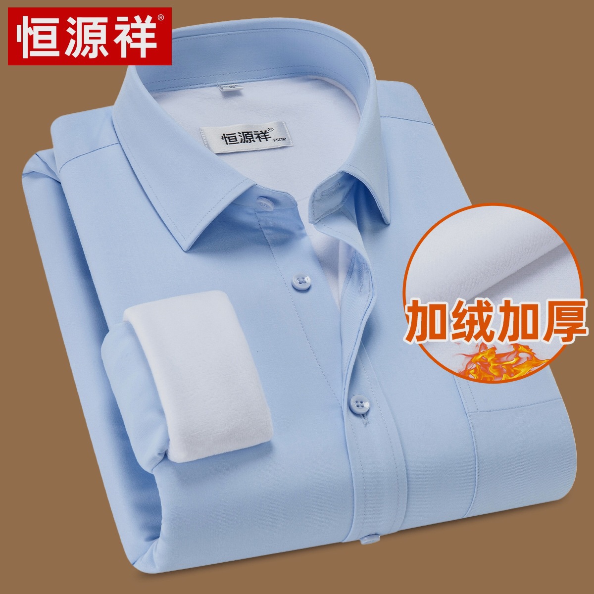 Hengyuanxiang 퓨어 화이트 기모 셔츠 남성 두꺼운 중년 남성 따뜻한 셔츠 비즈니스 원피스 셔츠 트렌디 한 겨울스토어 가기