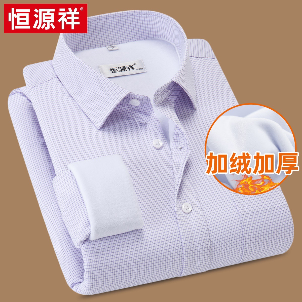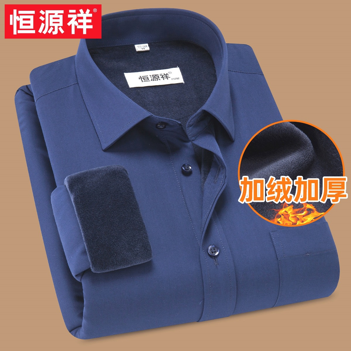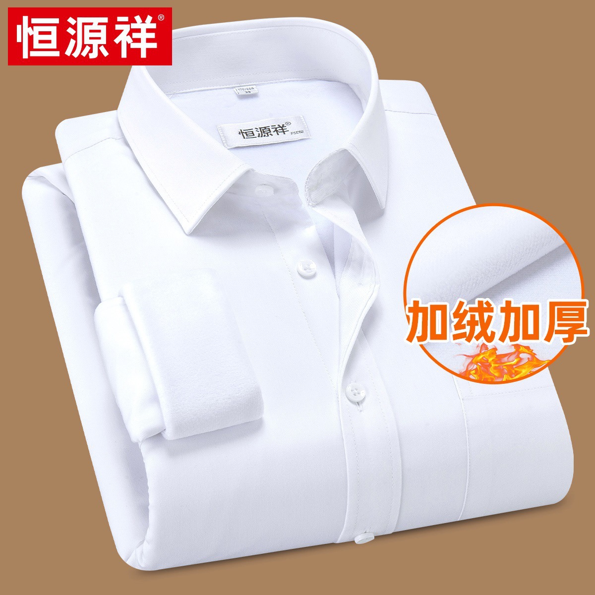 Hengyuanxiang 퓨어 화이트 기모 셔츠 남성 두꺼운 중년 남성 따뜻한 셔츠 비즈니스 원피스 셔츠 트렌디 한 겨울