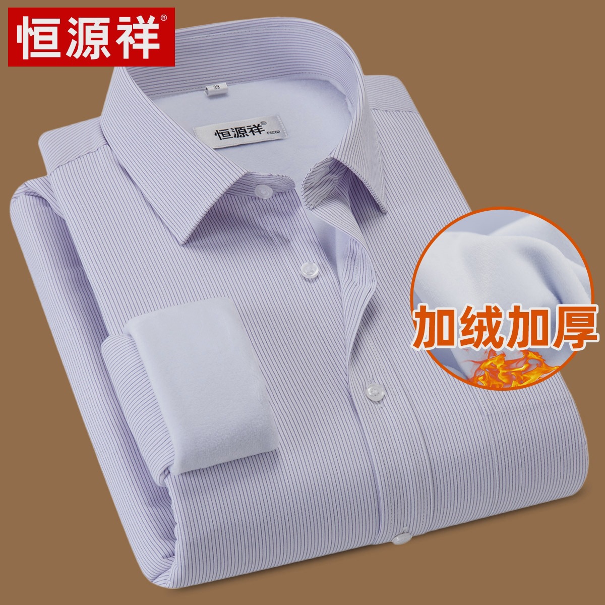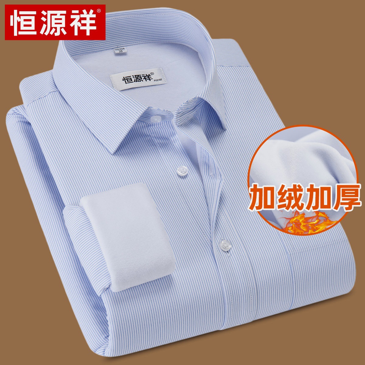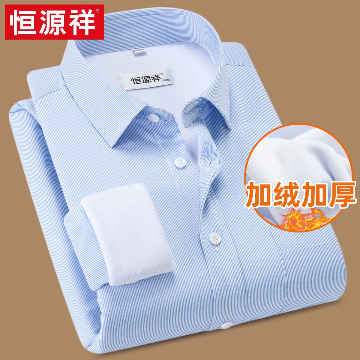 Hengyuanxiang 퓨어 화이트 기모 셔츠 남성 두꺼운 중년 남성 따뜻한 셔츠 비즈니스 원피스 셔츠 트렌디 한 겨울