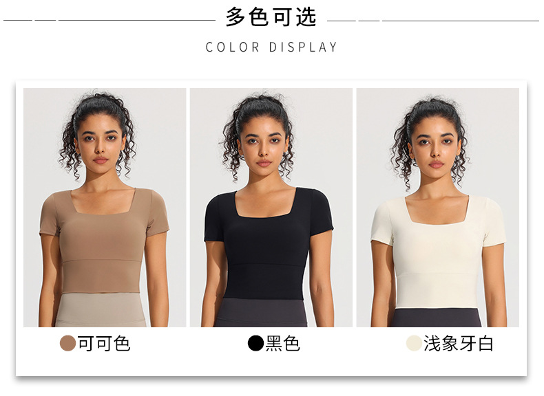 가슴 매트 여성용 슬림핏 슬리밍 스포츠 탑 하이 엔드 반팔 티셔츠 필라테스 스퀘어 칼라 피트니스 옷을 입은 요가 옷스토어 가기