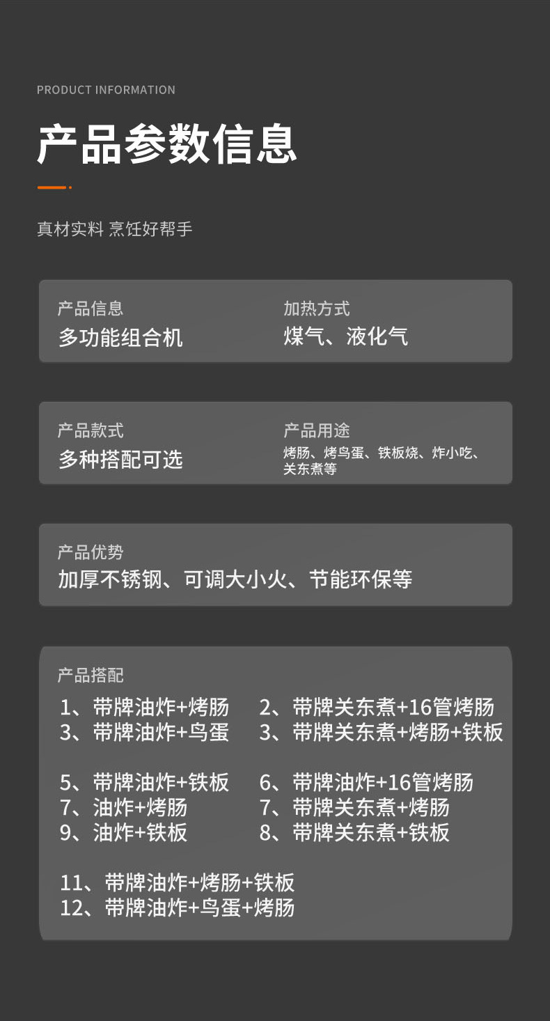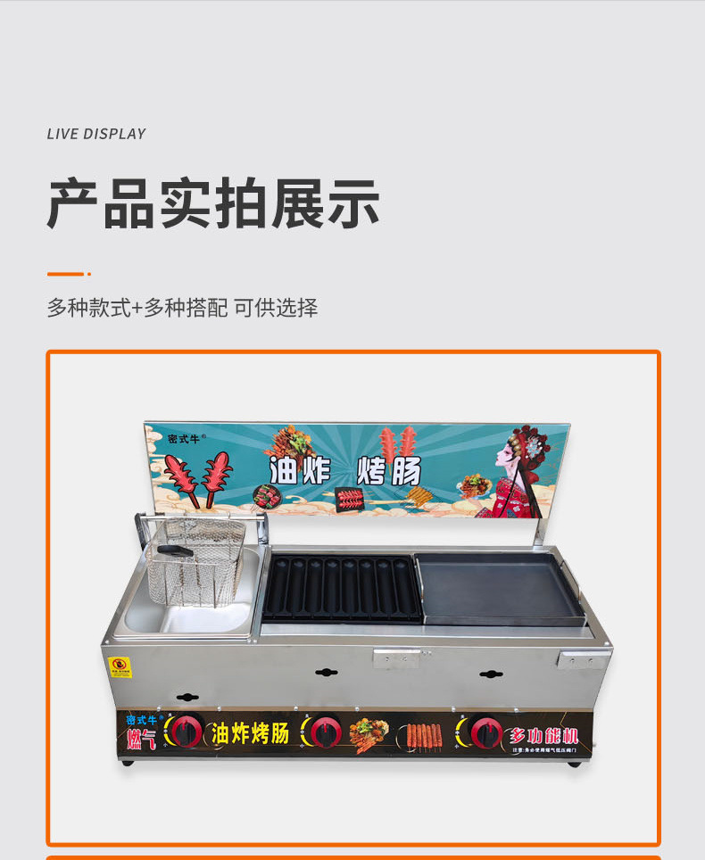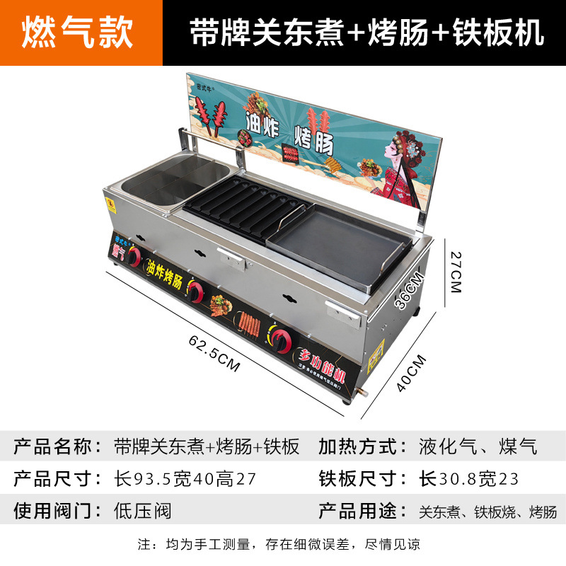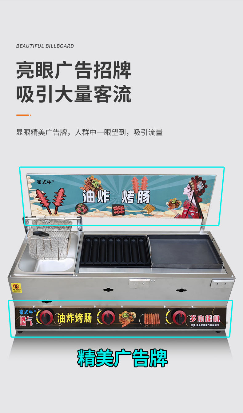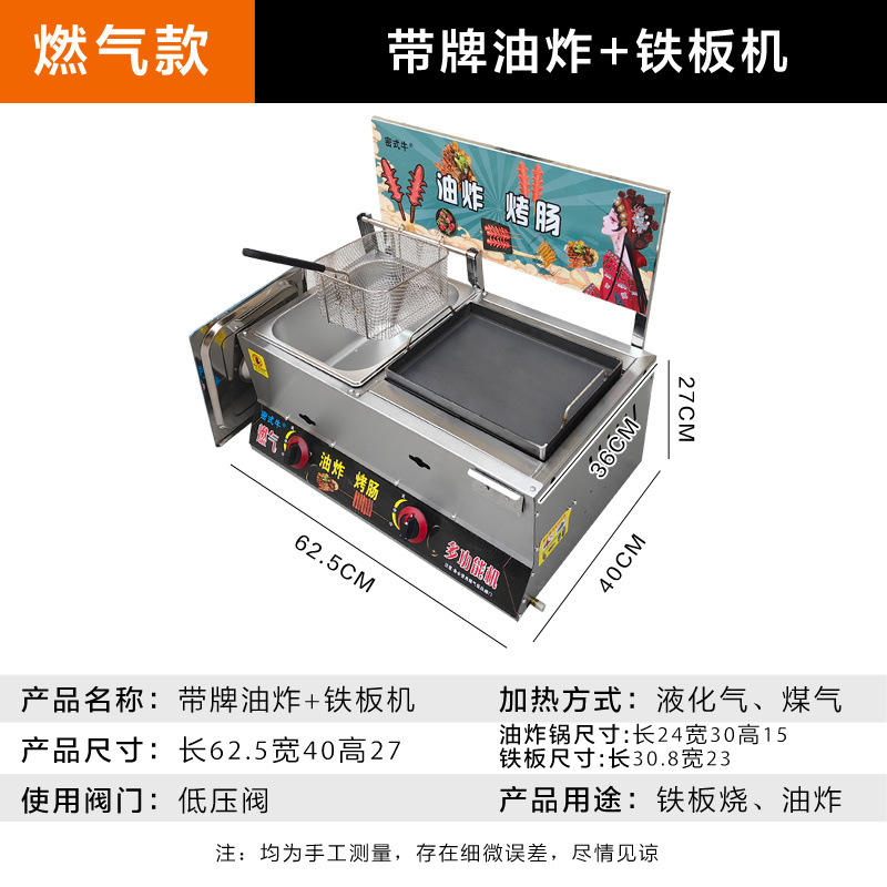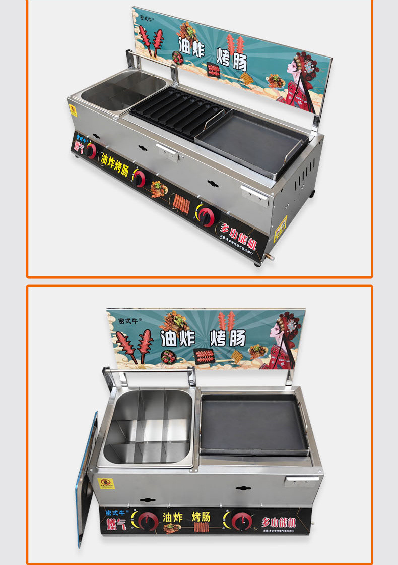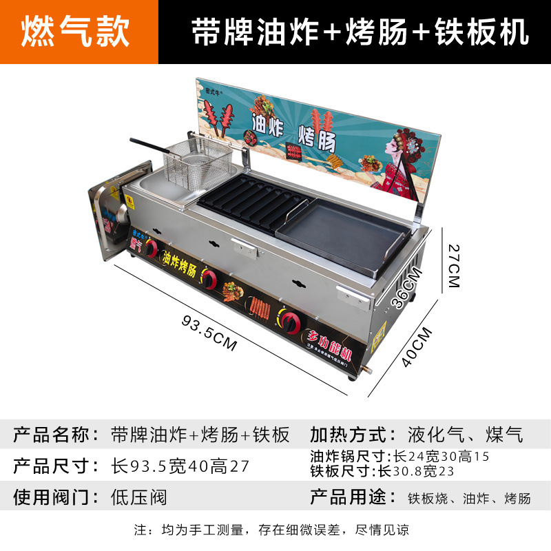 상업적인 새로운 야시장 매점 가스 튀김 소시지 올인원 기계 튀김 철판 조합 기계 멀티 세트 조합 기계스토어 가기