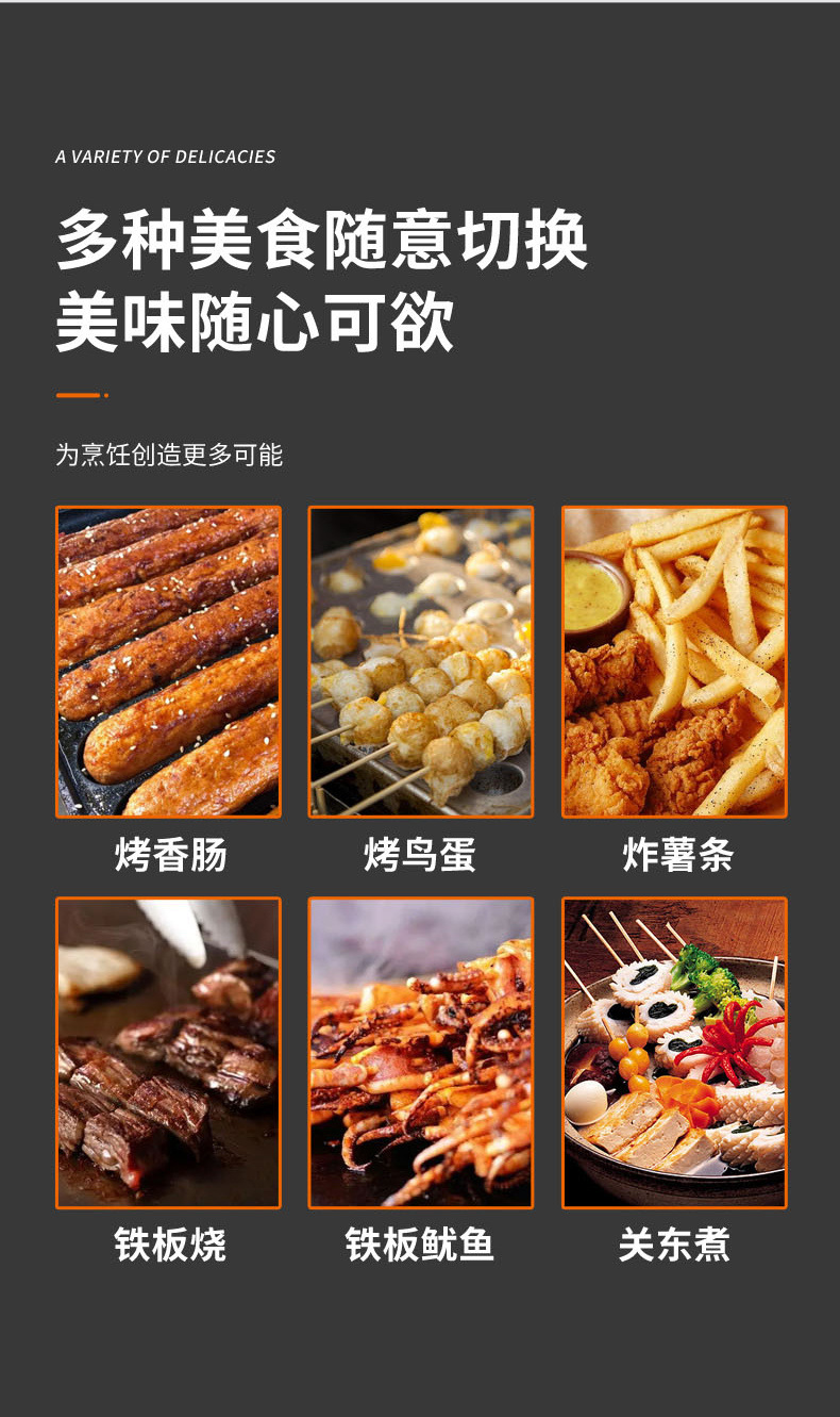 상업적인 새로운 야시장 매점 가스 튀김 소시지 올인원 기계 튀김 철판 조합 기계 멀티 세트 조합 기계