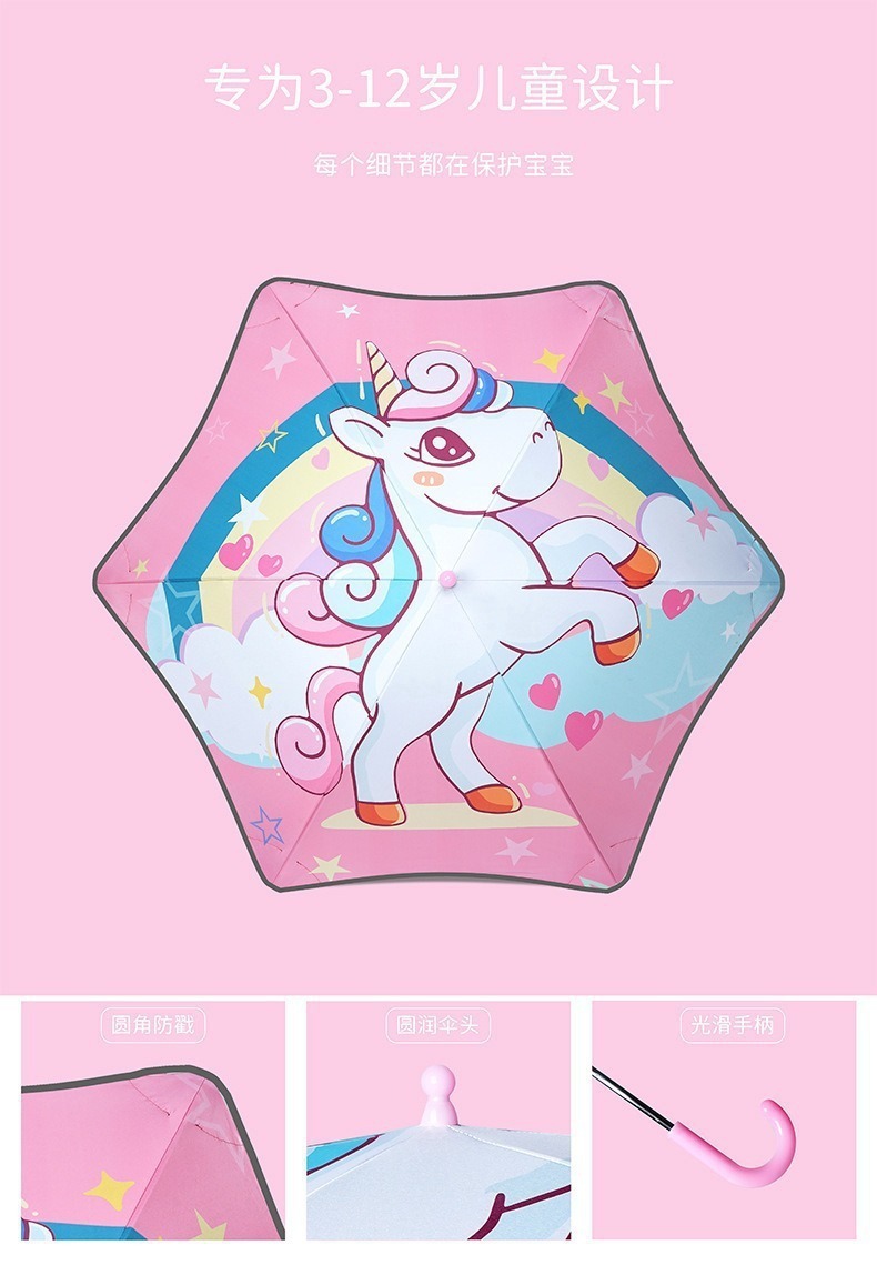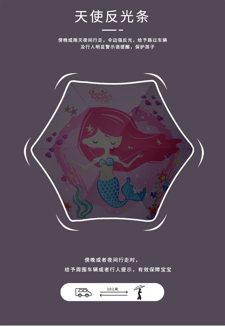 안전한 어린이용 둥근 모서리 우산, 만화 캐릭터 비닐 양산, 비와 햇빛 모두 사용 가능한 양산, 반사 스트립 디자인스토어 가기