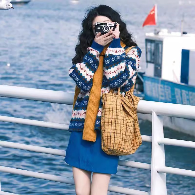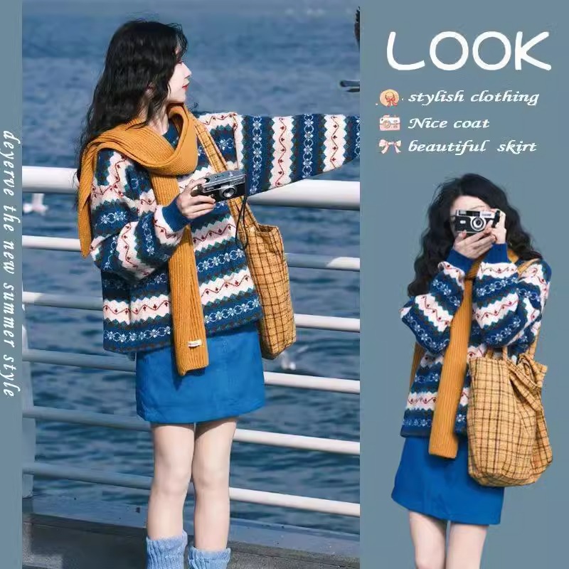 겨울 유행 패션 외국 스타일 세트 여성의 새로운 크리스마스 착용 크루 넥 풀오버 스웨터 스커트 투피스 세트스토어 가기