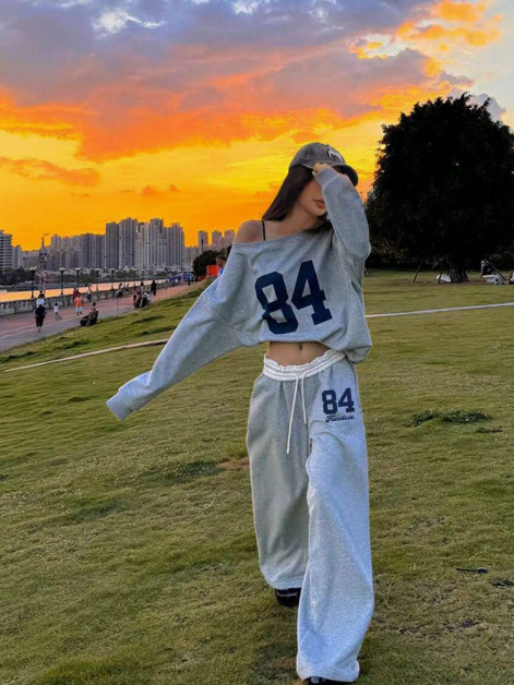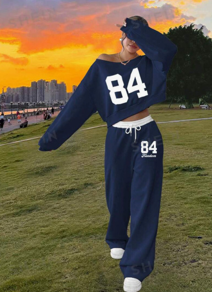 2025 새로운 가을과 겨울 유럽과 미국의 국경 대외 무역 아마존 폭발성 느슨한 캐주얼 프린트 바지 스웨트 셔츠 세트스토어 가기