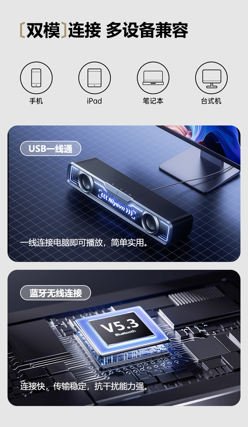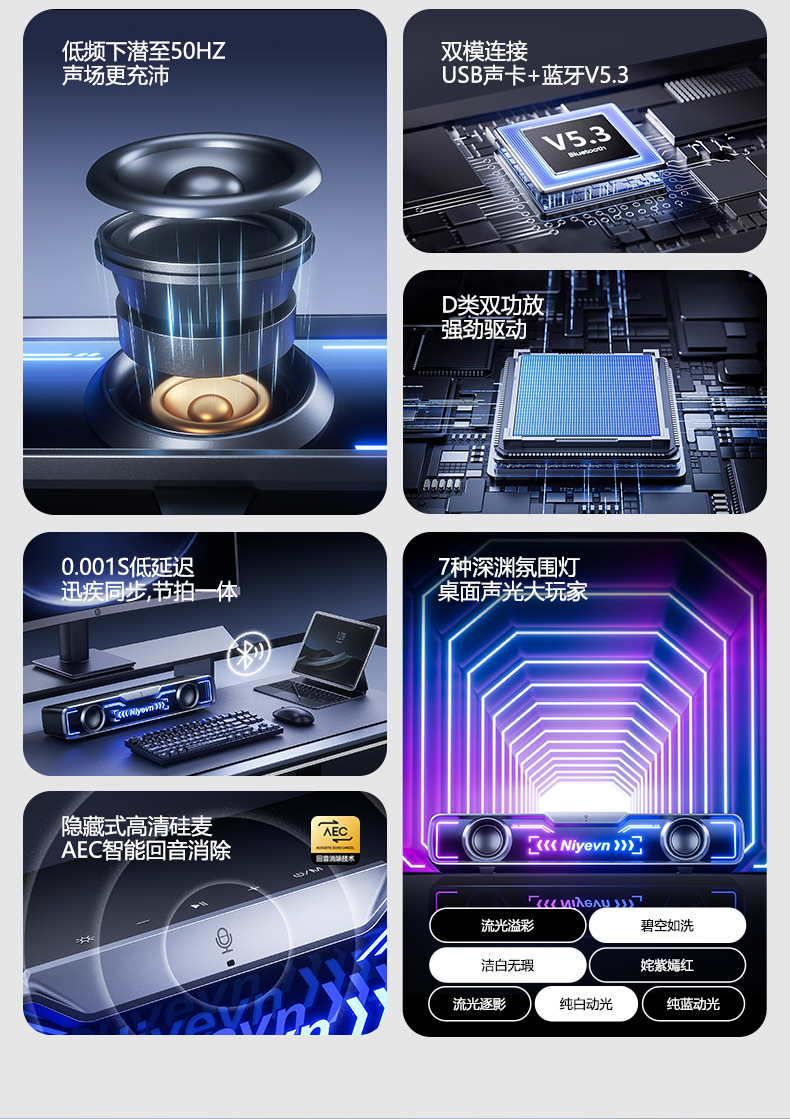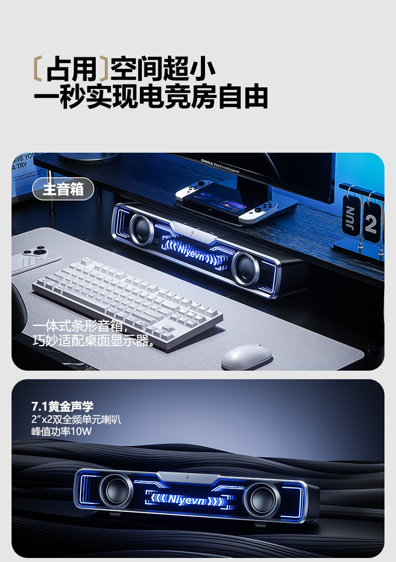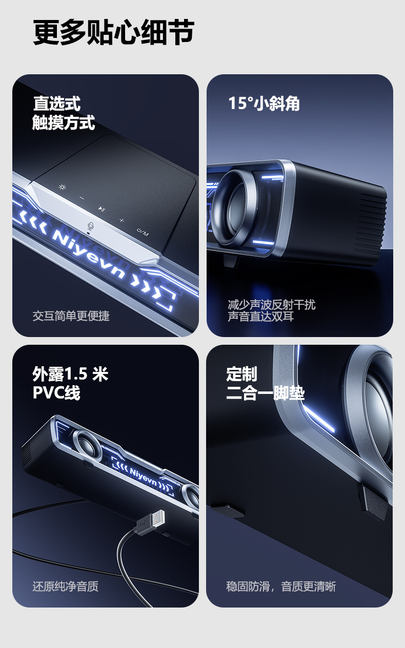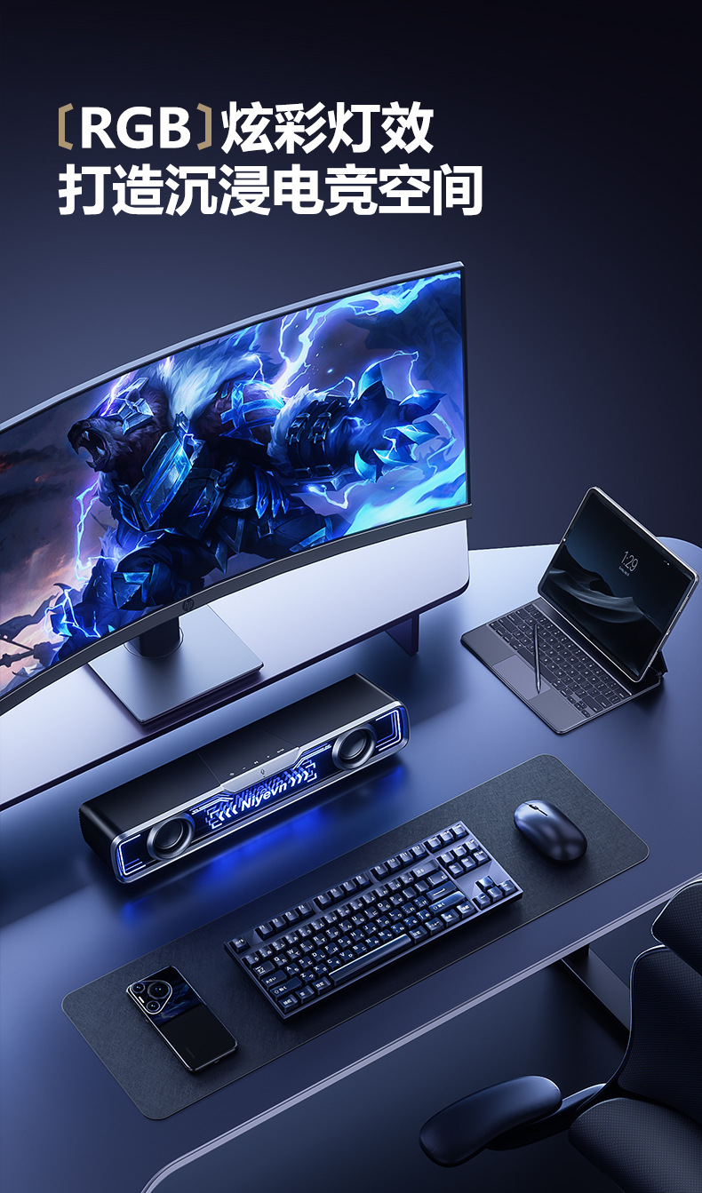 Naiye 데스크탑 스피커 컴퓨터 유선 e-스포츠 스트립 서브우퍼 Bluetooth USB 멀티미디어 스피커 국경 간 핫 모델스토어 가기