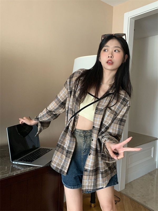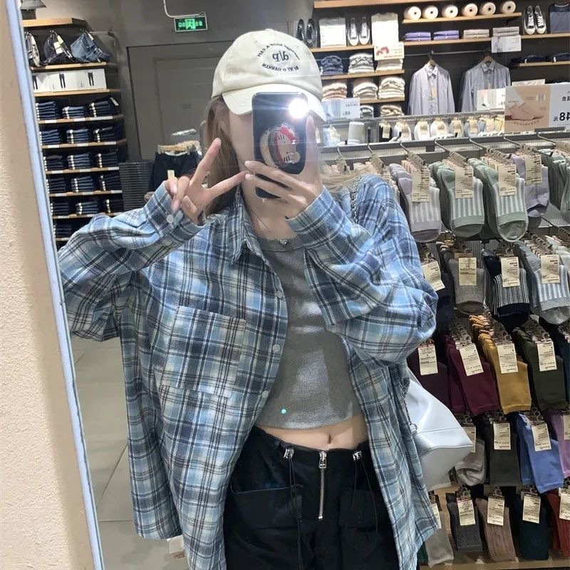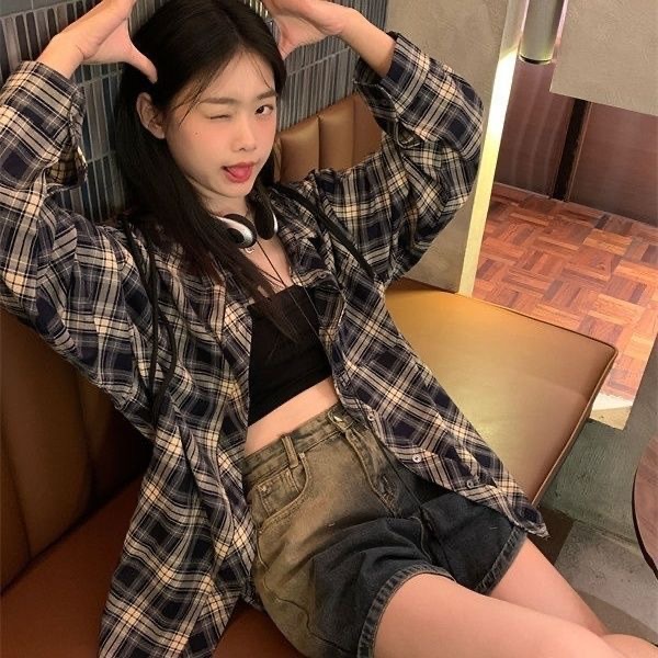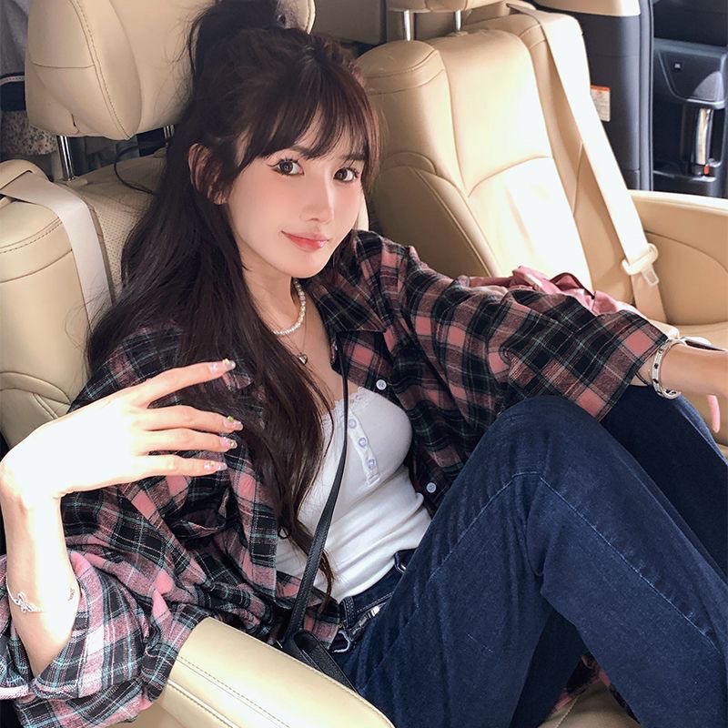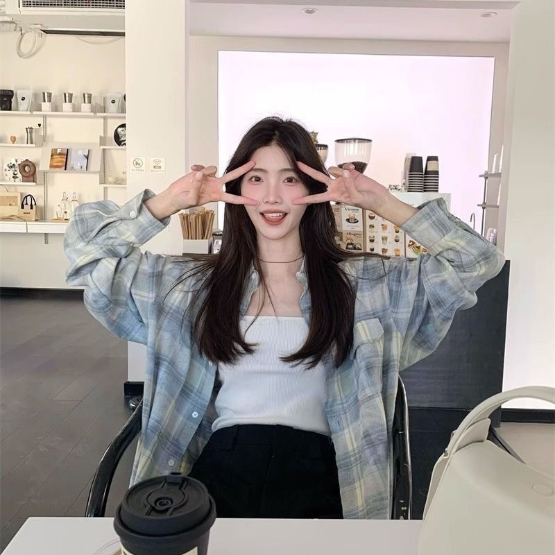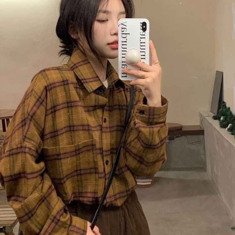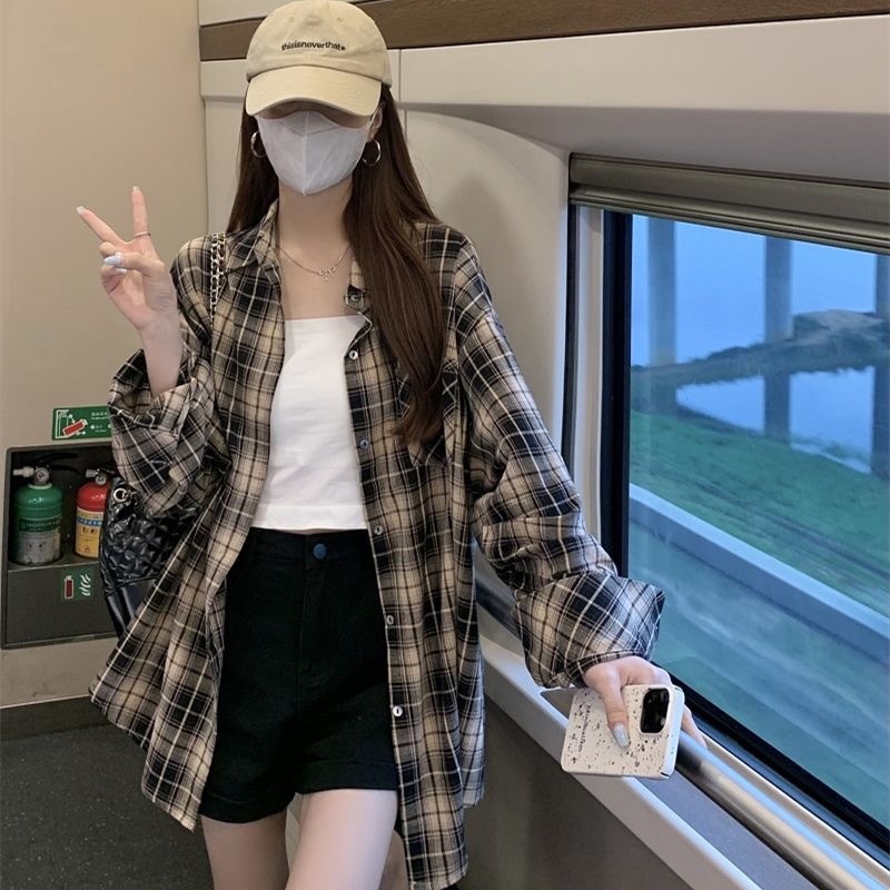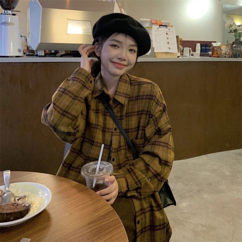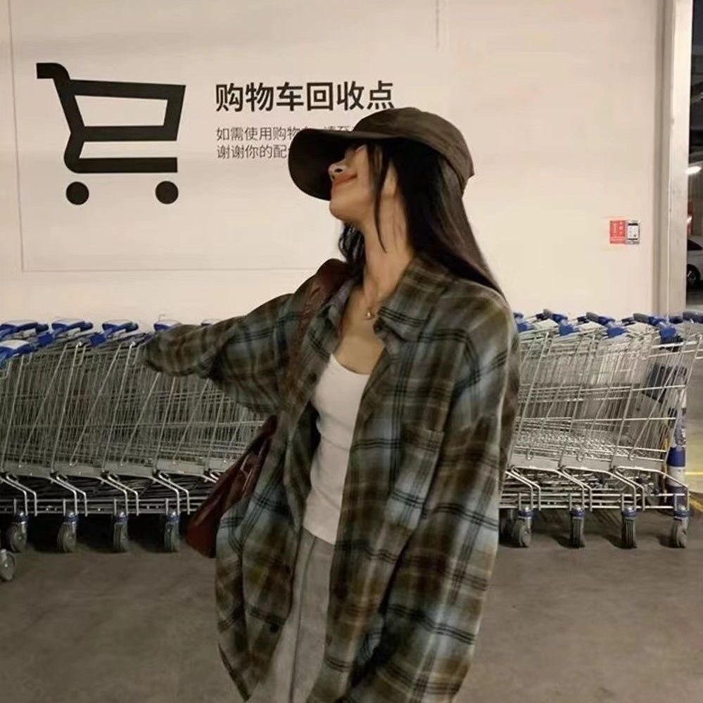 빈티지 샌딩 플레이드 긴팔 셔츠 여성용 봄과 가을 디자인 센스 니쉬 셔츠 루즈 게으른 슬림 핏 코트 탑스토어 가기