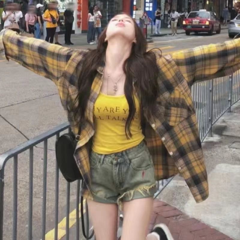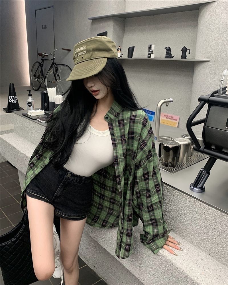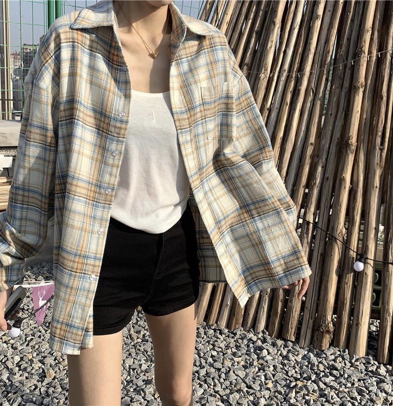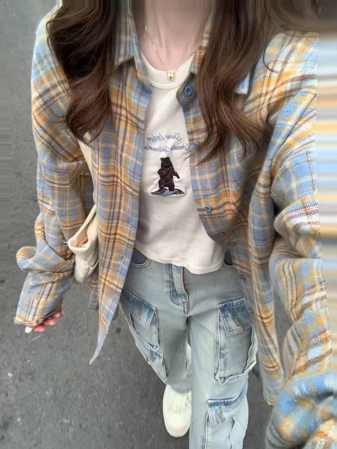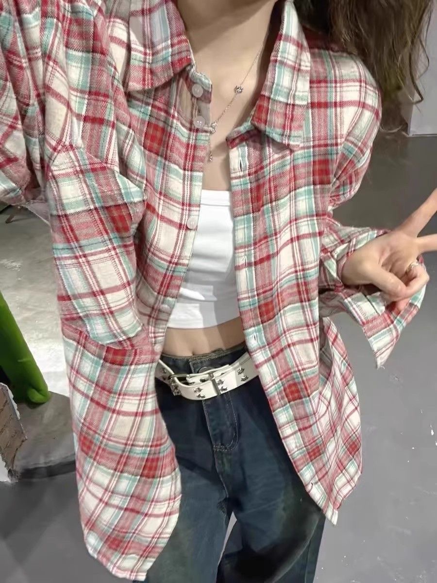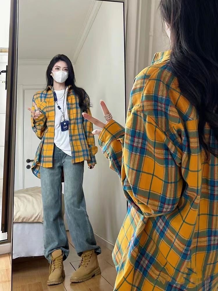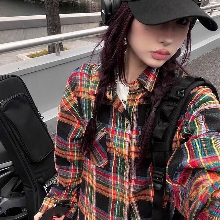 빈티지 샌딩 플레이드 긴팔 셔츠 여성용 봄과 가을 디자인 센스 니쉬 셔츠 루즈 게으른 슬림 핏 코트 탑스토어 가기