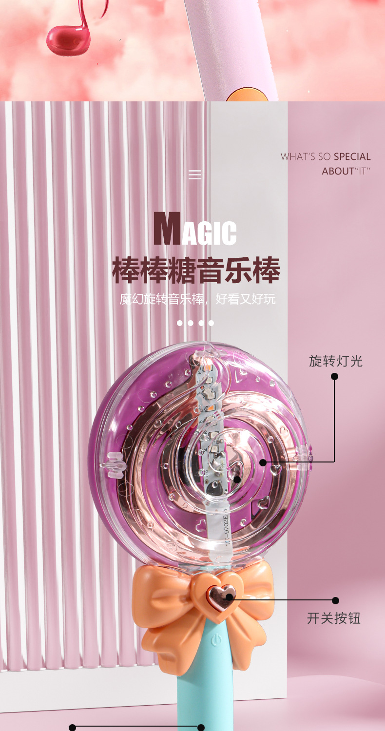 어린이 재미있는 마술 지팡이 어린이 전기 롤리팝 음악 스틱 멋진 조명 및 효과음 소녀 새해 전야 작은 선물 스톨스토어 가기
