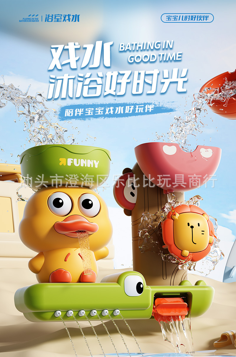 국경 간 어린이 물 놀이 장난감 욕실 목욕 노란 오리 물 분무 빨판 이동 소년 소녀를위한 음악 선물 세트스토어 가기