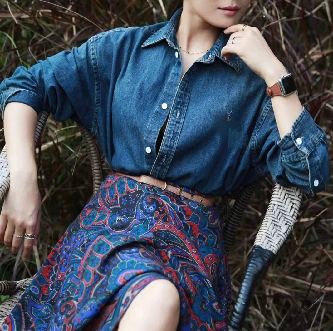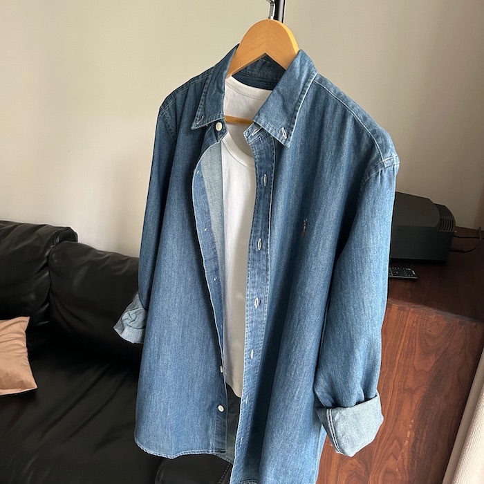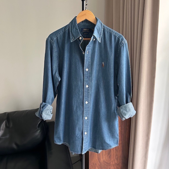 R**L柜上1600+!!!复古调醇正蓝牛仔衬衫