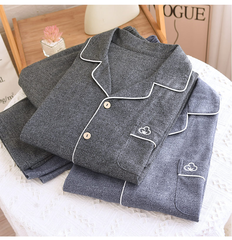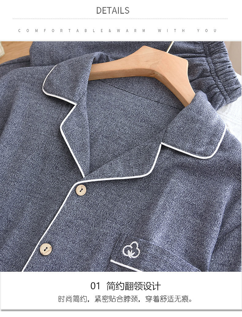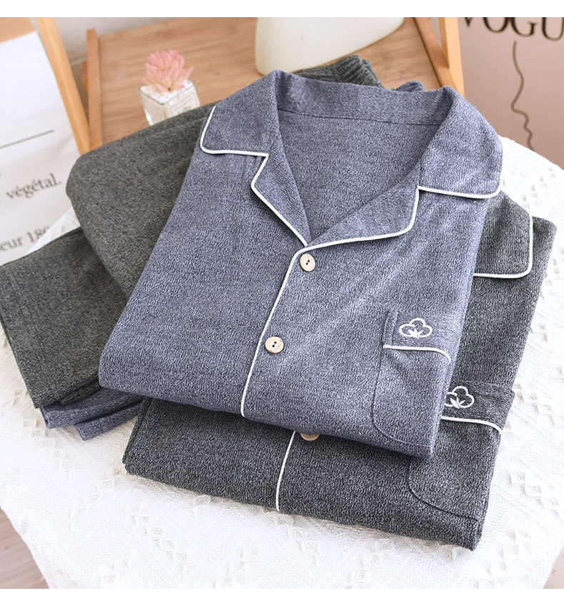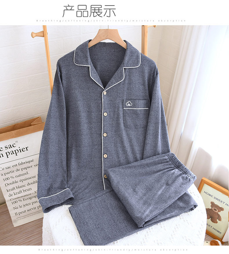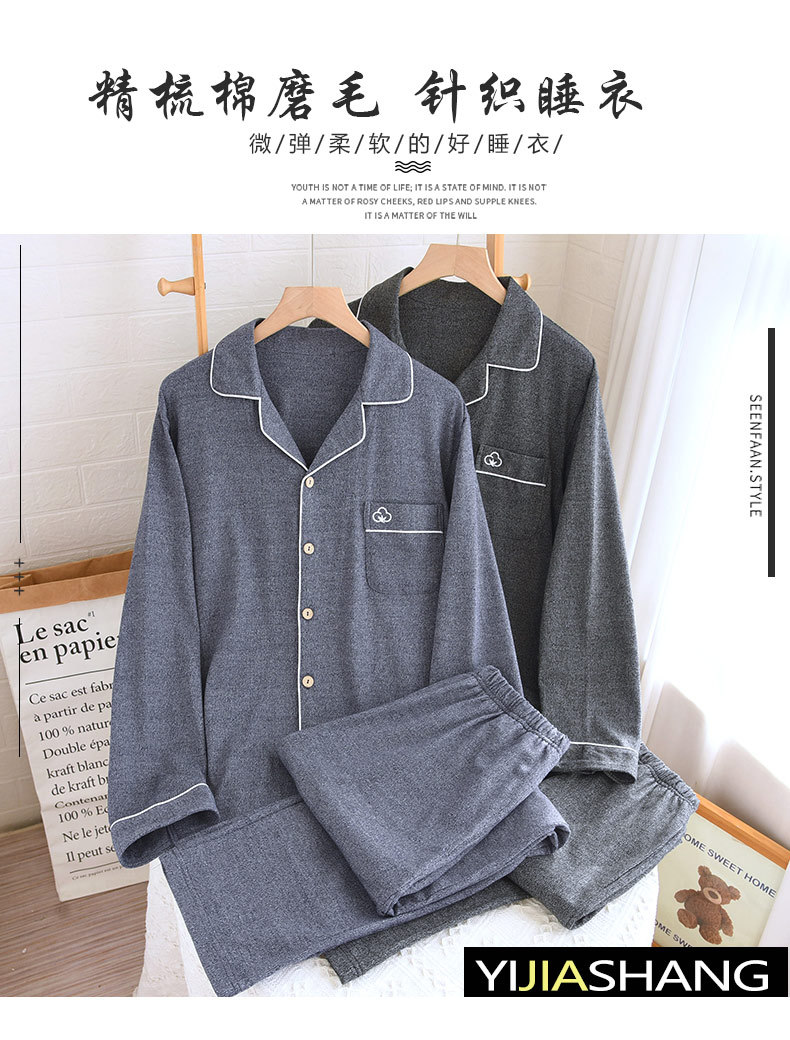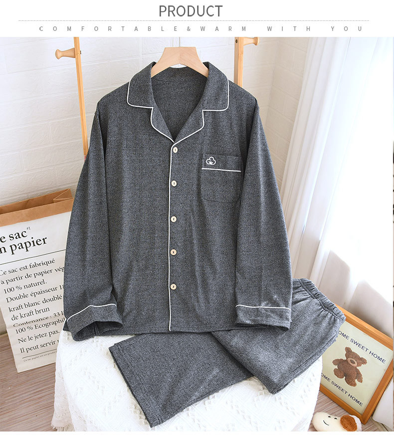 새로운 니트 코튼 남성용 잠옷 세트 두꺼운 간단한 옷깃 카디건 긴 소매 캐주얼 홈 의류 세트 도매스토어 가기