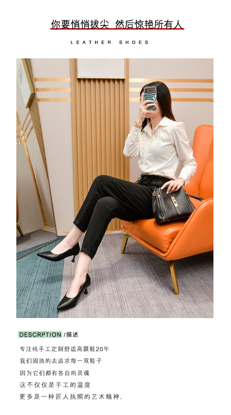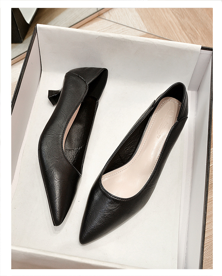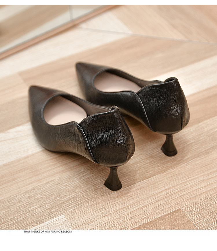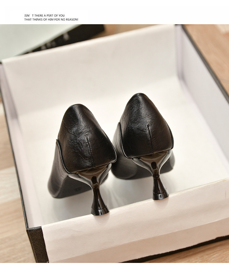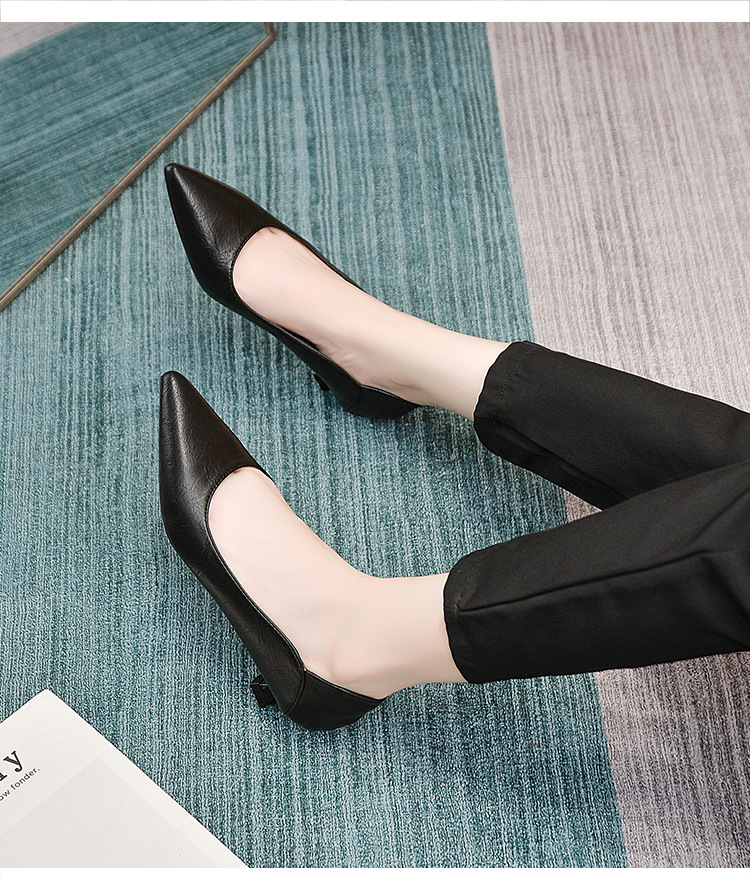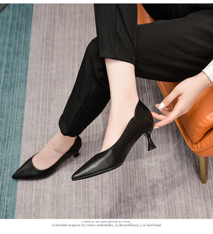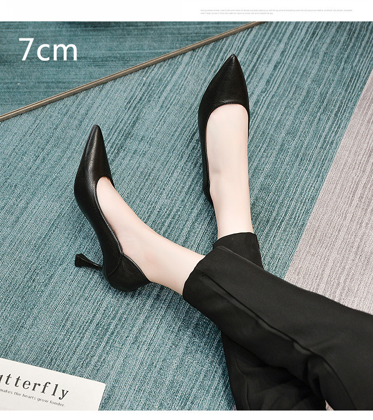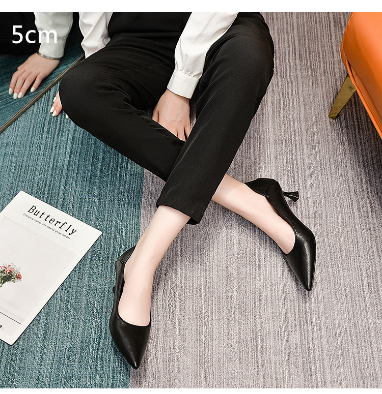 비행 점유 하이힐 스틸레토 힐 편안한 소프트 솔 전문 여성 신발 작업복 미드 힐 소프트 가죽 작업 신발 블랙 포인팅 신발스토어 가기