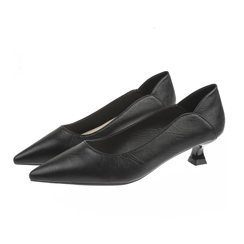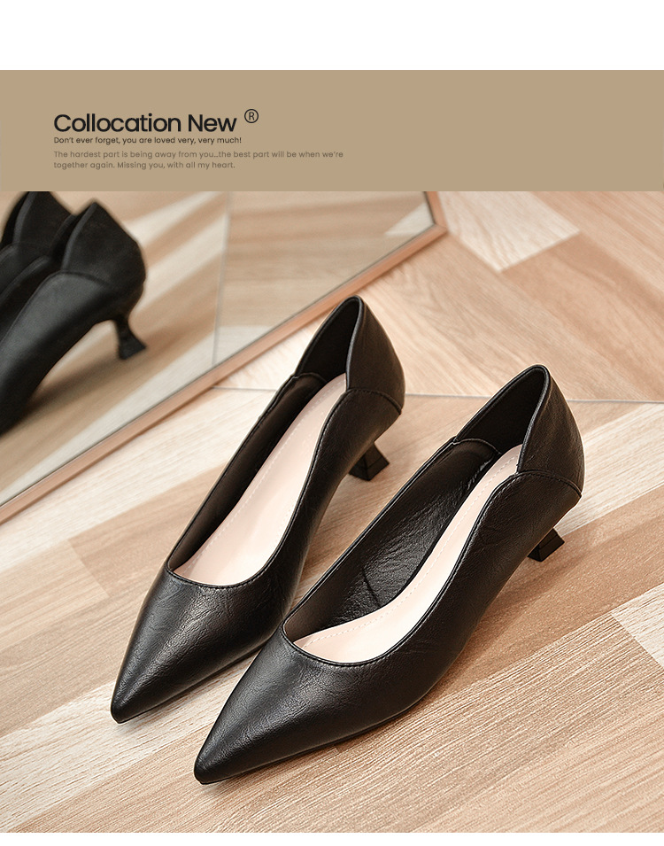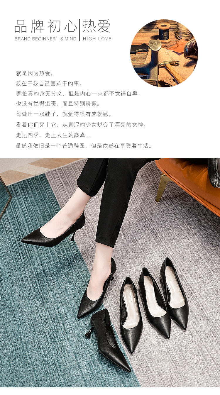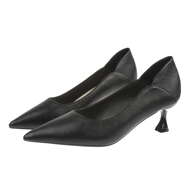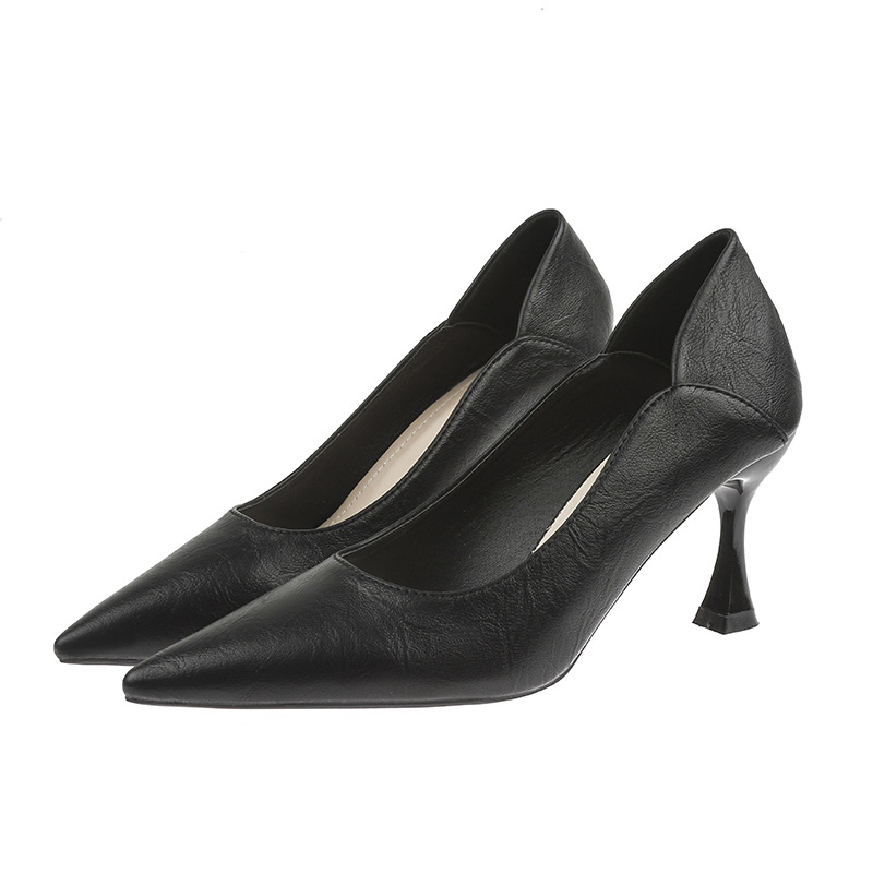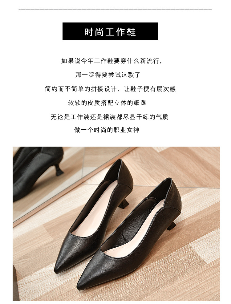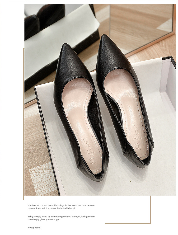 비행 점유 하이힐 스틸레토 힐 편안한 소프트 솔 전문 여성 신발 작업복 미드 힐 소프트 가죽 작업 신발 블랙 포인팅 신발스토어 가기