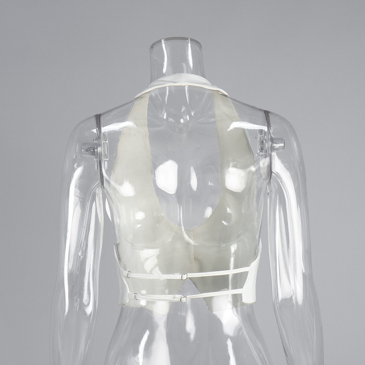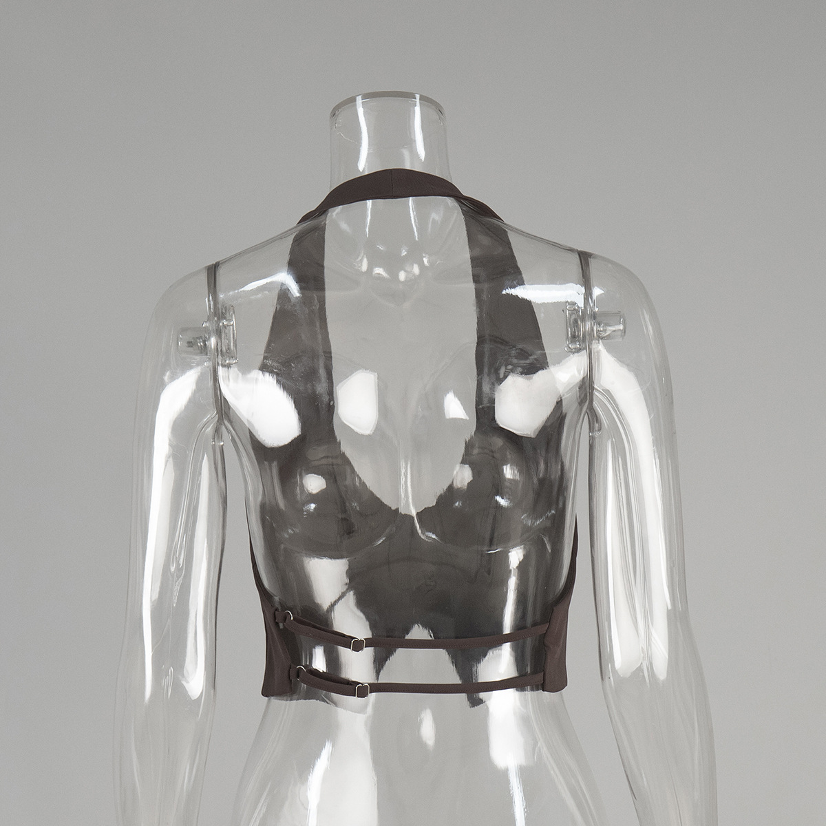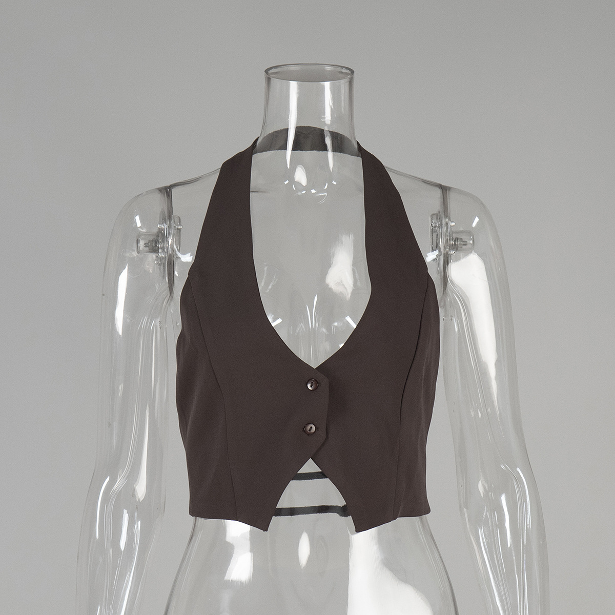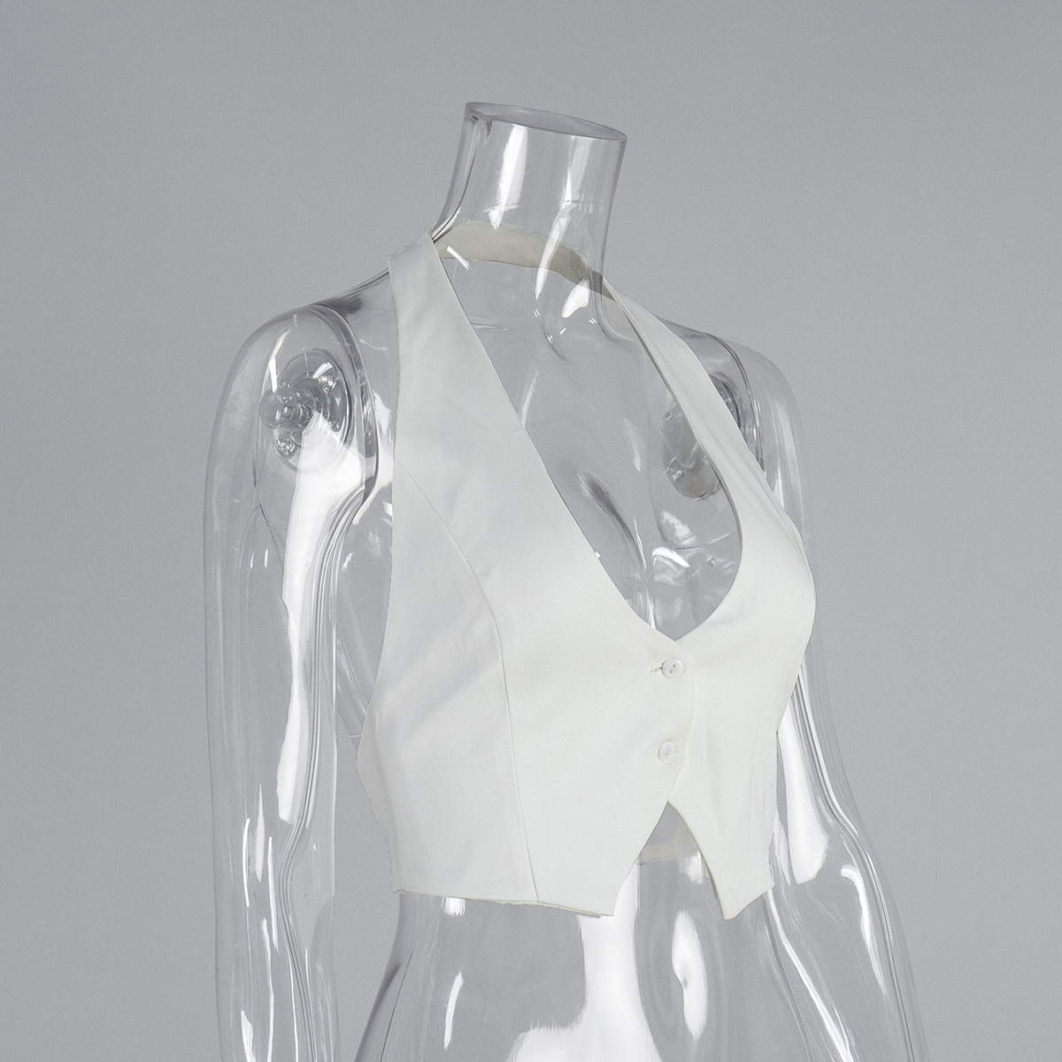 국경 간 짧은 목 조끼 유럽 및 미국 2025 봄과 여름 새로운 스파이스 소녀 스타일 섹시한 백리스 조끼 여성