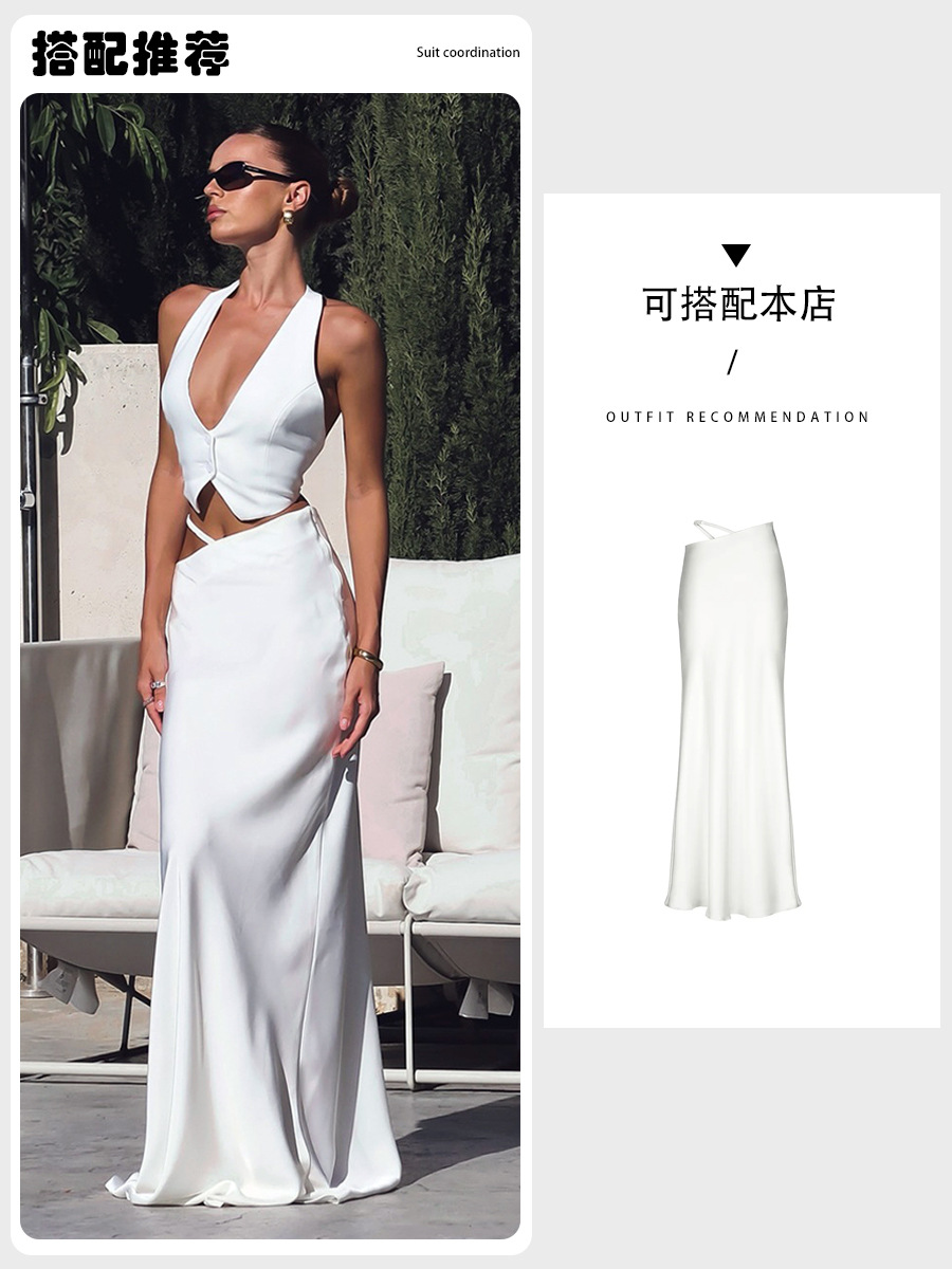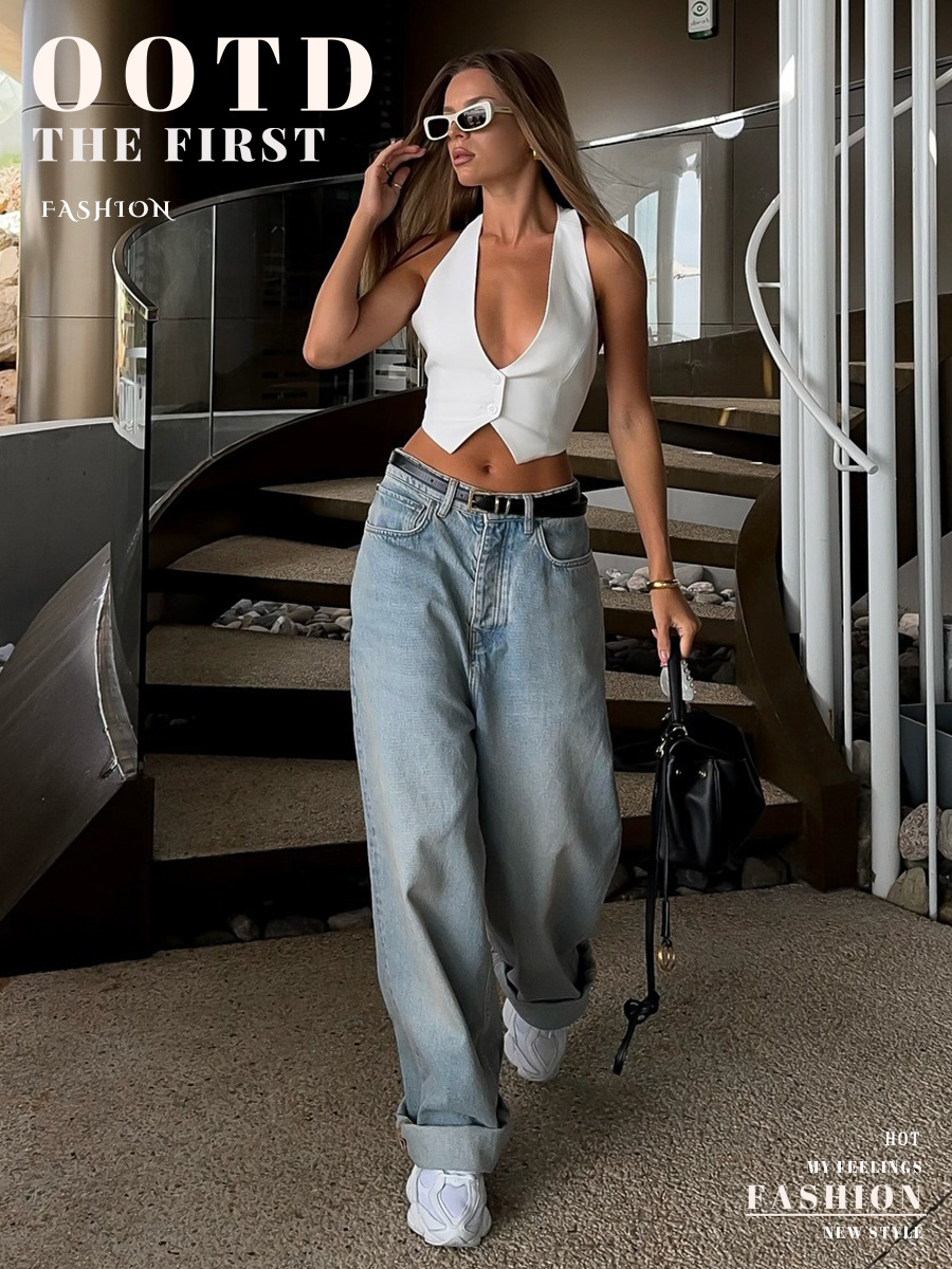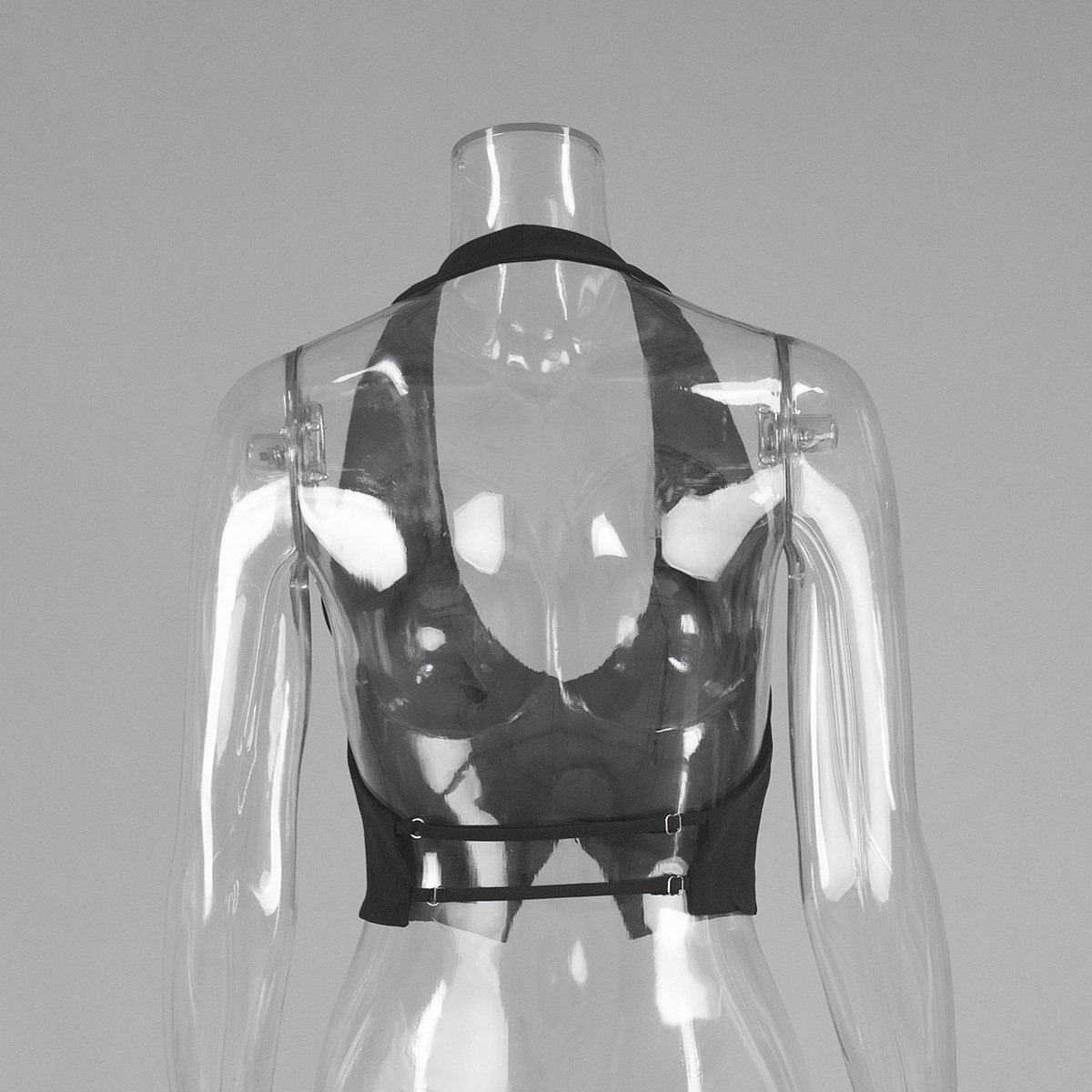 국경 간 짧은 목 조끼 유럽 및 미국 2025 봄과 여름 새로운 스파이스 소녀 스타일 섹시한 백리스 조끼 여성스토어 가기