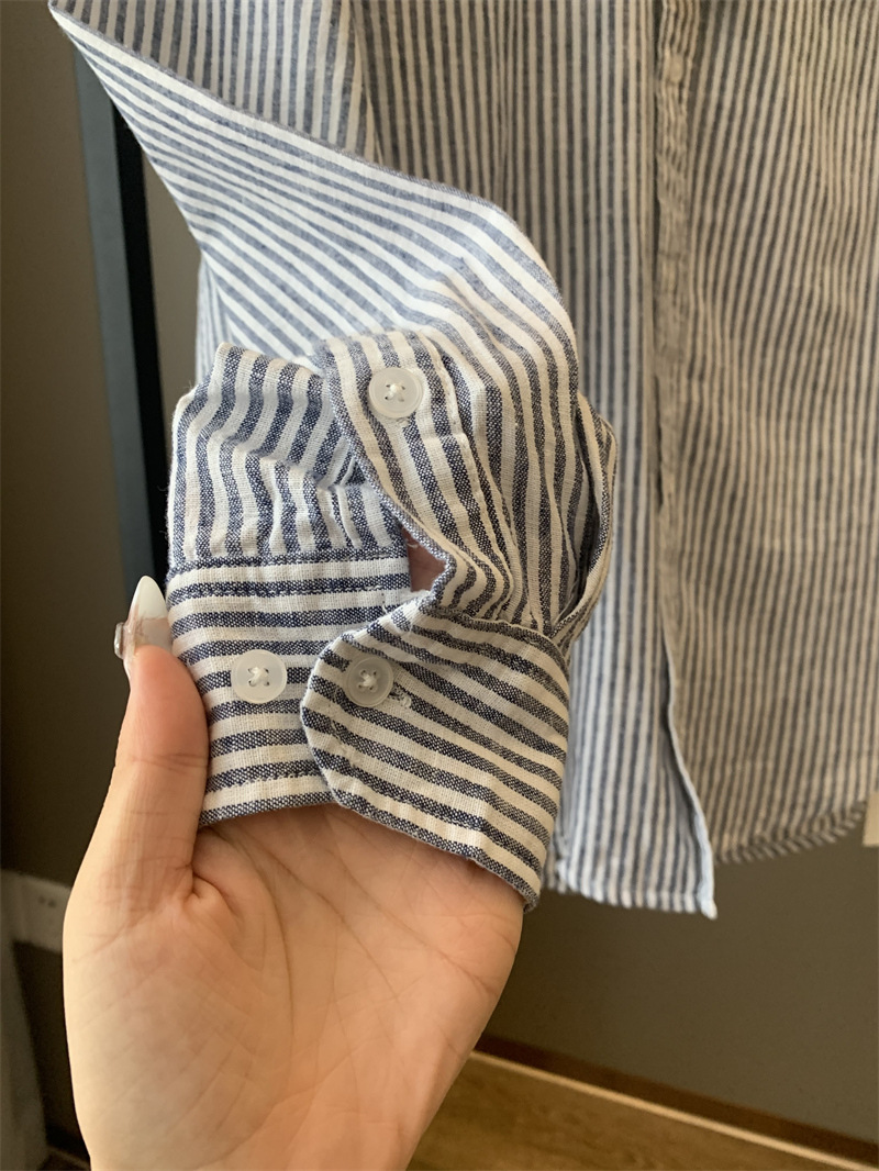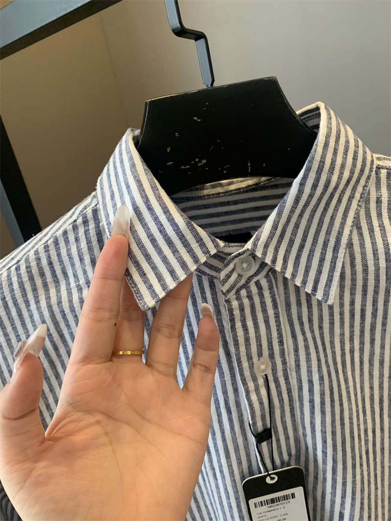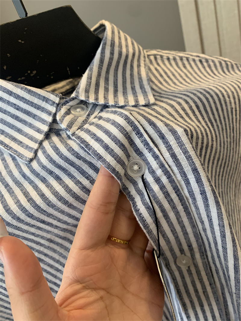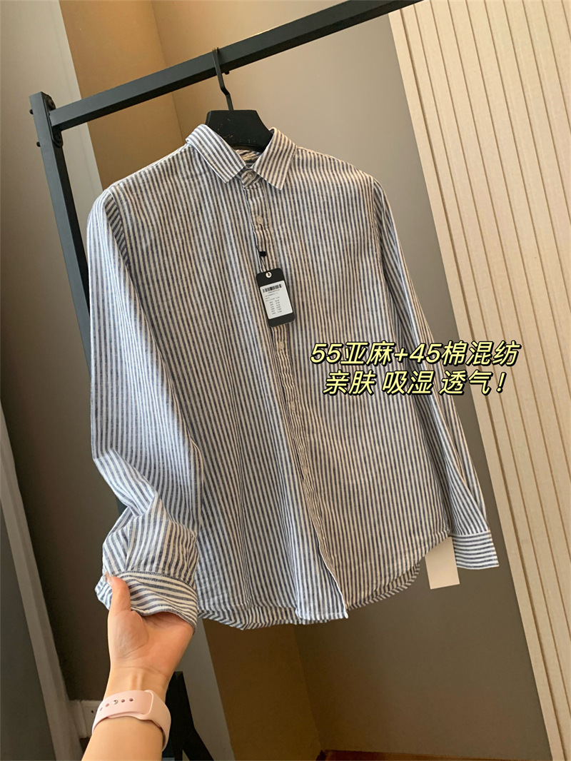 중동에서 전체 주문을하십시오! 통기성 코튼 블렌드 수분! 남자 스트라이프 린넨 긴팔 셔츠스토어 가기