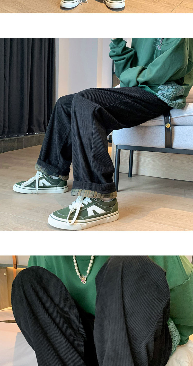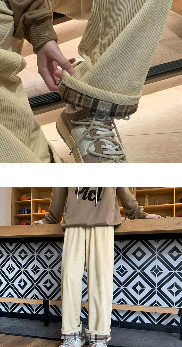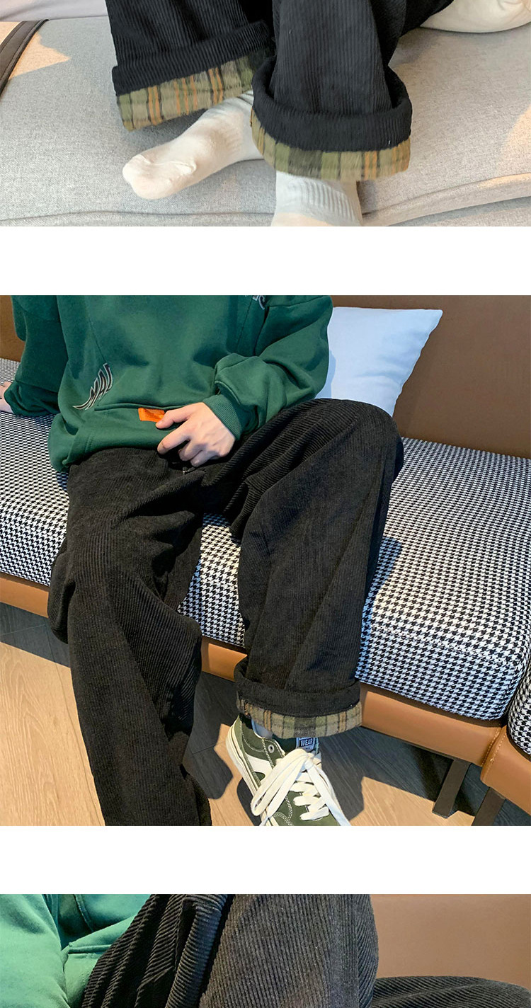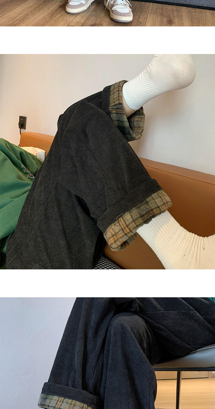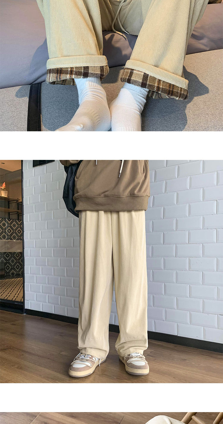 격자 무늬 코듀로이 바지 남자의 봄 가을과 겨울 기모 두꺼운 일본식 스웨트 팬츠 스트레이트-다리 느슨한 와이드 레그 캐주얼 바지스토어 가기