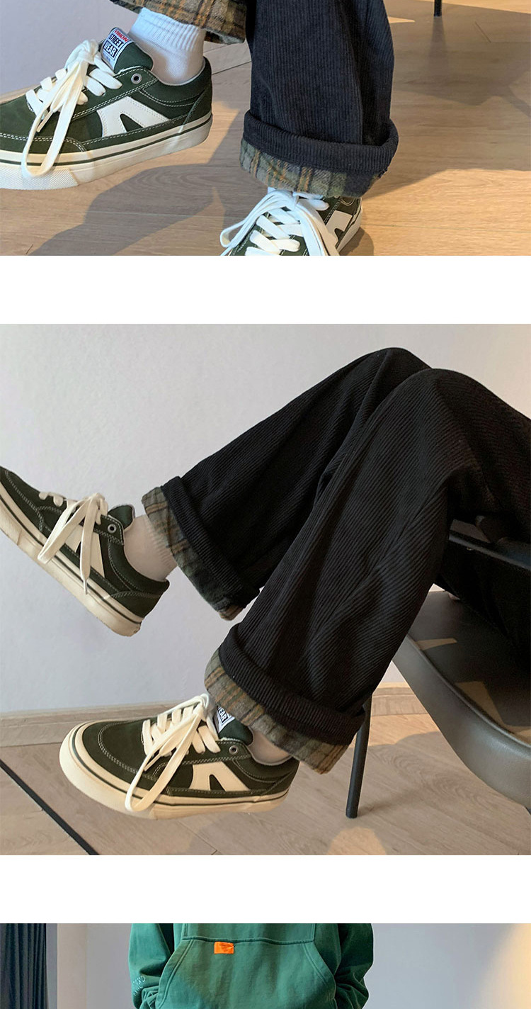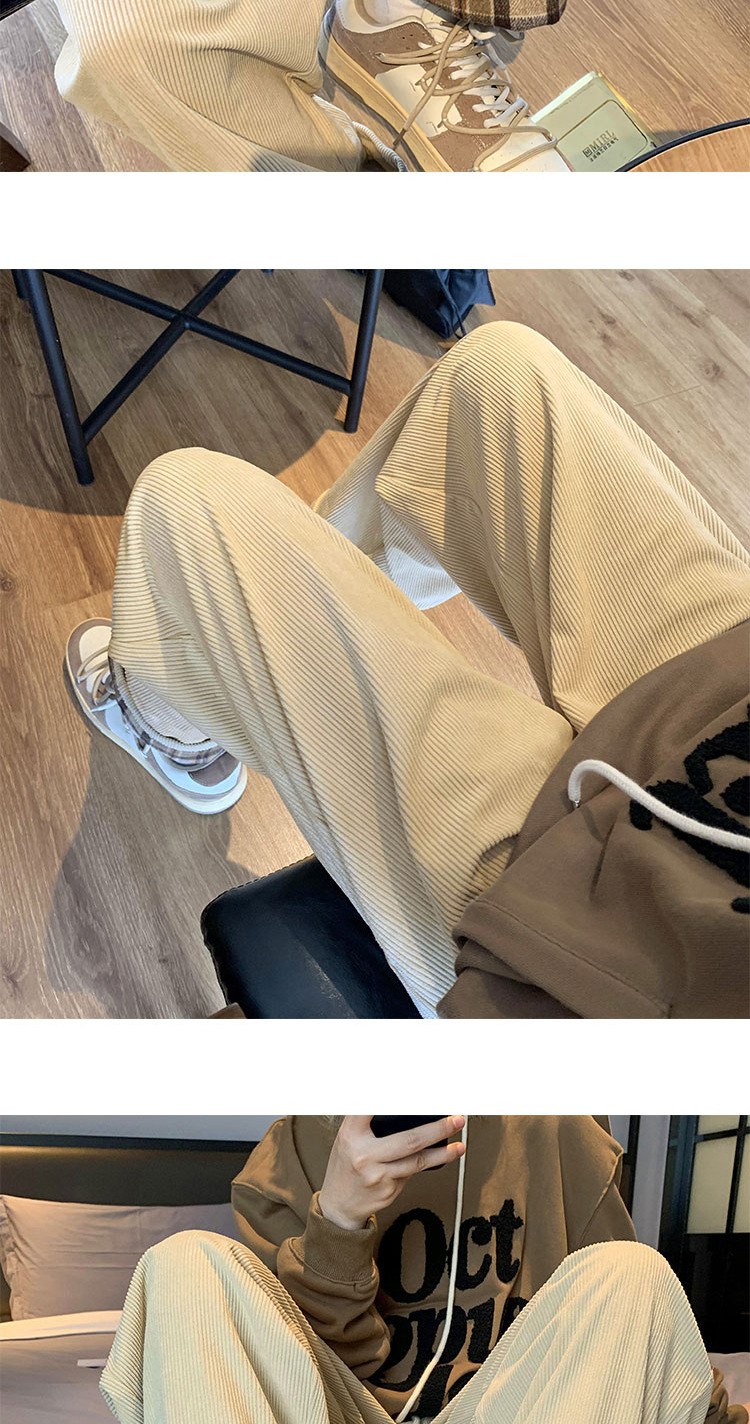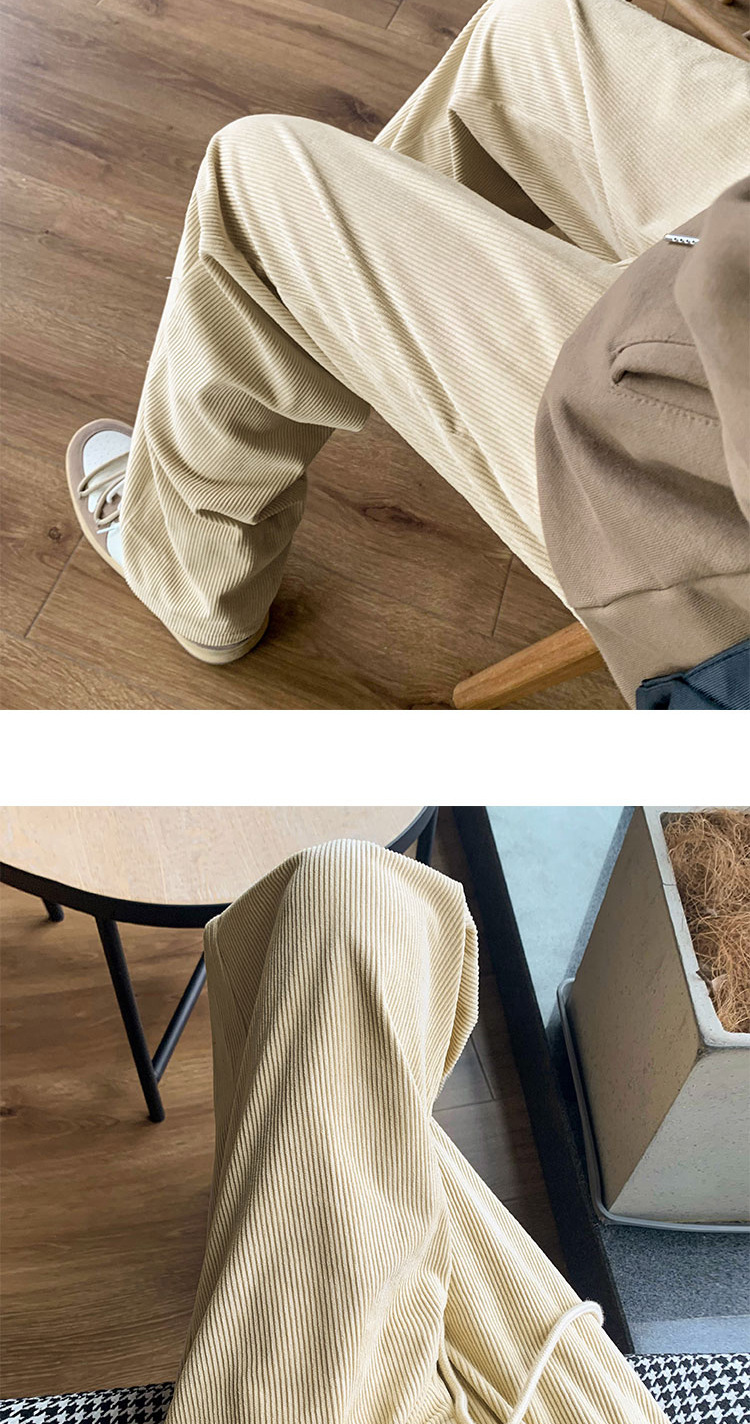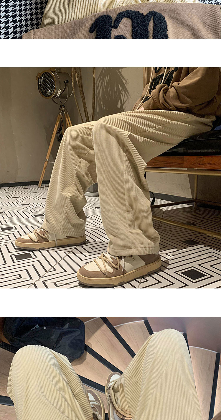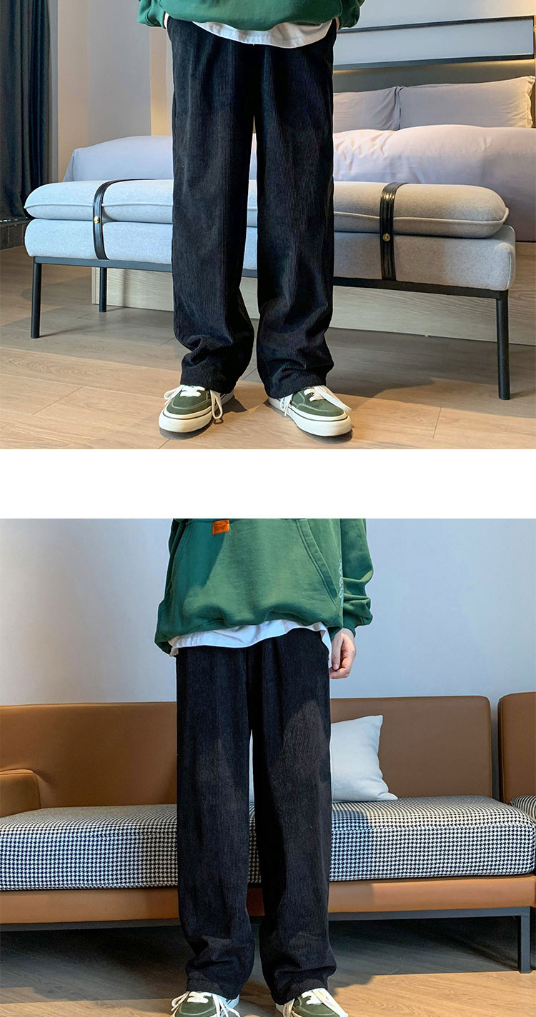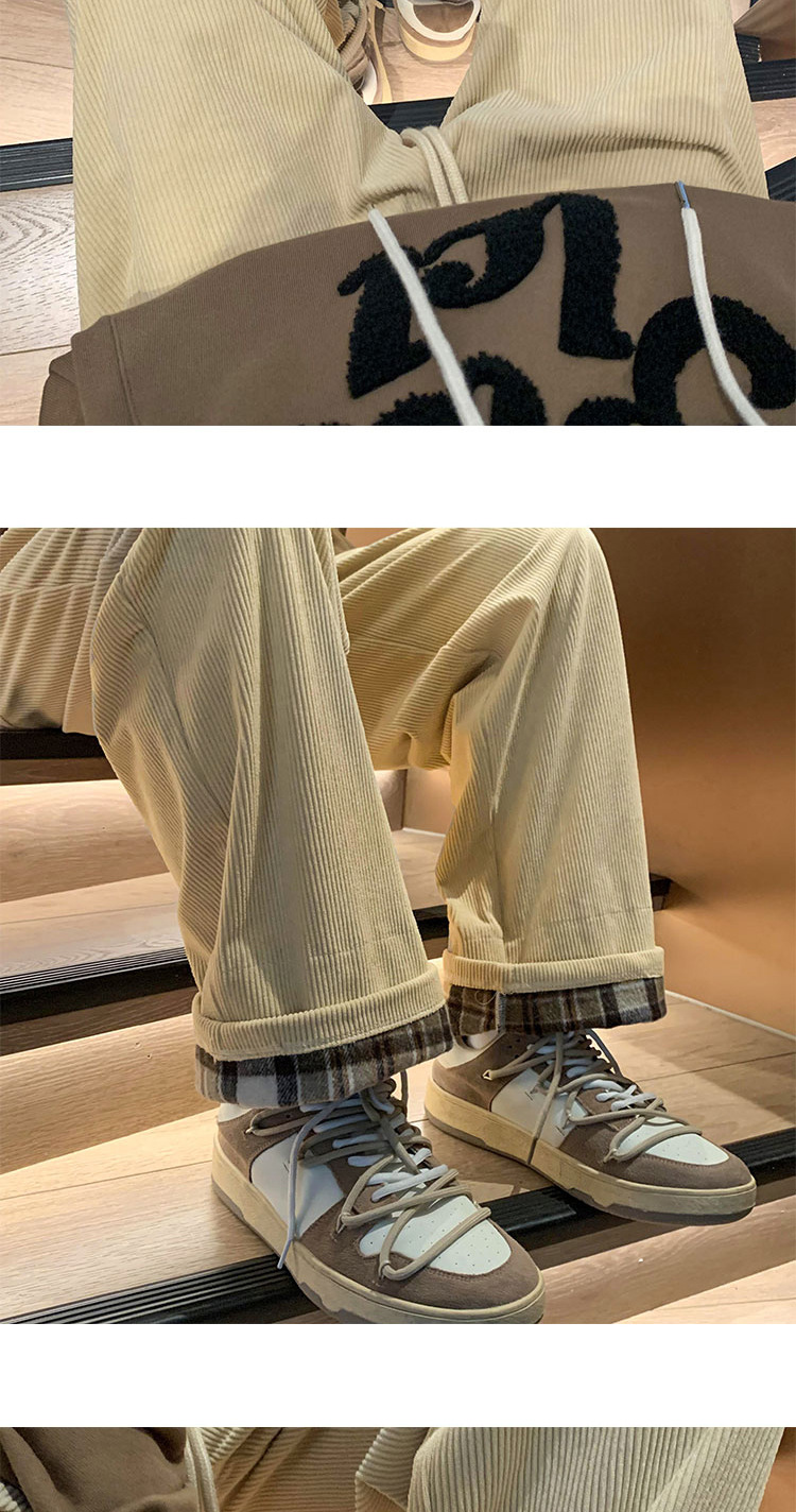 격자 무늬 코듀로이 바지 남자의 봄 가을과 겨울 기모 두꺼운 일본식 스웨트 팬츠 스트레이트-다리 느슨한 와이드 레그 캐주얼 바지스토어 가기