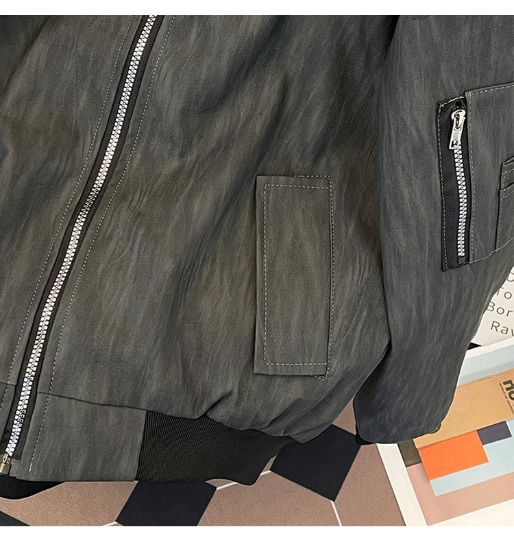 미국식 레트로 야구 세트 남자 가을과 겨울 느슨한 캐주얼 짧은 후드 가죽 질감 재킷 가짜 투피스 재킷