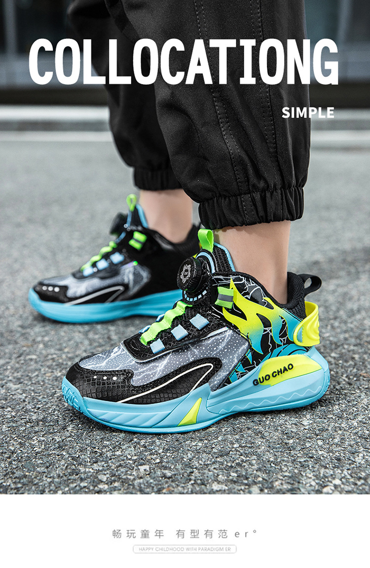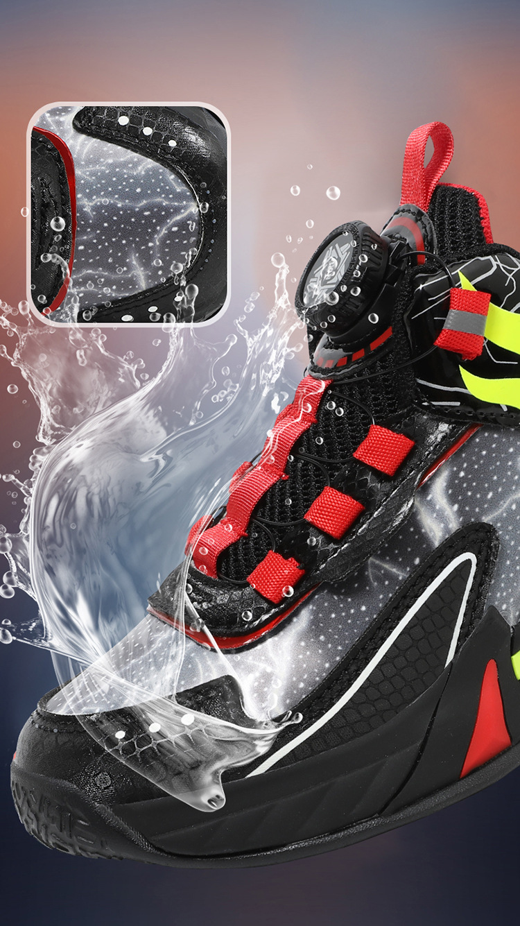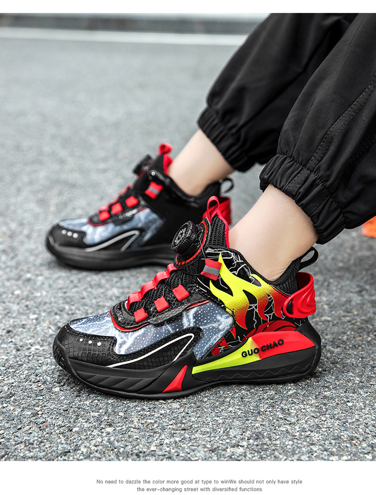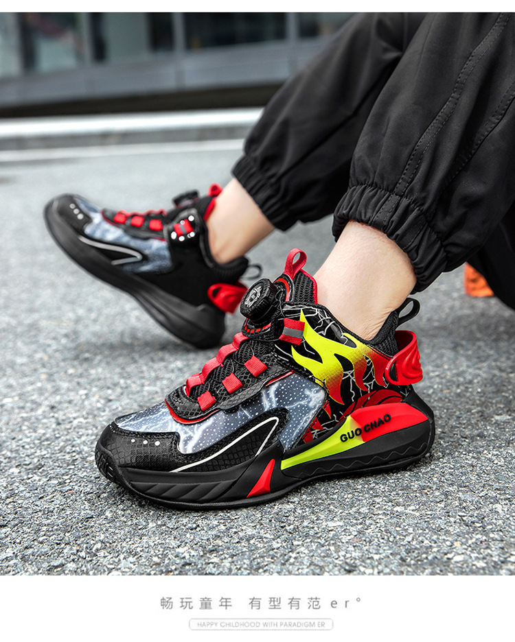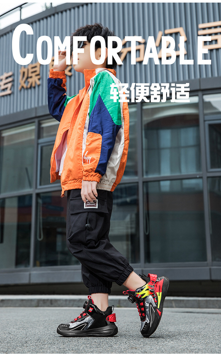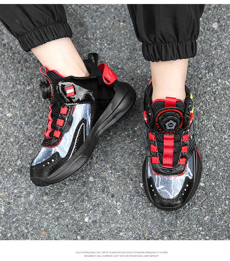어린이 농구 신발 봄과 가을 새로운 가죽 방수 소년 버튼 운동화 중 큰 아이 문지르는 소리
