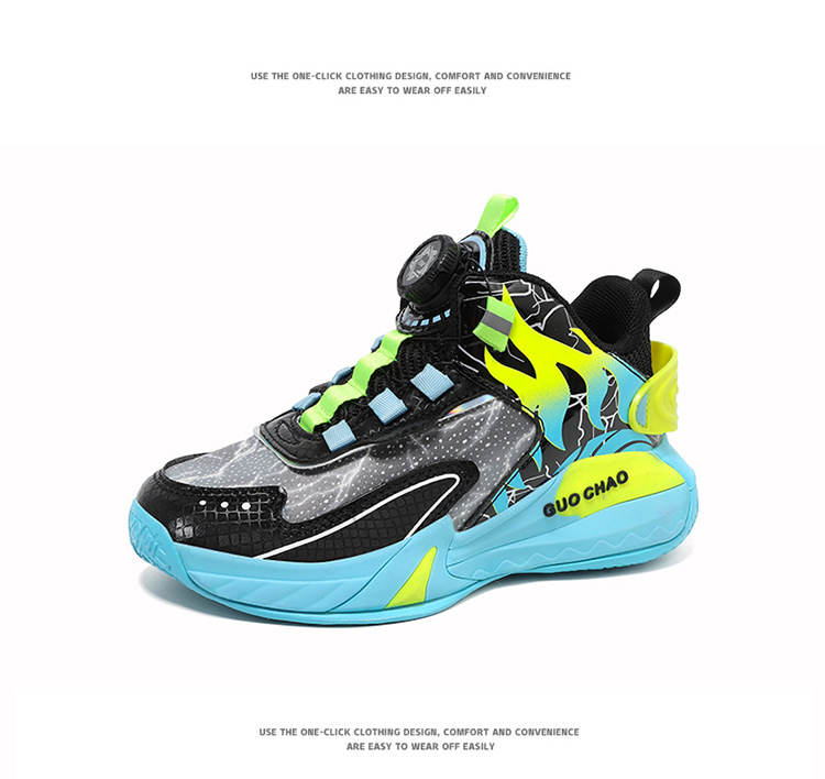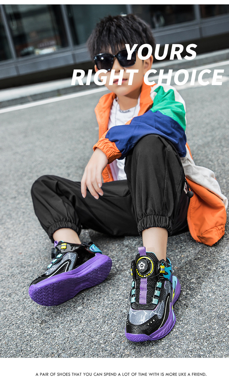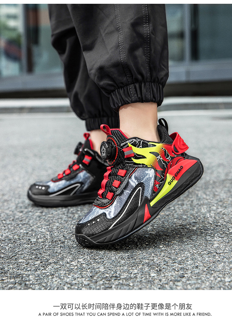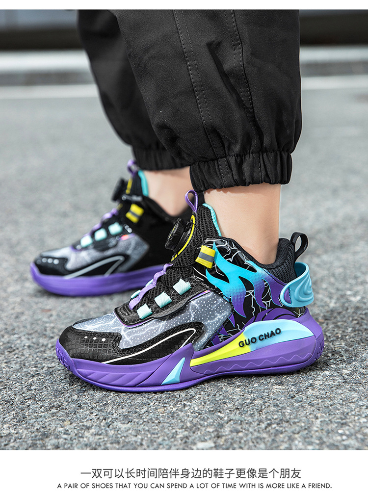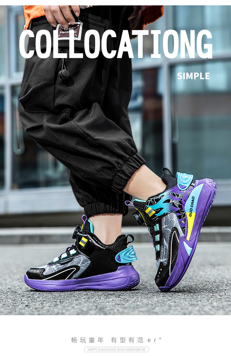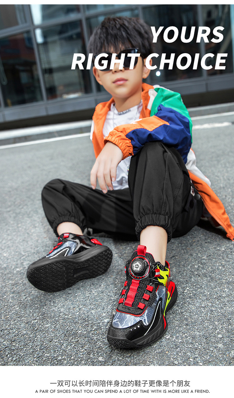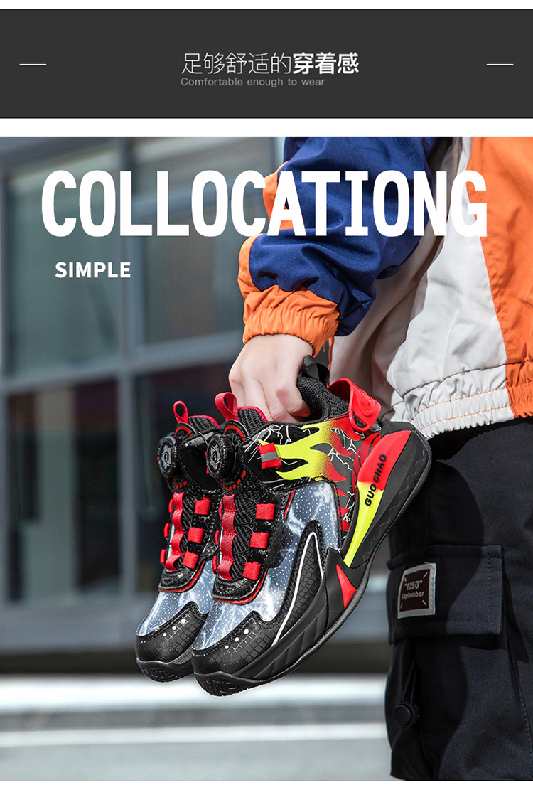 어린이 농구 신발 봄과 가을 새로운 가죽 방수 소년 버튼 운동화 중 큰 아이 문지르는 소리