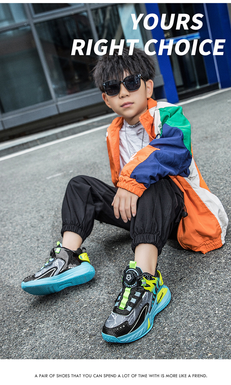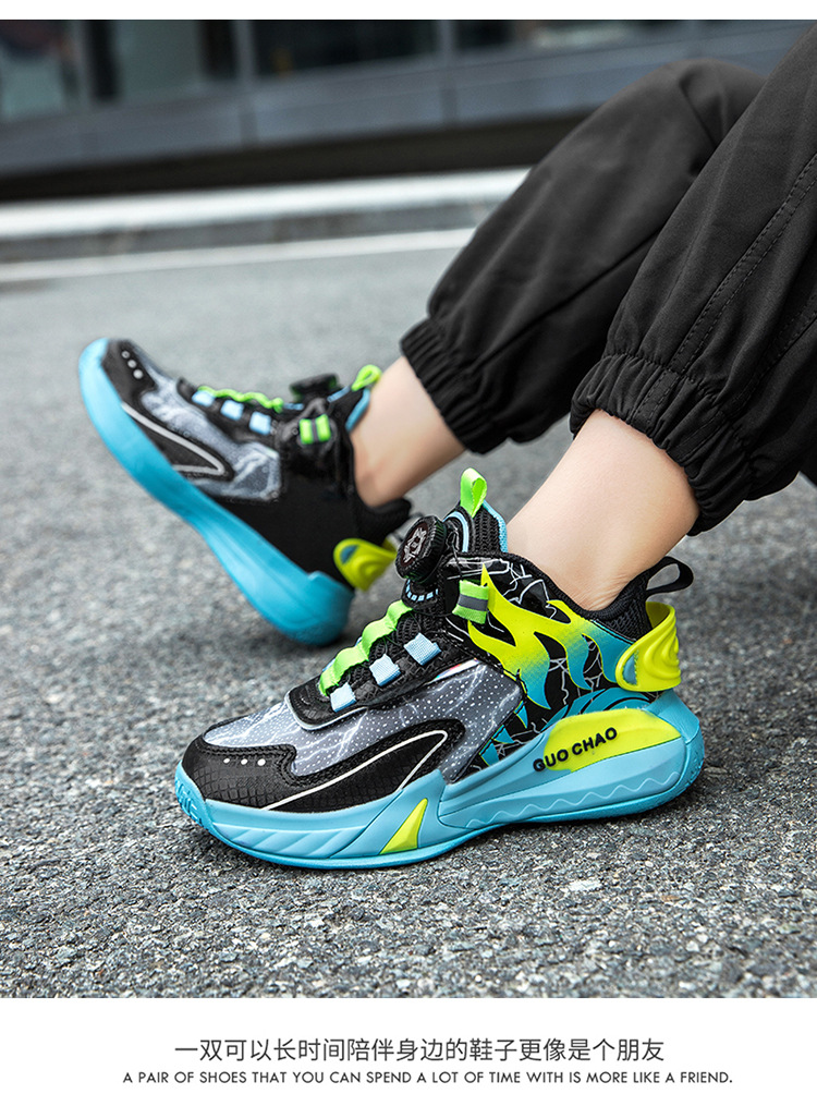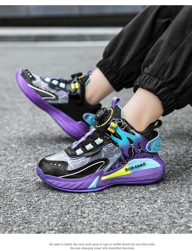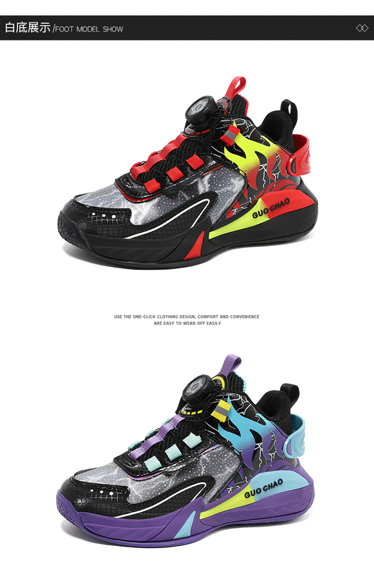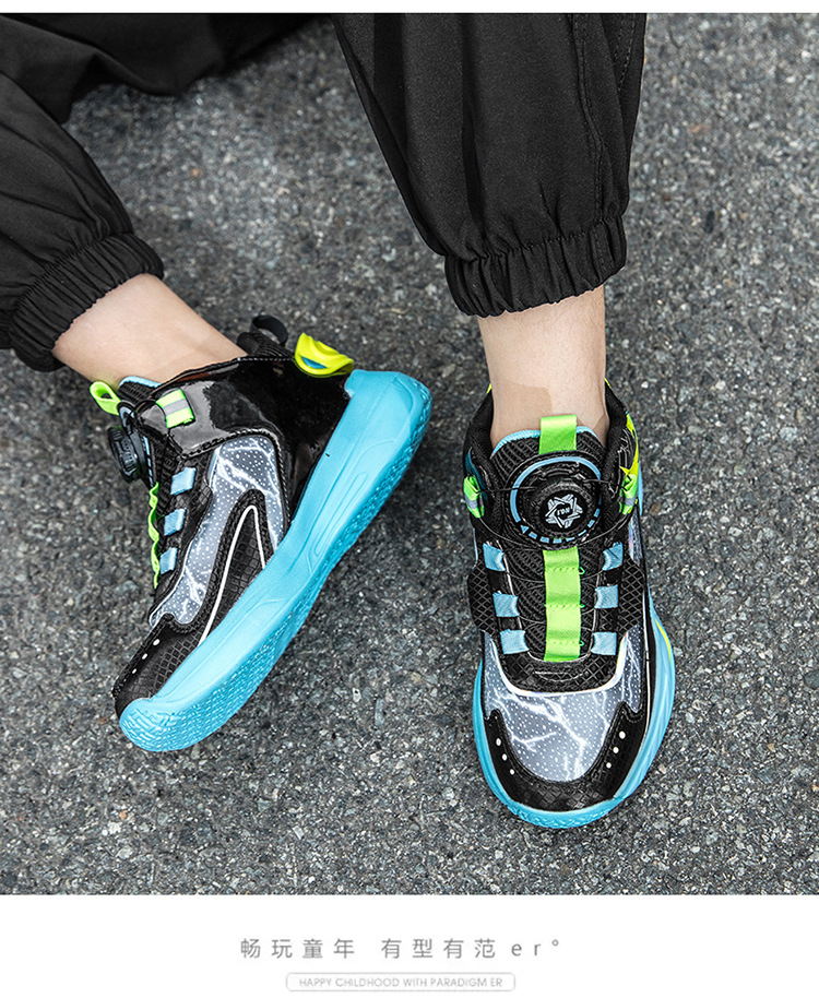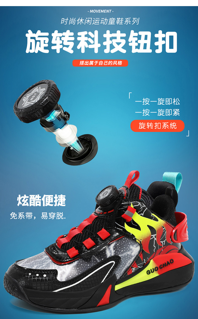 어린이 농구 신발 봄과 가을 새로운 가죽 방수 소년 버튼 운동화 중 큰 아이 문지르는 소리