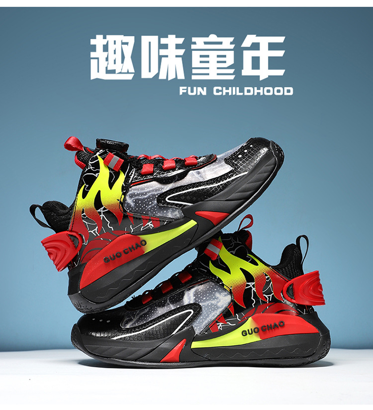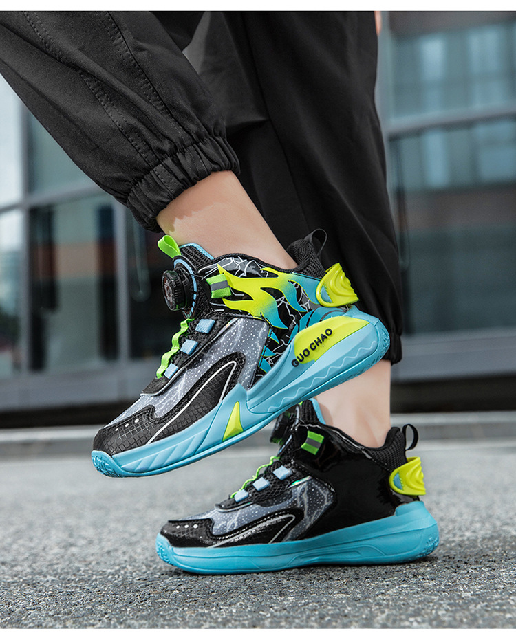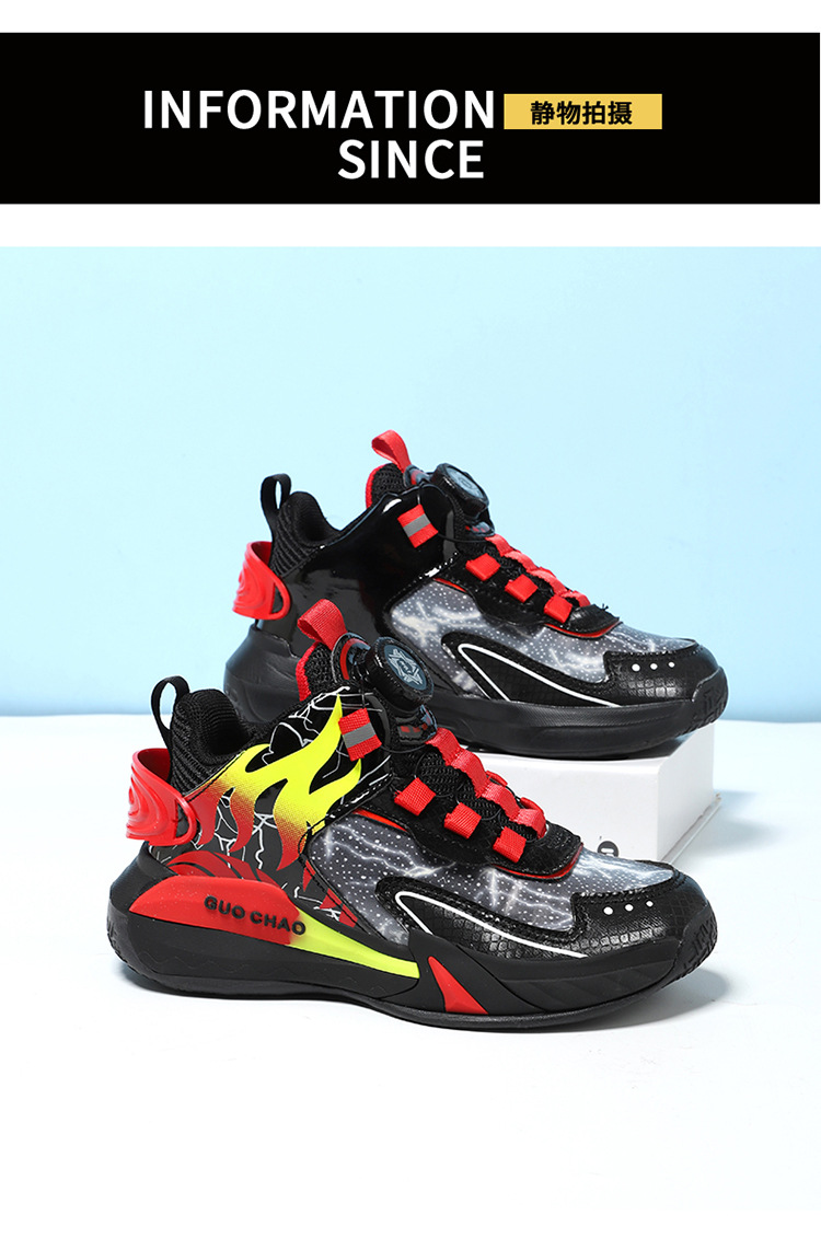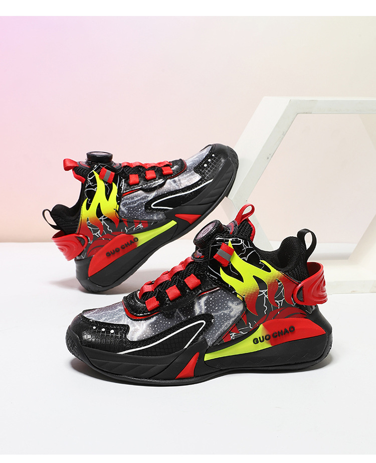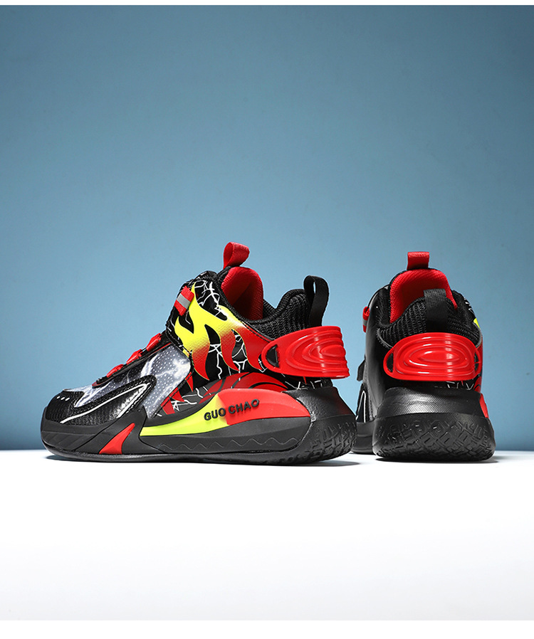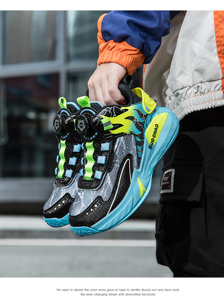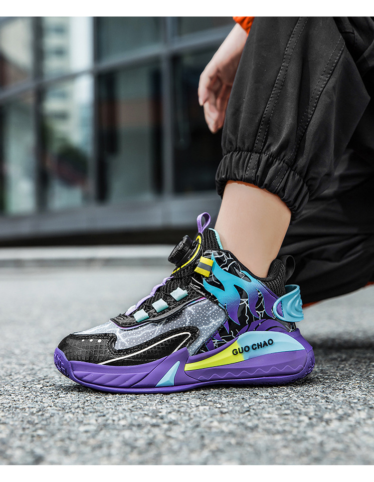 어린이 농구 신발 봄과 가을 새로운 가죽 방수 소년 버튼 운동화 중 큰 아이 문지르는 소리