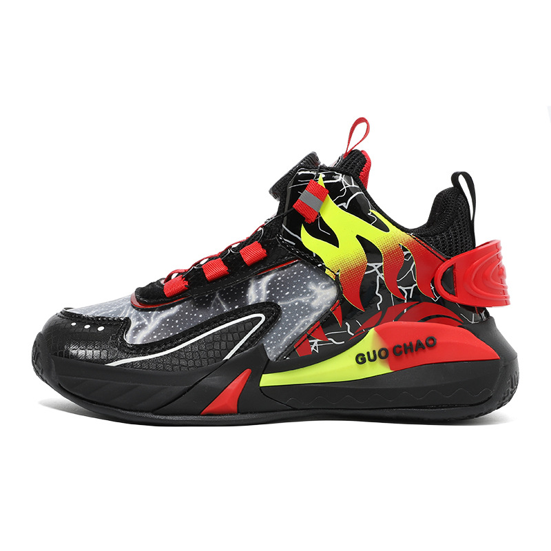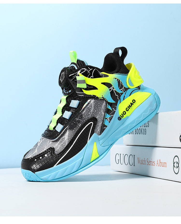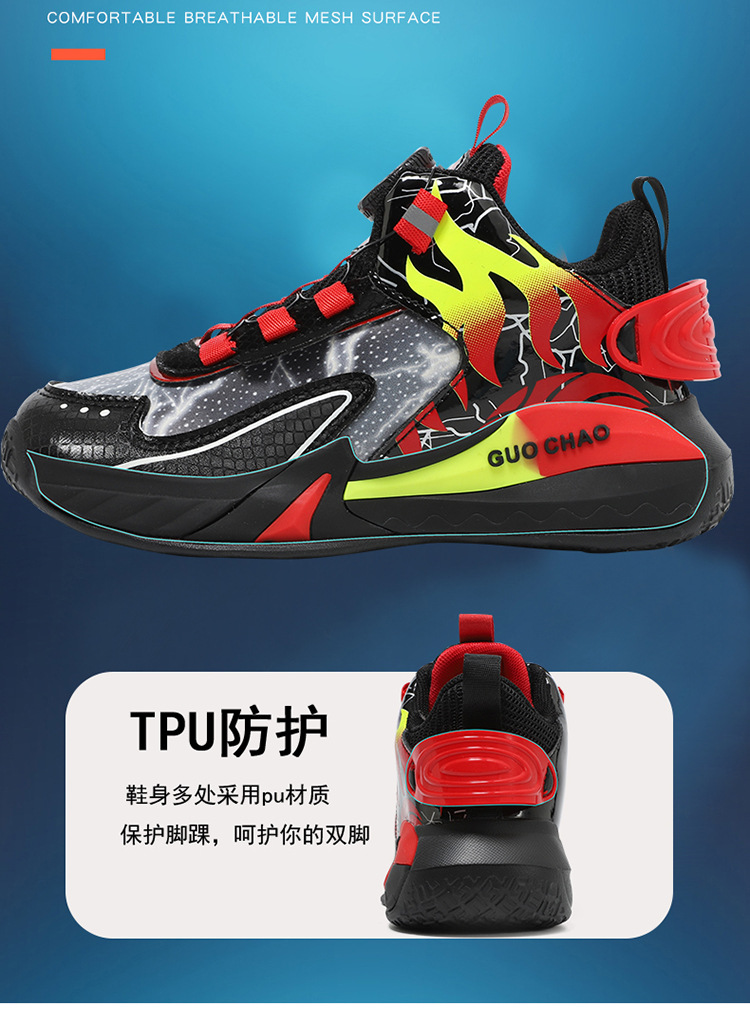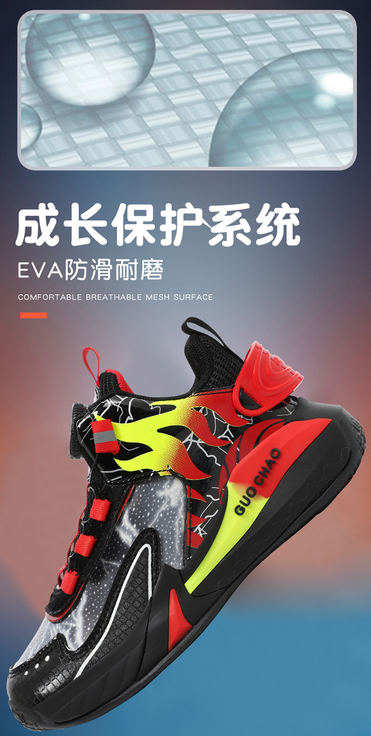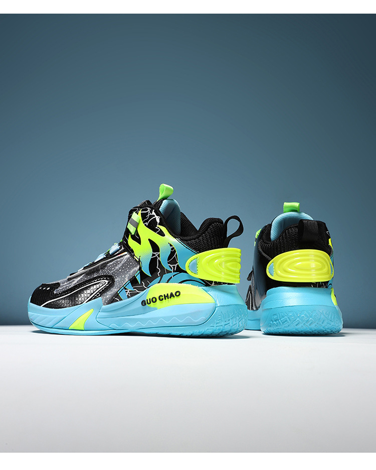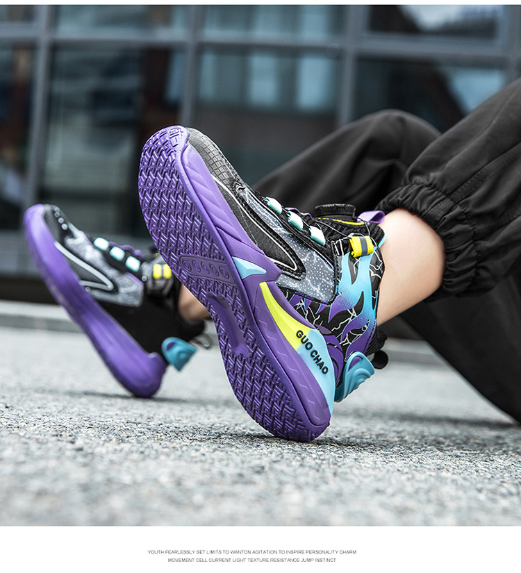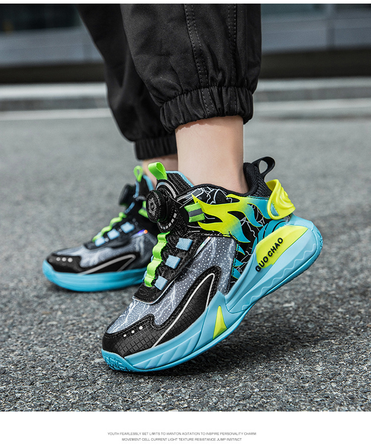 어린이 농구 신발 봄과 가을 새로운 가죽 방수 소년 버튼 운동화 중 큰 아이 문지르는 소리