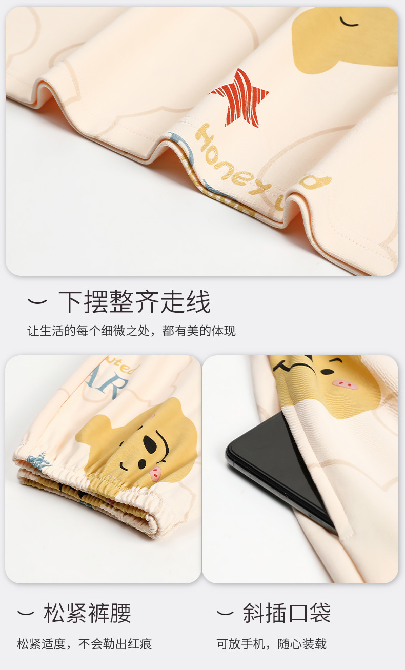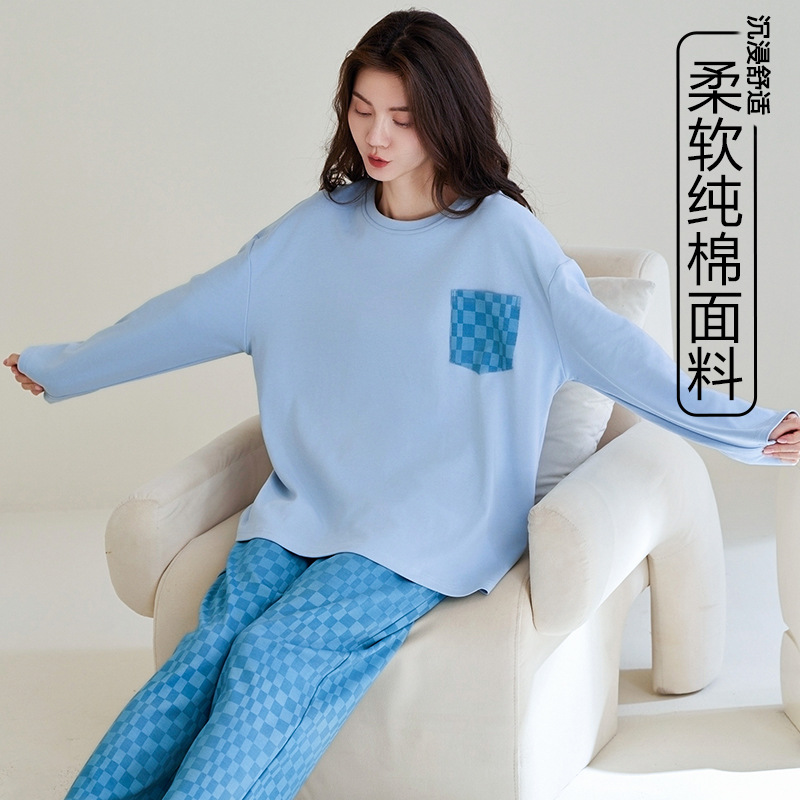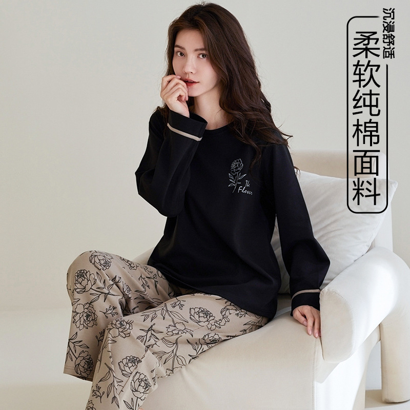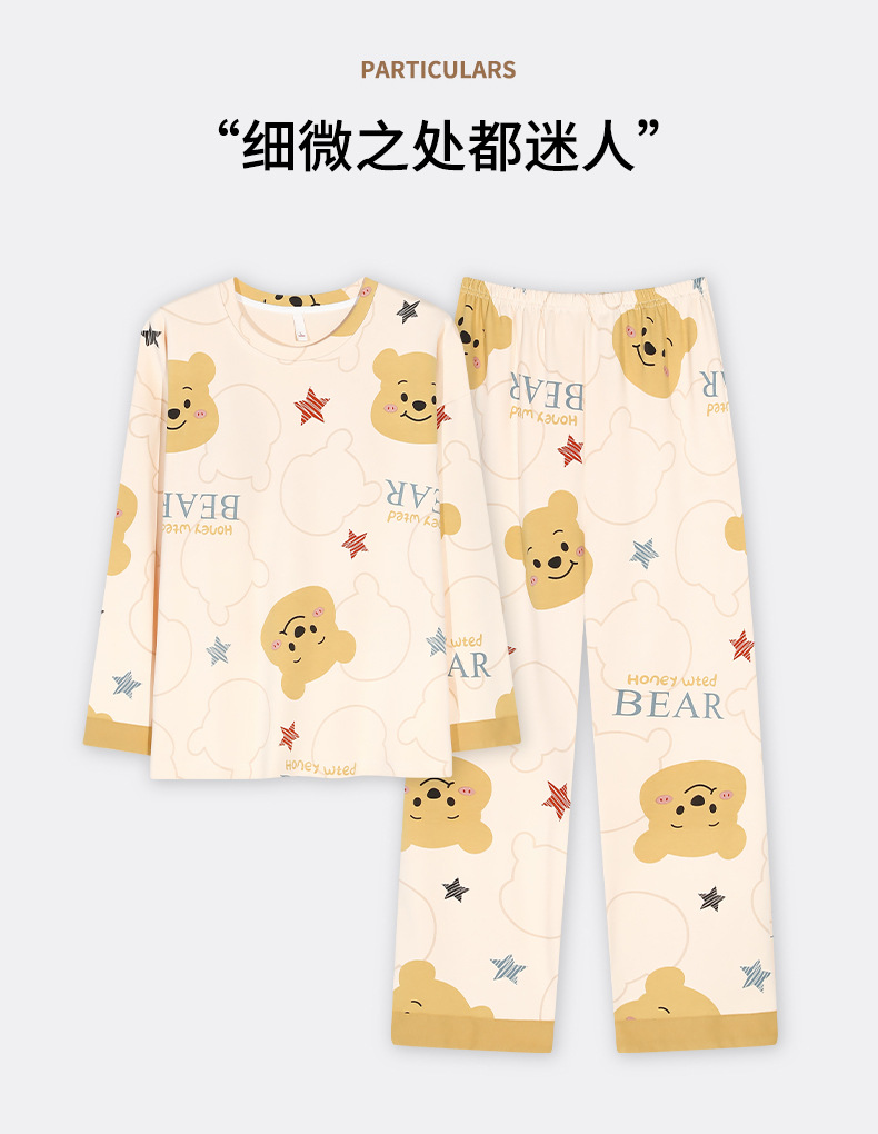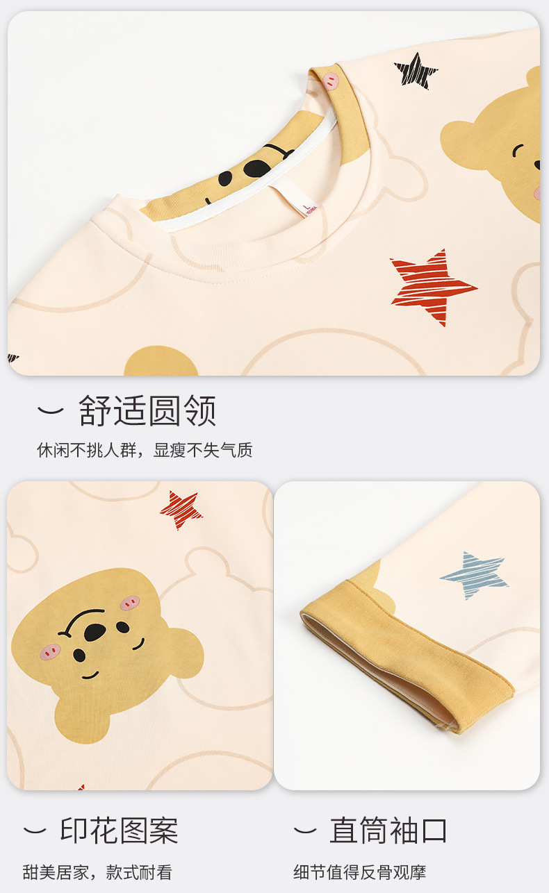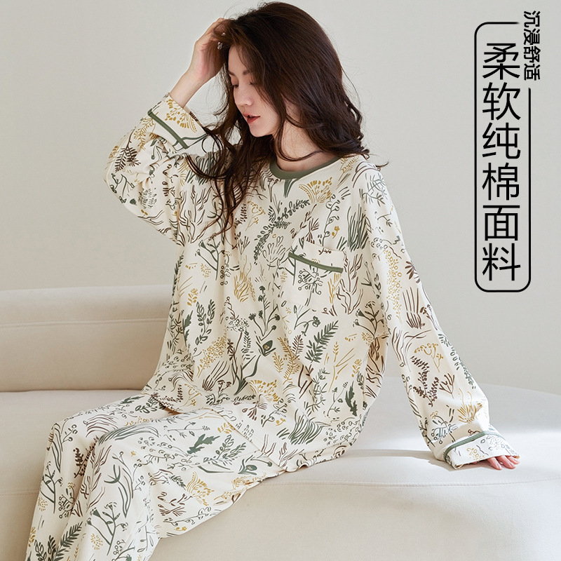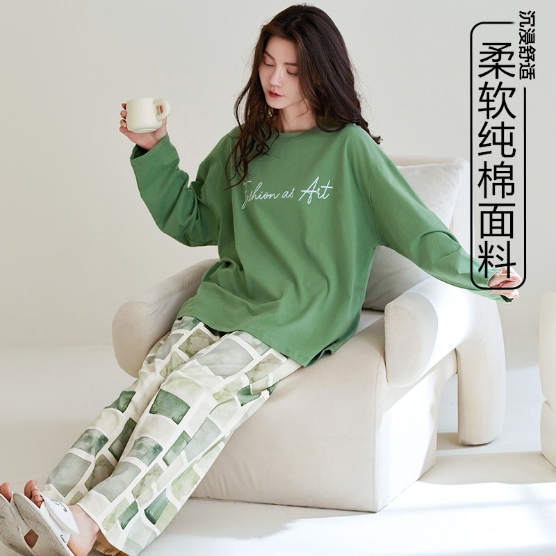 [순수한면] 가슴 패드를 가진 잠옷 여성 봄과 가을 긴 소매 패션 홈 의류 세트 가을과 겨울 귀여운 만화스토어 가기