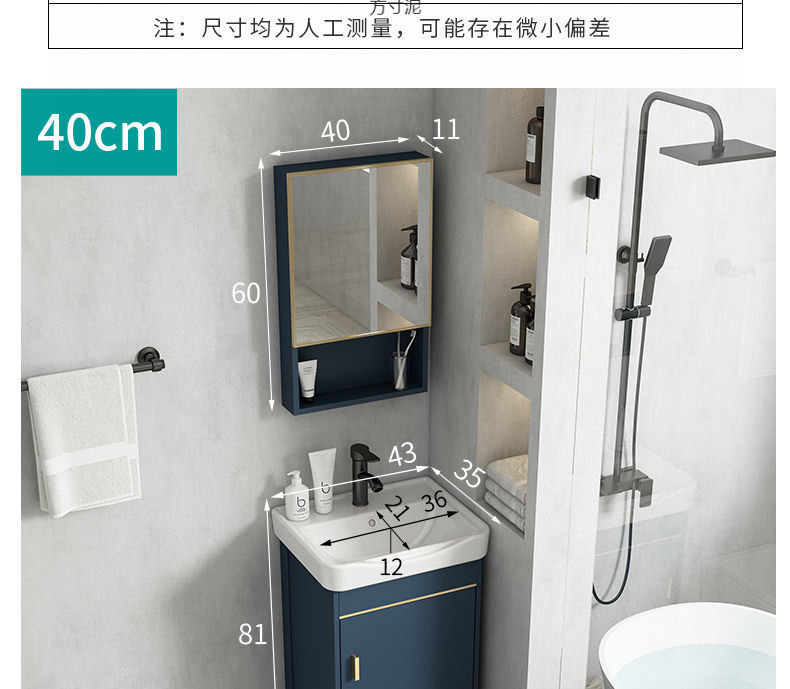 • 플로어 스탠딩 캐비닛 43cm 전체 세트 + 거울 캐비닛