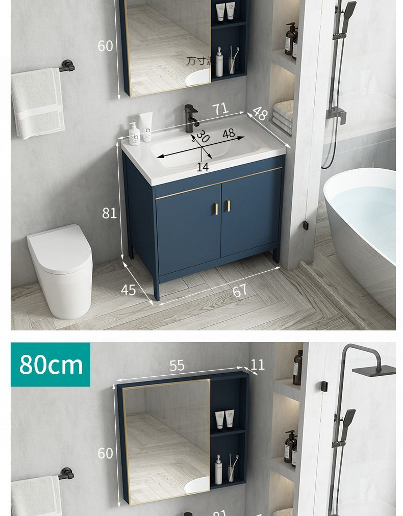 공간 알루미늄 욕실 캐비닛 화장실 바닥 세척 분지 캐비닛 조합 발코니 통합 세라믹 세척 분지 지능형스토어 가기