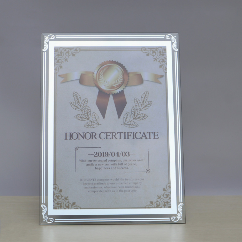 이우 제조업체 도매 A4 크리스탈 유리 액자 사진 프레임 6인치 78a4 명예 증서 벽걸이 창의적인 거울 프레임스토어 가기