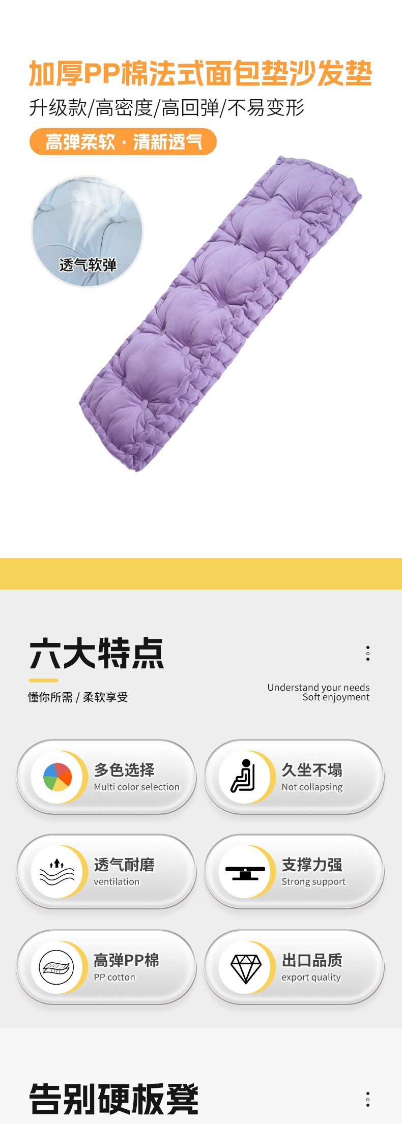 국경 간 아마존 공장 직접 공급 PP 면 프랑스 빵 쿠션 소파 쿠션 높은 반등 사무실 쿠션