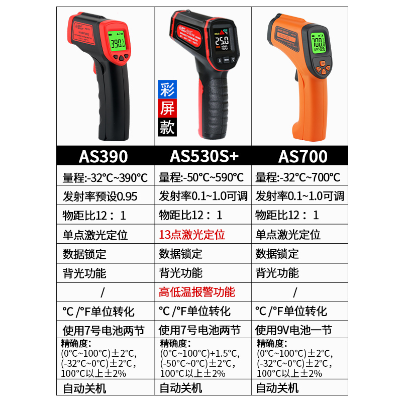 • 신형 컬러 스크린 13점 온도 측정 AS530S+【-50℃~590℃】