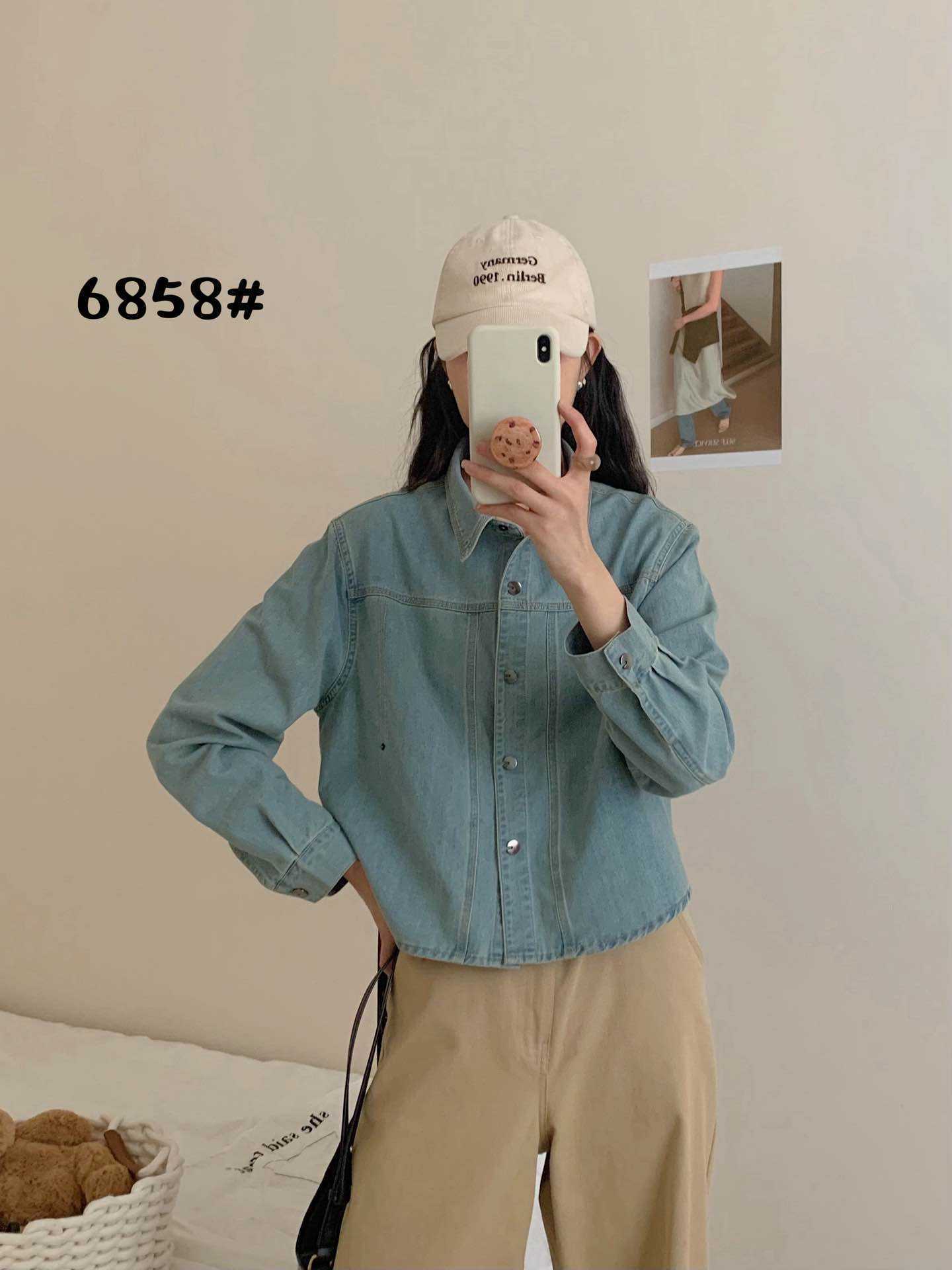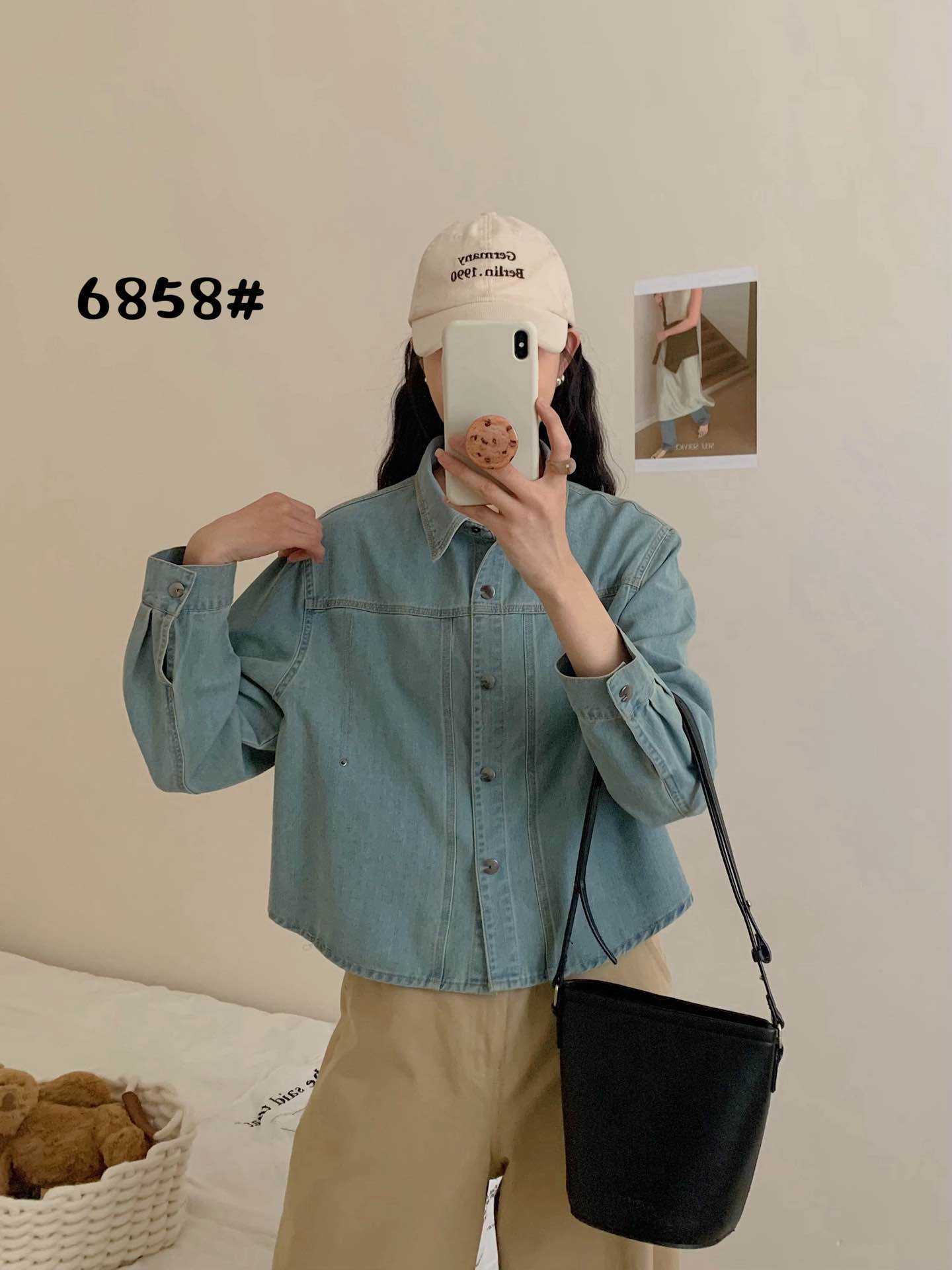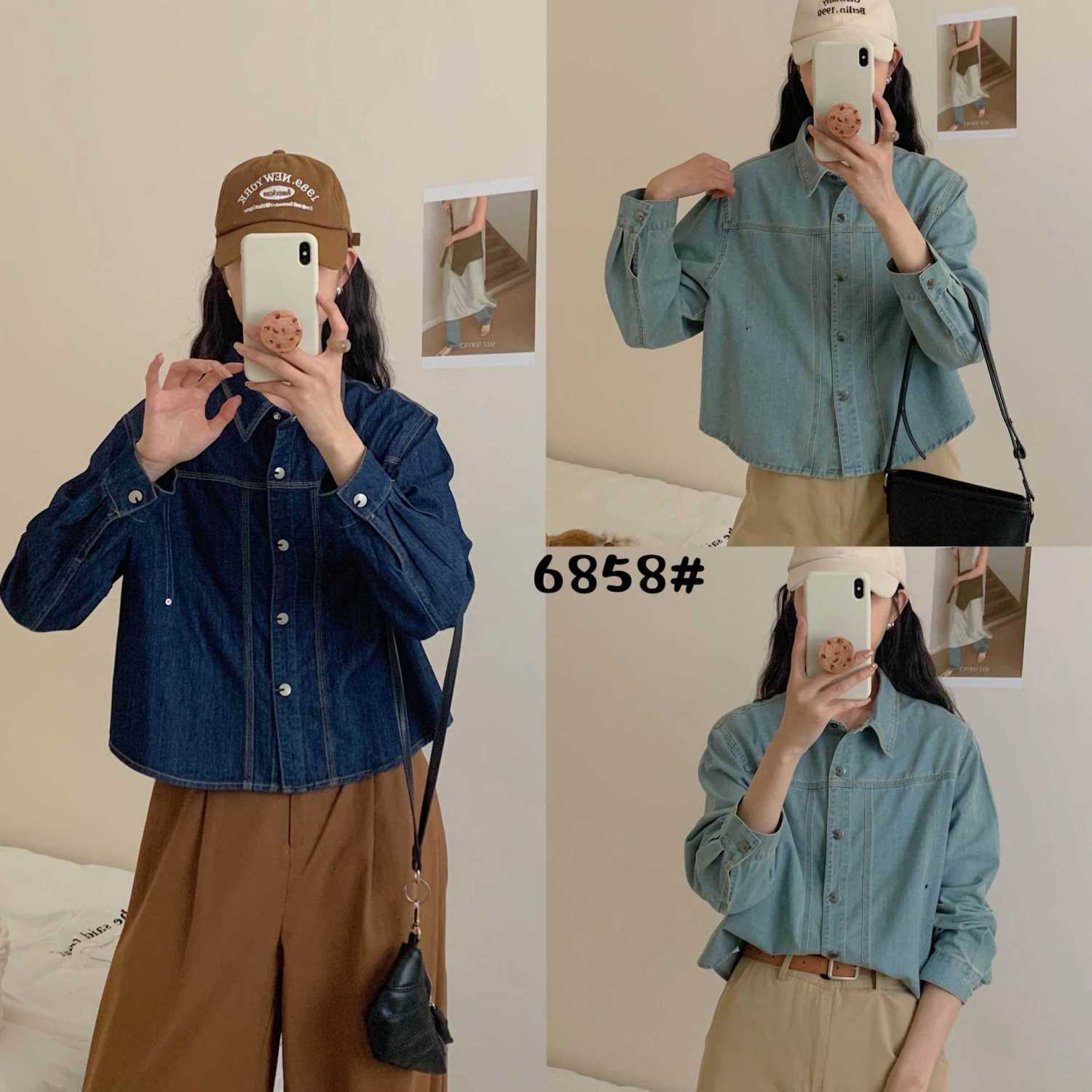 한국 패션 아크 헴 느슨한 옷깃 긴 소매 짧은 데님 셔츠 재킷 2025 봄 새로운스토어 가기