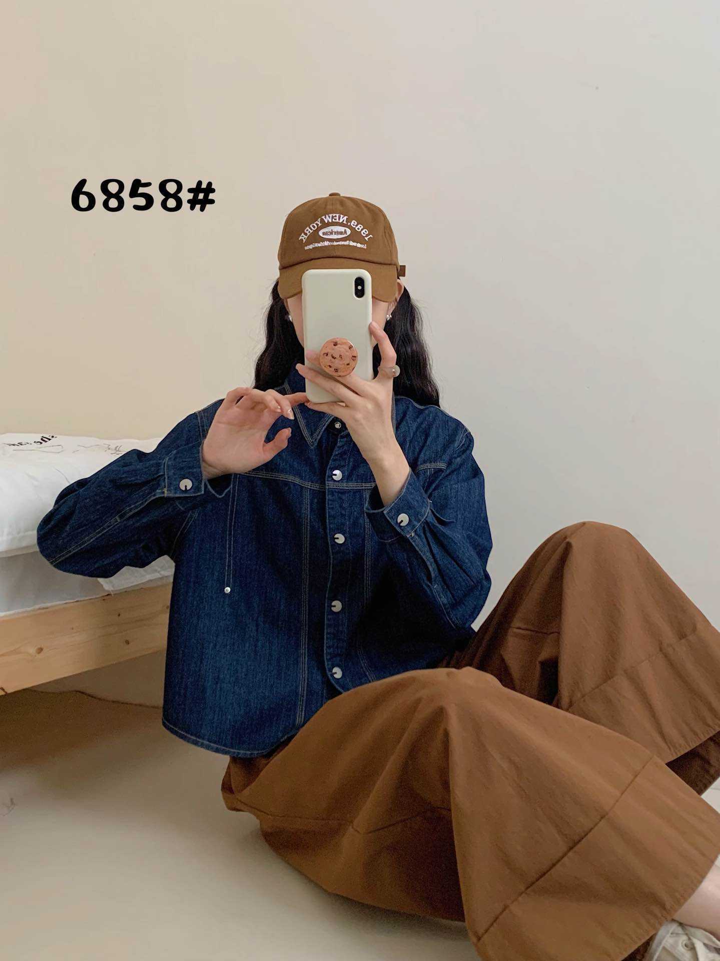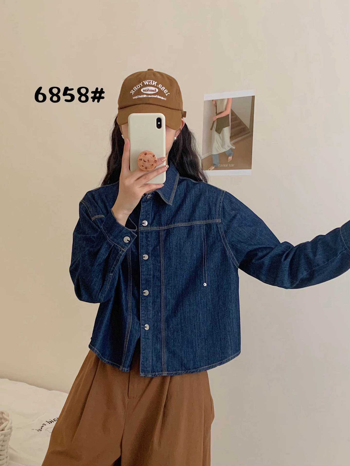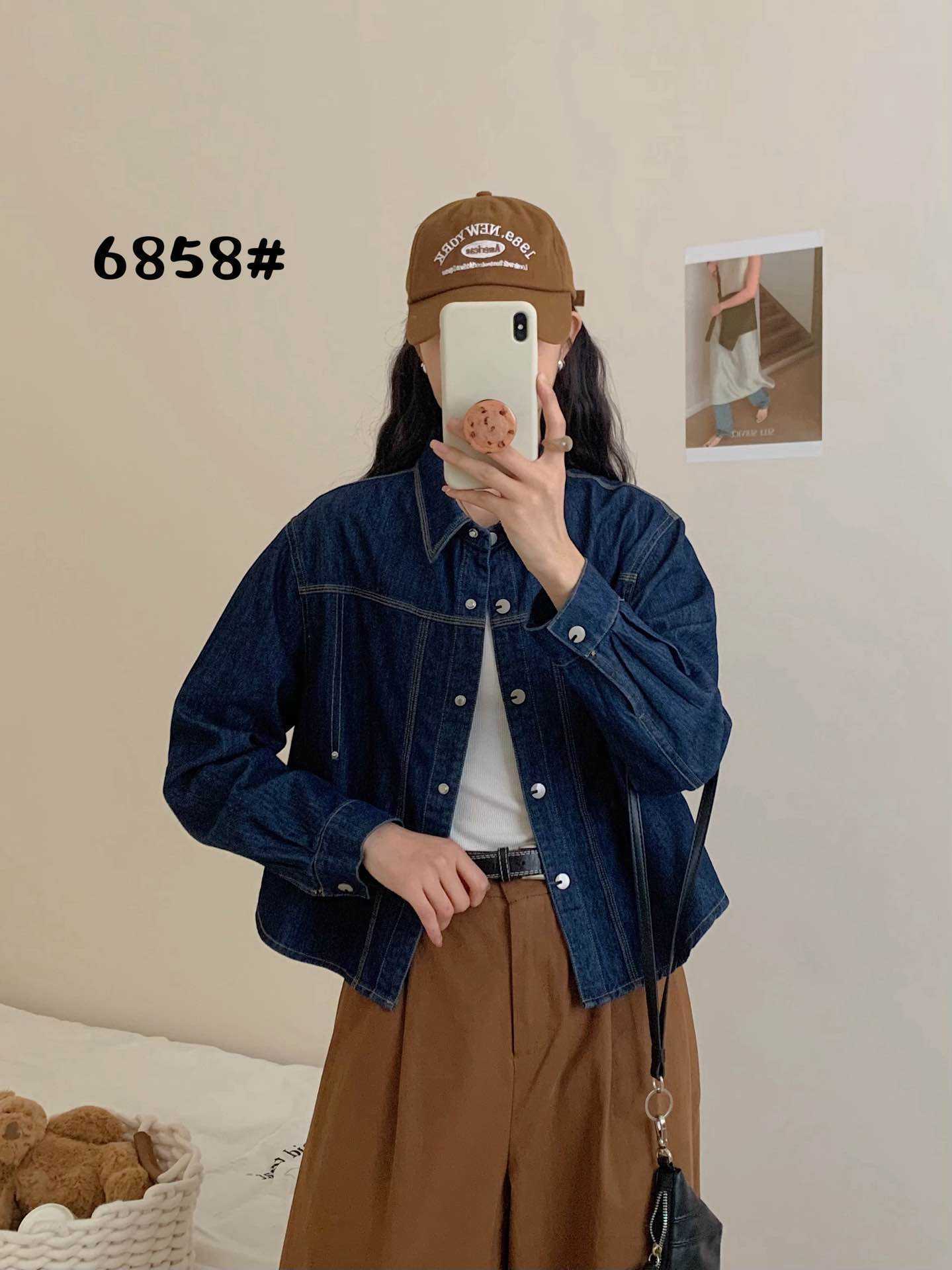 한국 패션 아크 헴 느슨한 옷깃 긴 소매 짧은 데님 셔츠 재킷 2025 봄 새로운스토어 가기