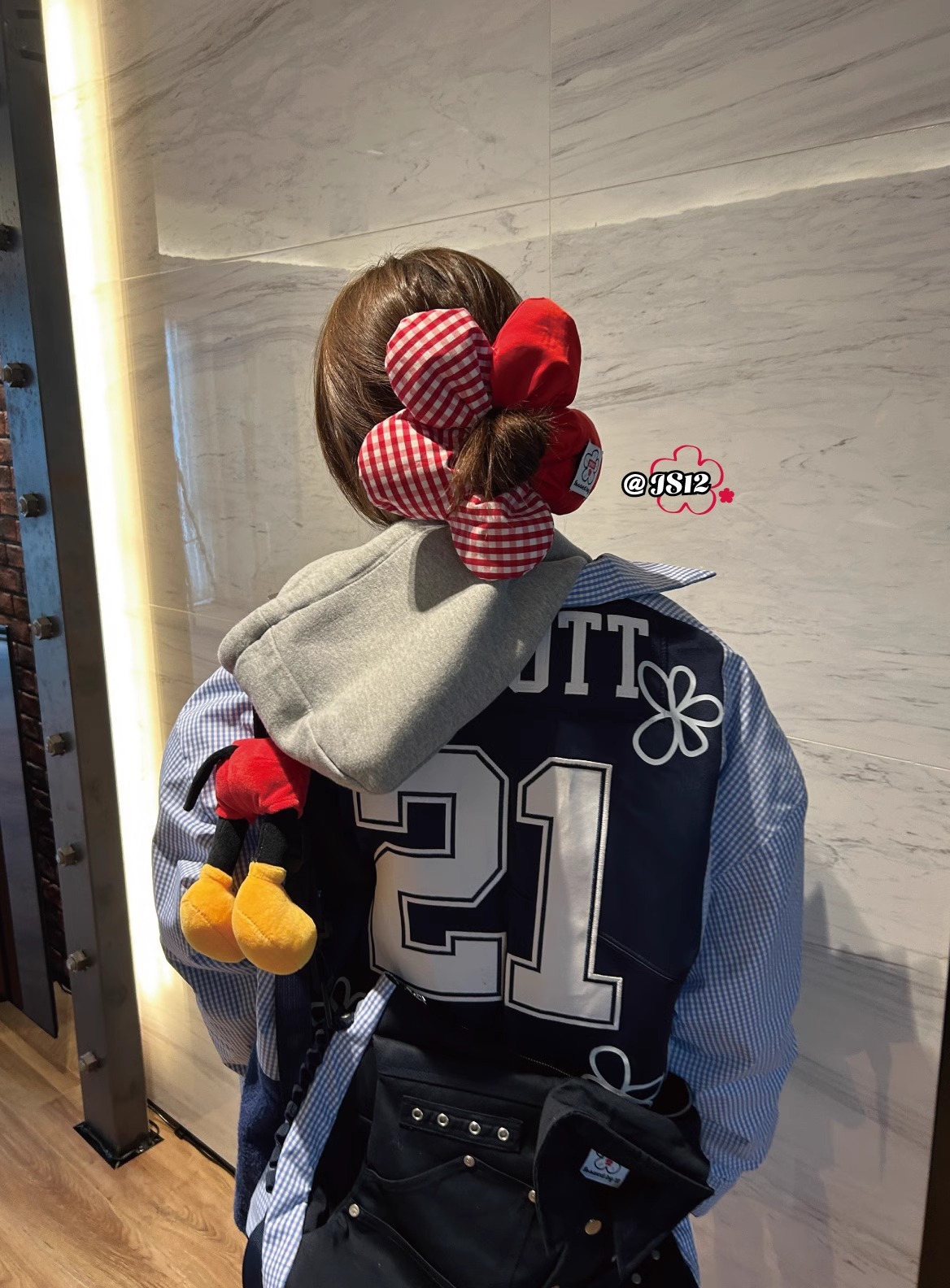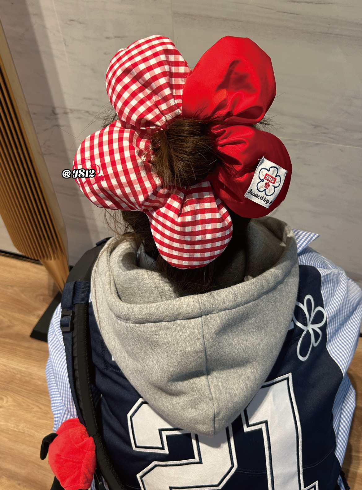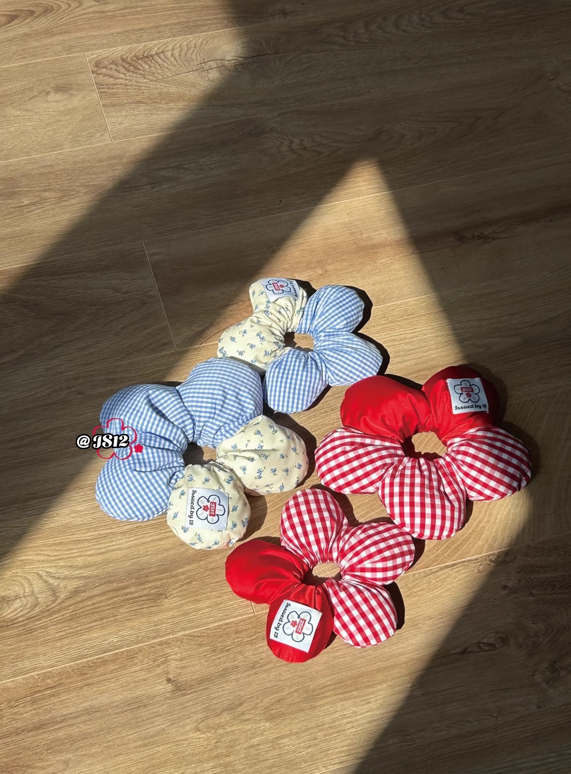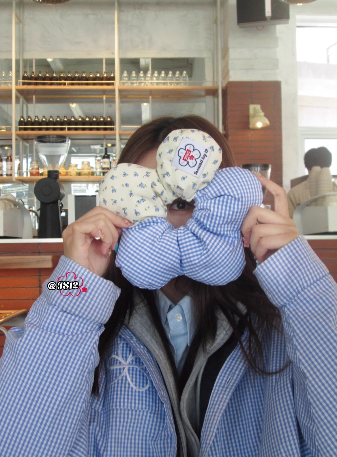 • 하늘색 줄무늬 꽃 패치워크 머리끈