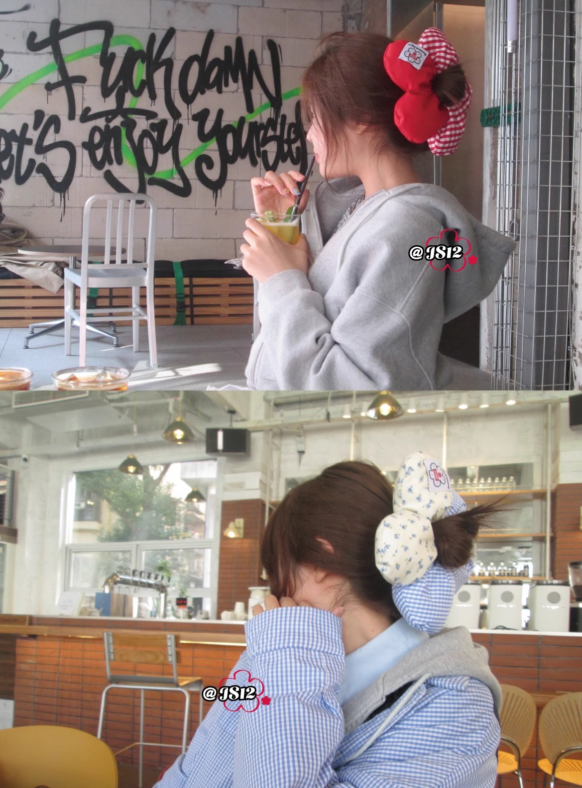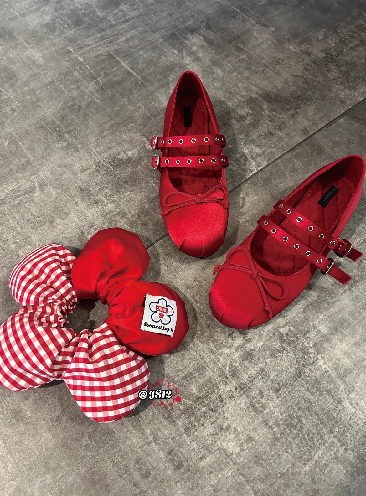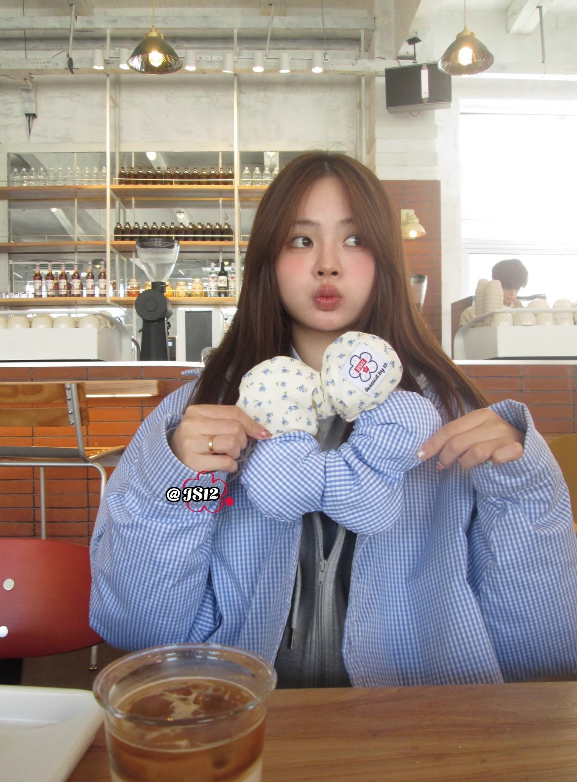 • 하늘색 줄무늬 꽃 패치워크 머리끈