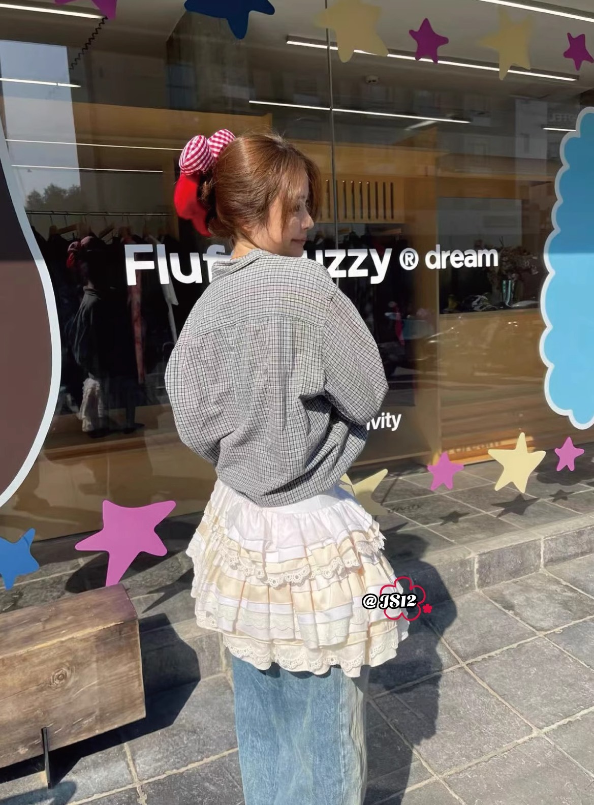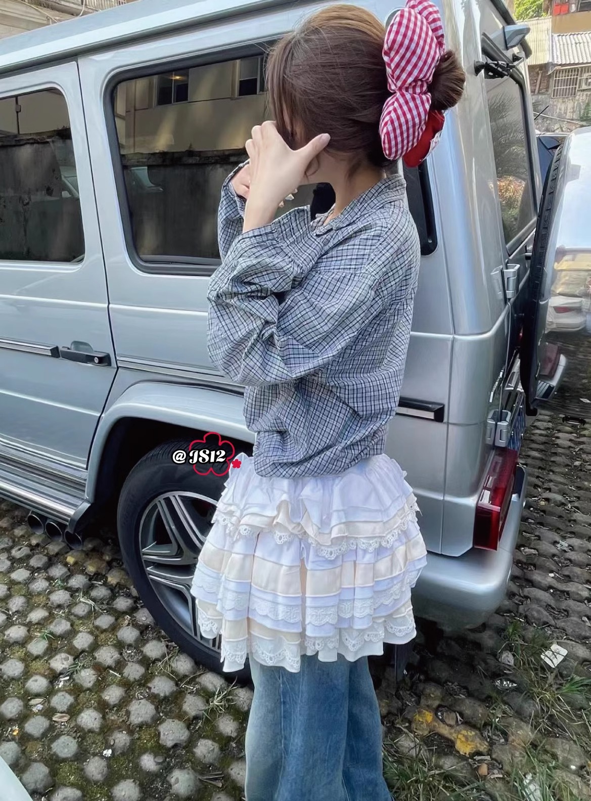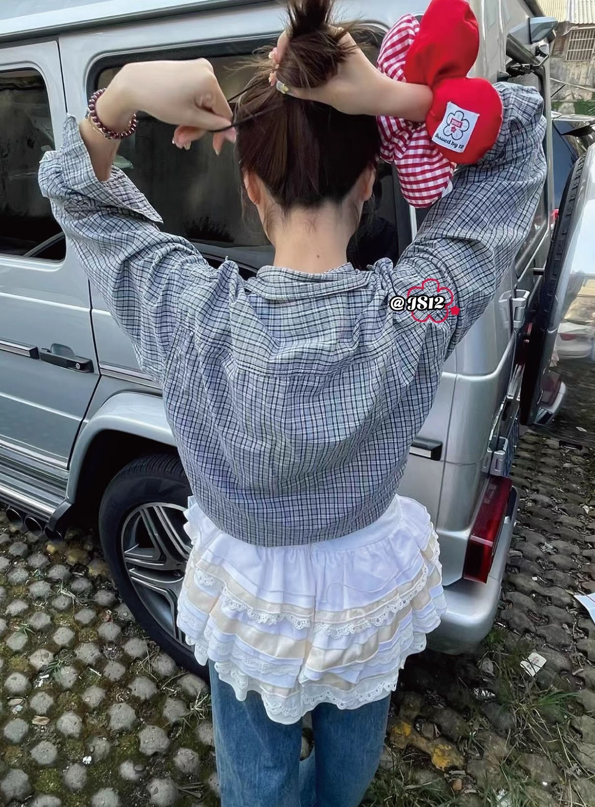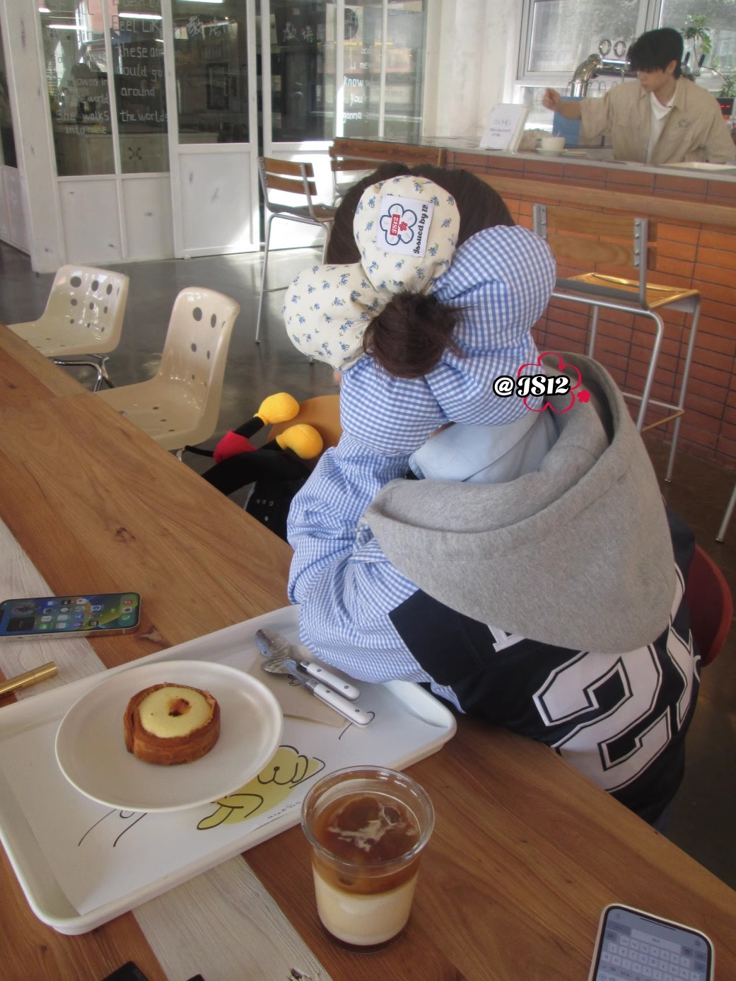 • 하늘색 줄무늬 꽃 패치워크 머리끈
